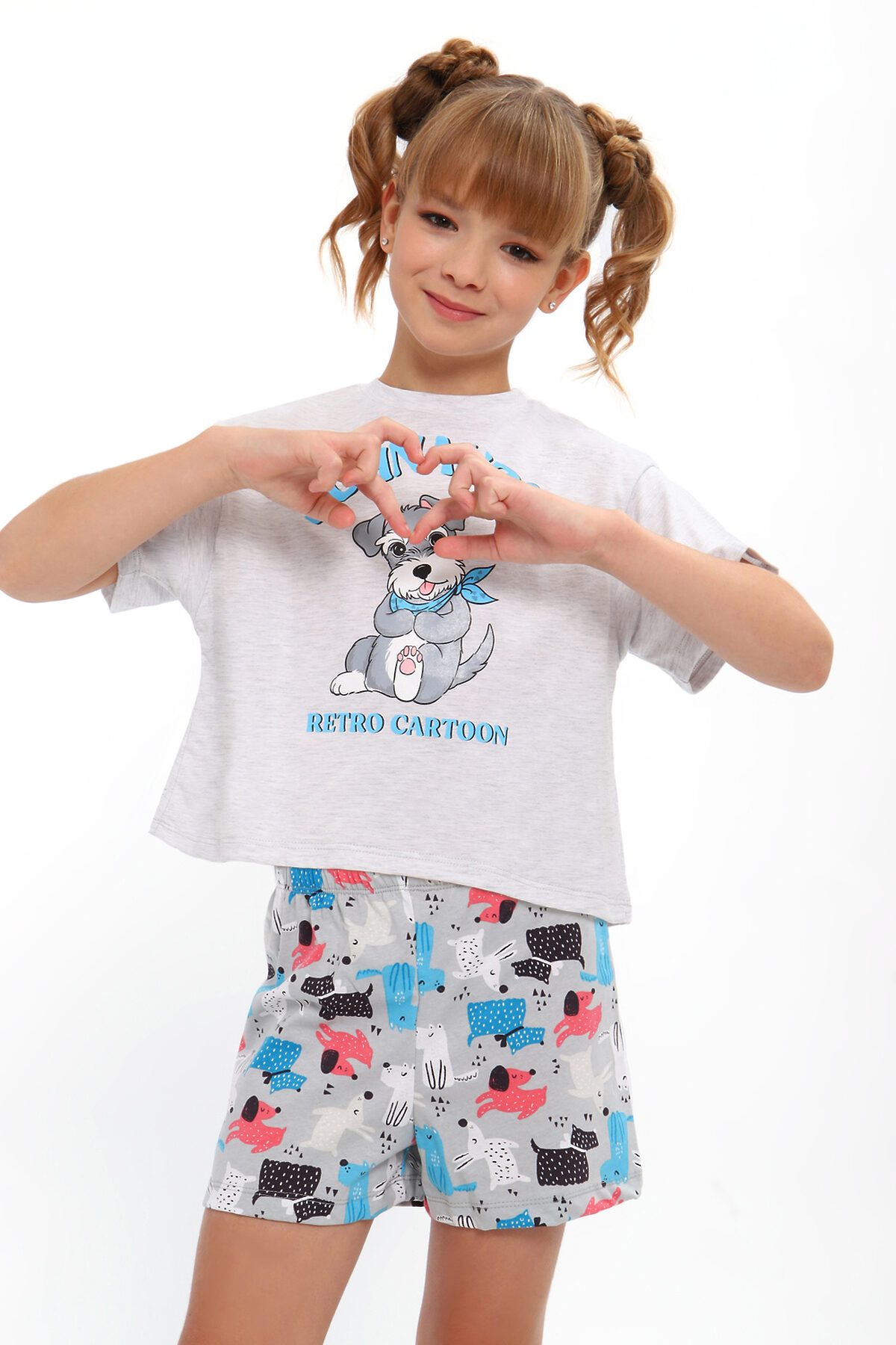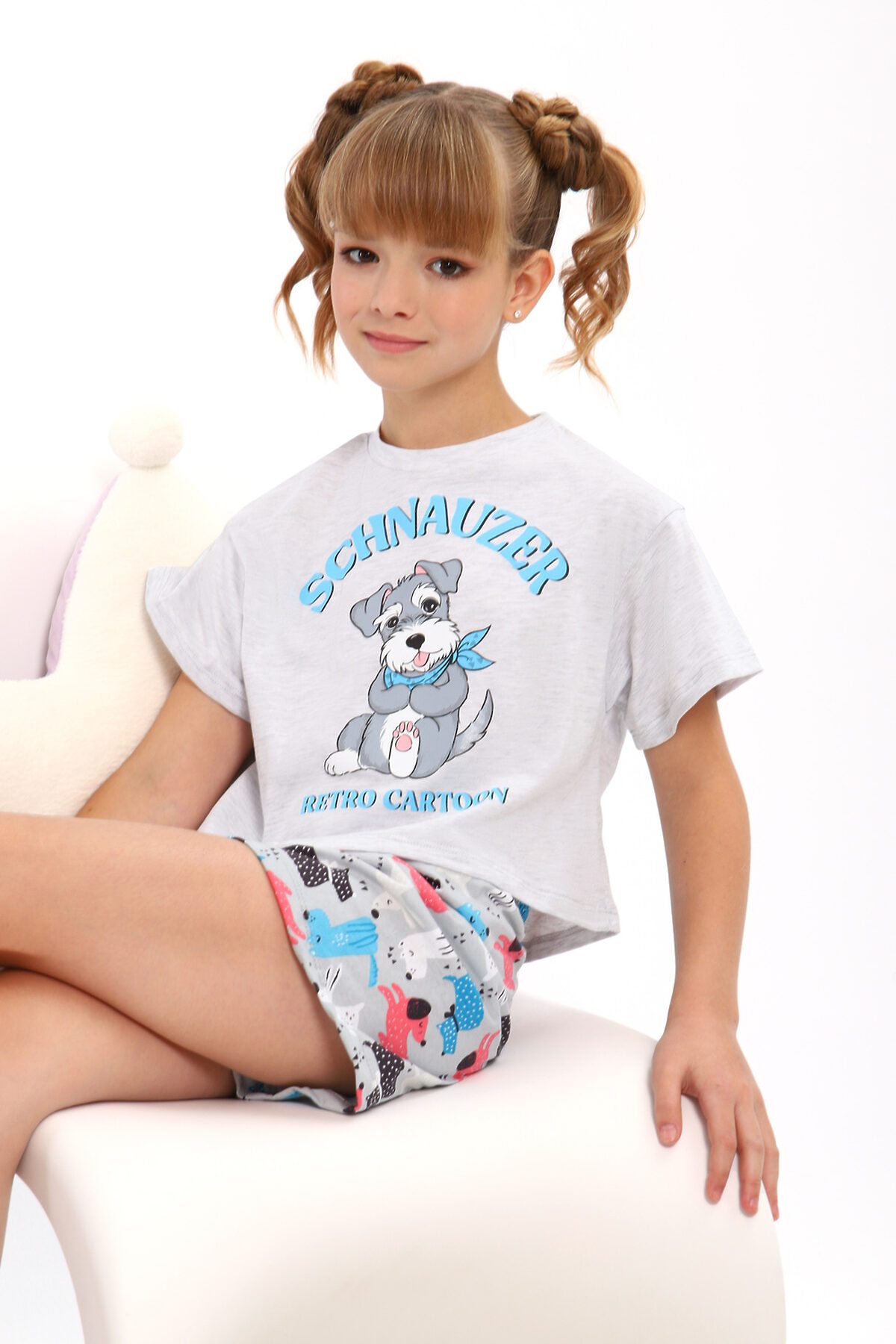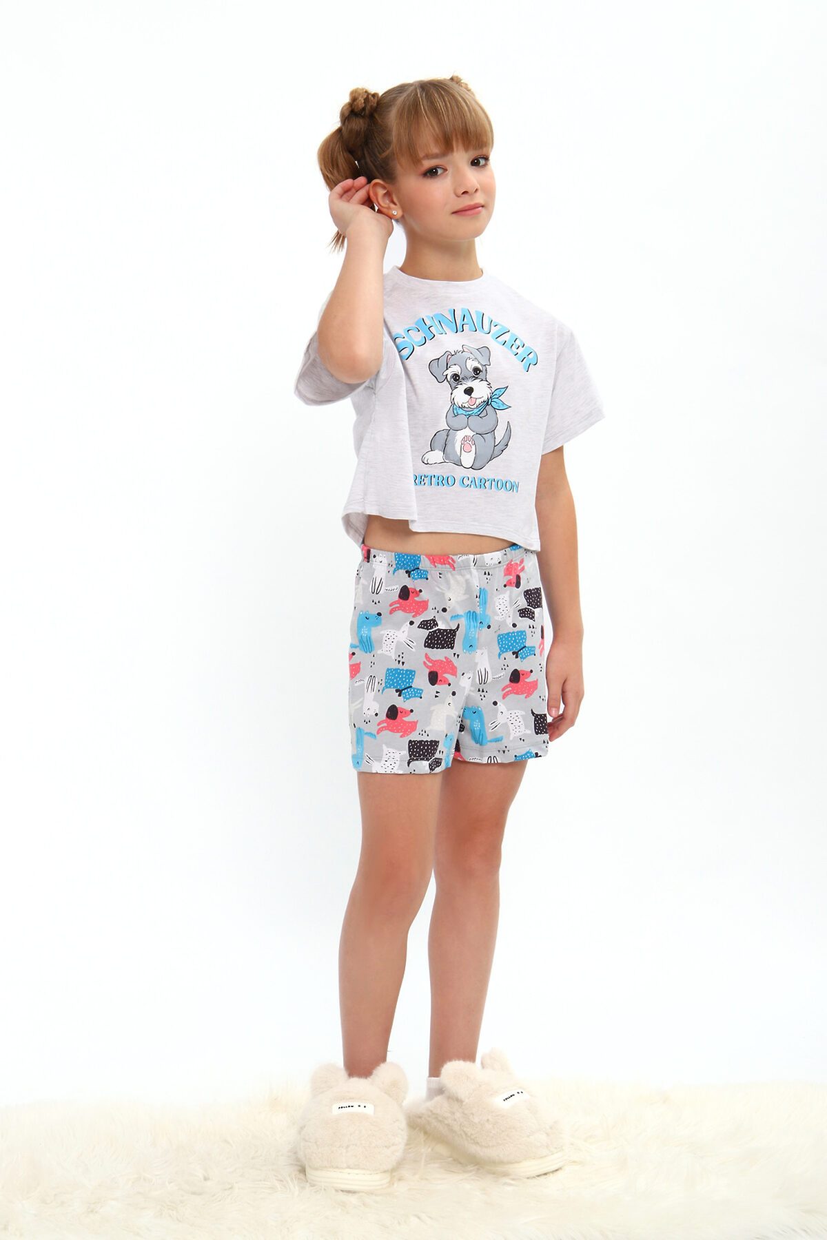 Пижама с шортами арт. ПД-019-081 НАТАЛИ, белый меланж/собачки серые