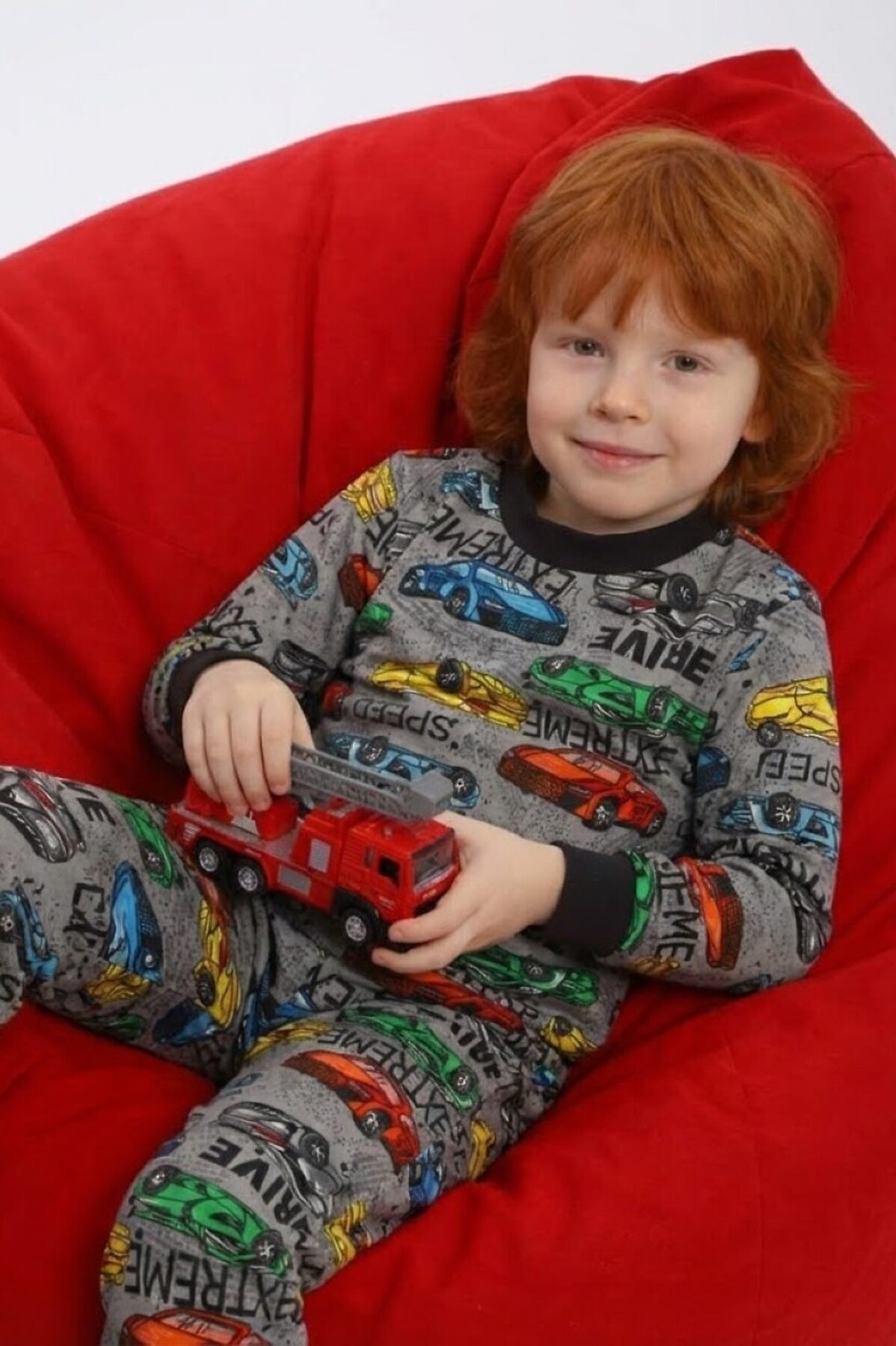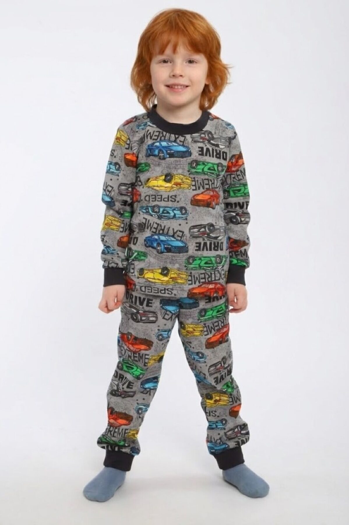 Комфортная пижама с длинным рукавом для мальчика с ярким модным принтом Гонки, рукава и штанины на манжете. Материал очень мягкий и в то же время износостойкий, не скатывается и не вытягивается. Идеальный подарок на день рождения, новый год, 23 февраля для сына или внука.