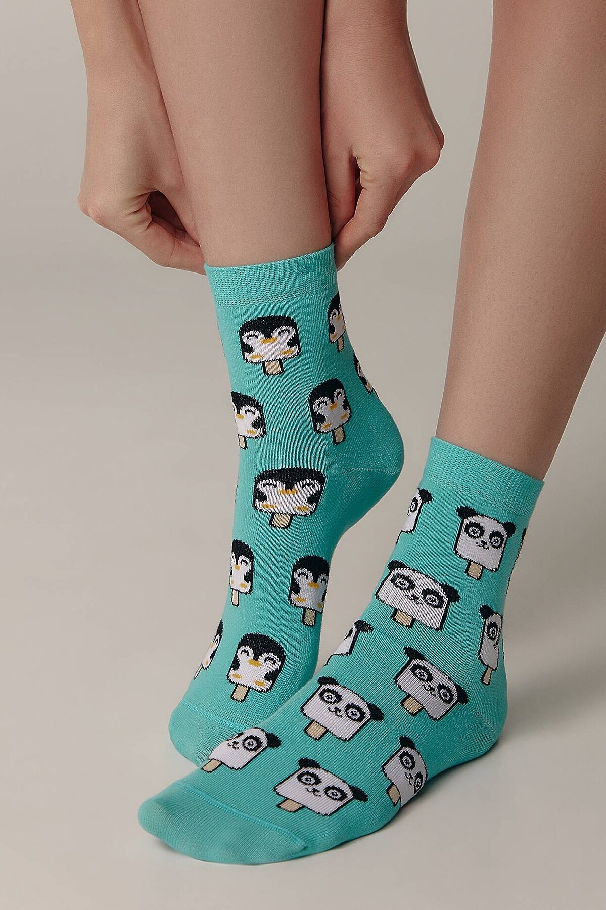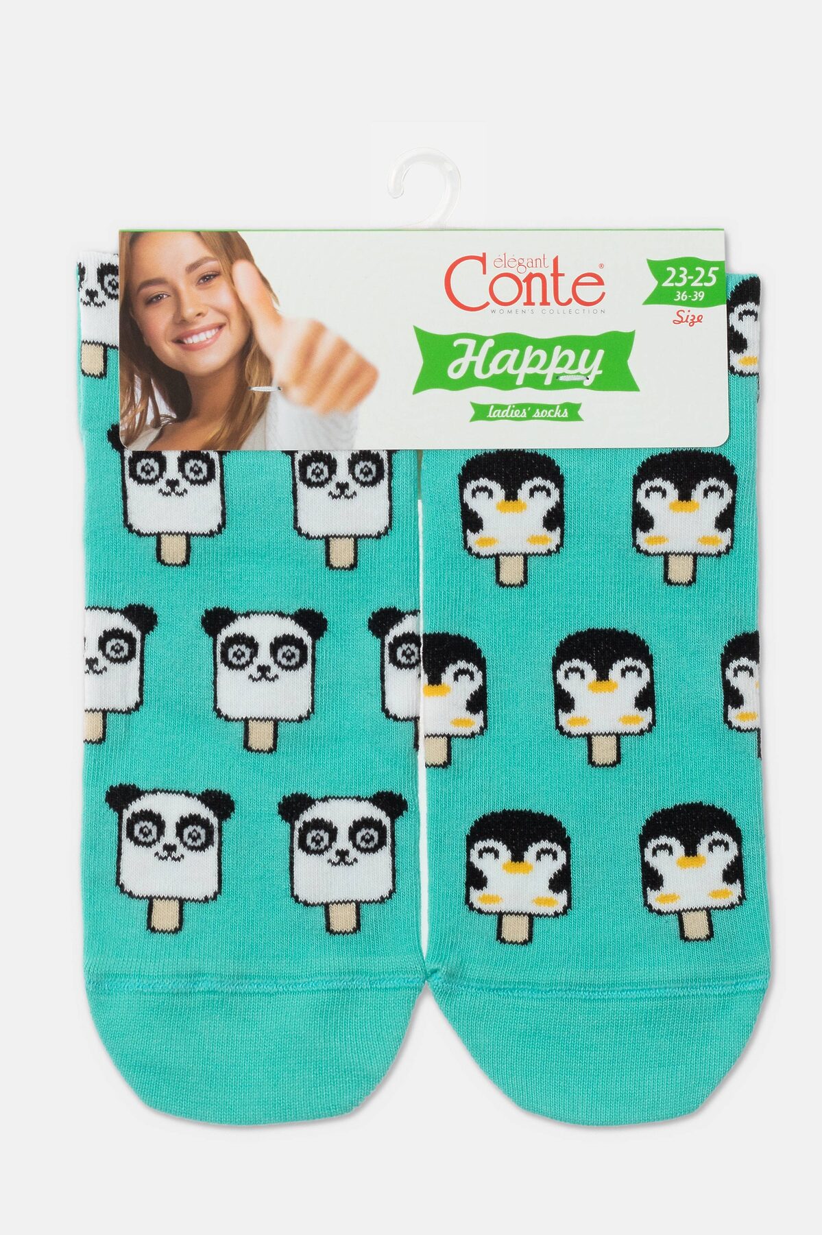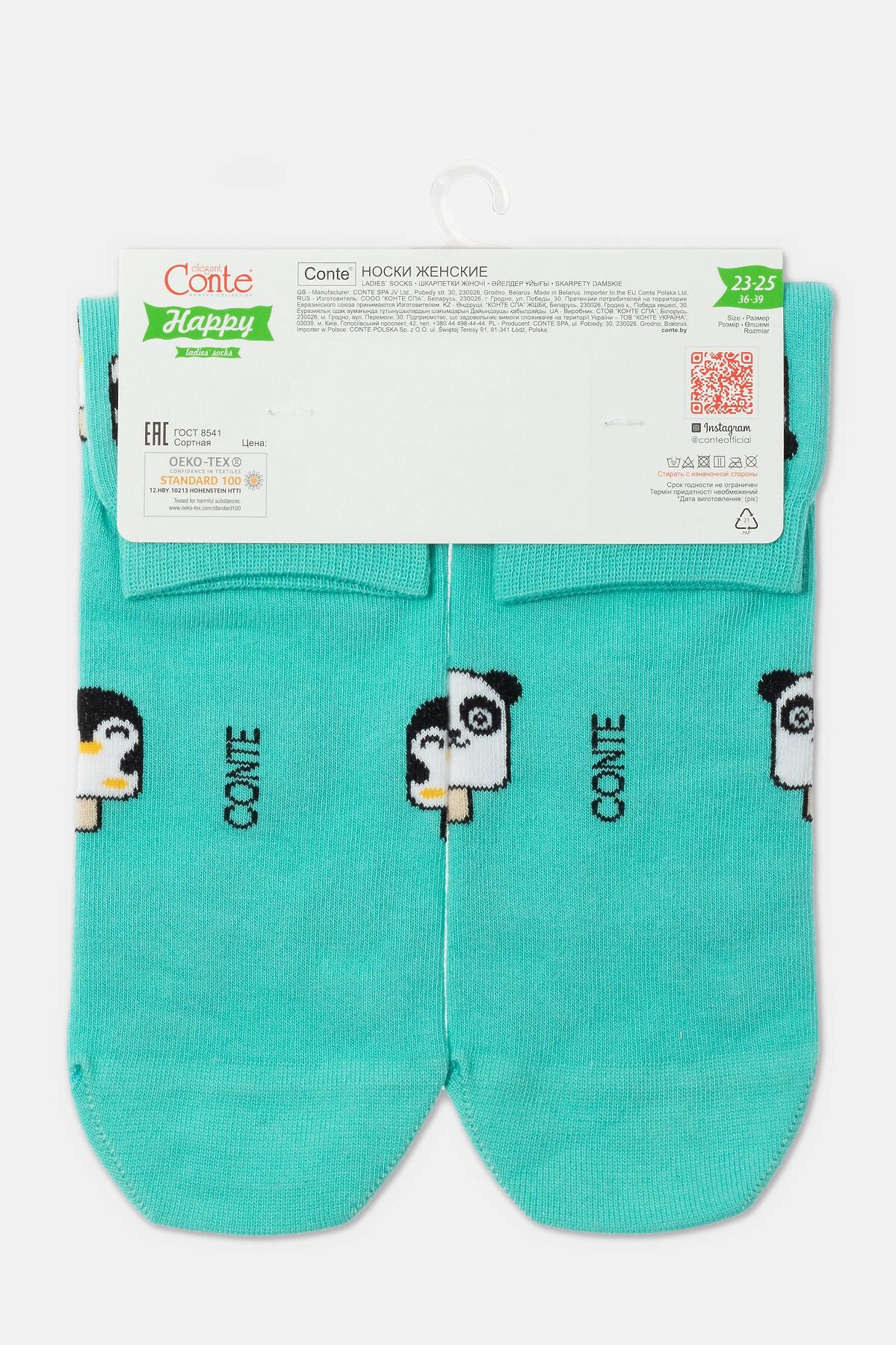 CONTE Хлопковые носки HAPPY c рисунками "panda & penguin" CONTE ELEGANT, бирюзовый