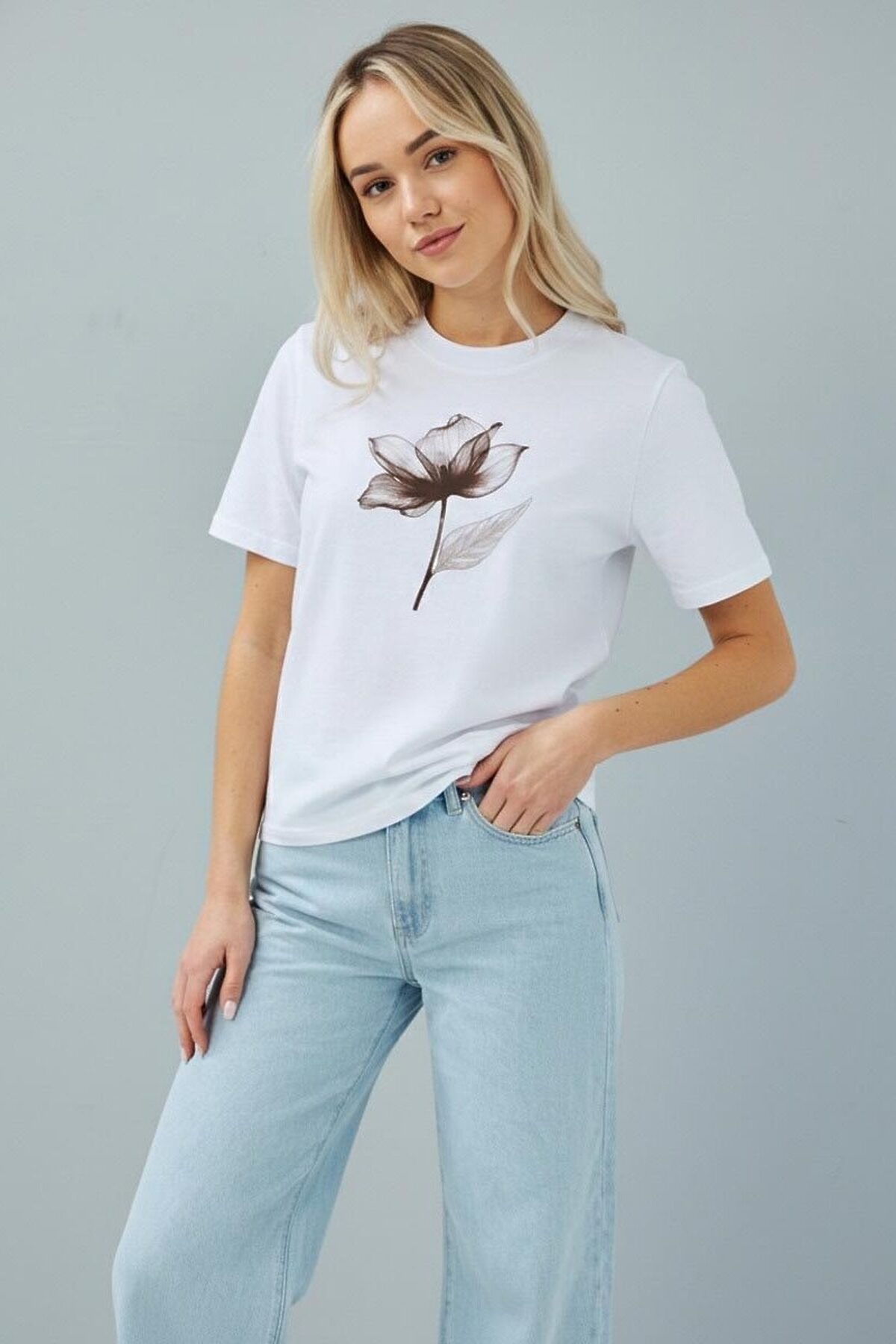 Женская футболка F5, Comfort fit (свободный силуэт), круглый вырез горловины, короткий рукав. Выполнена из классического трикотажного полотна.