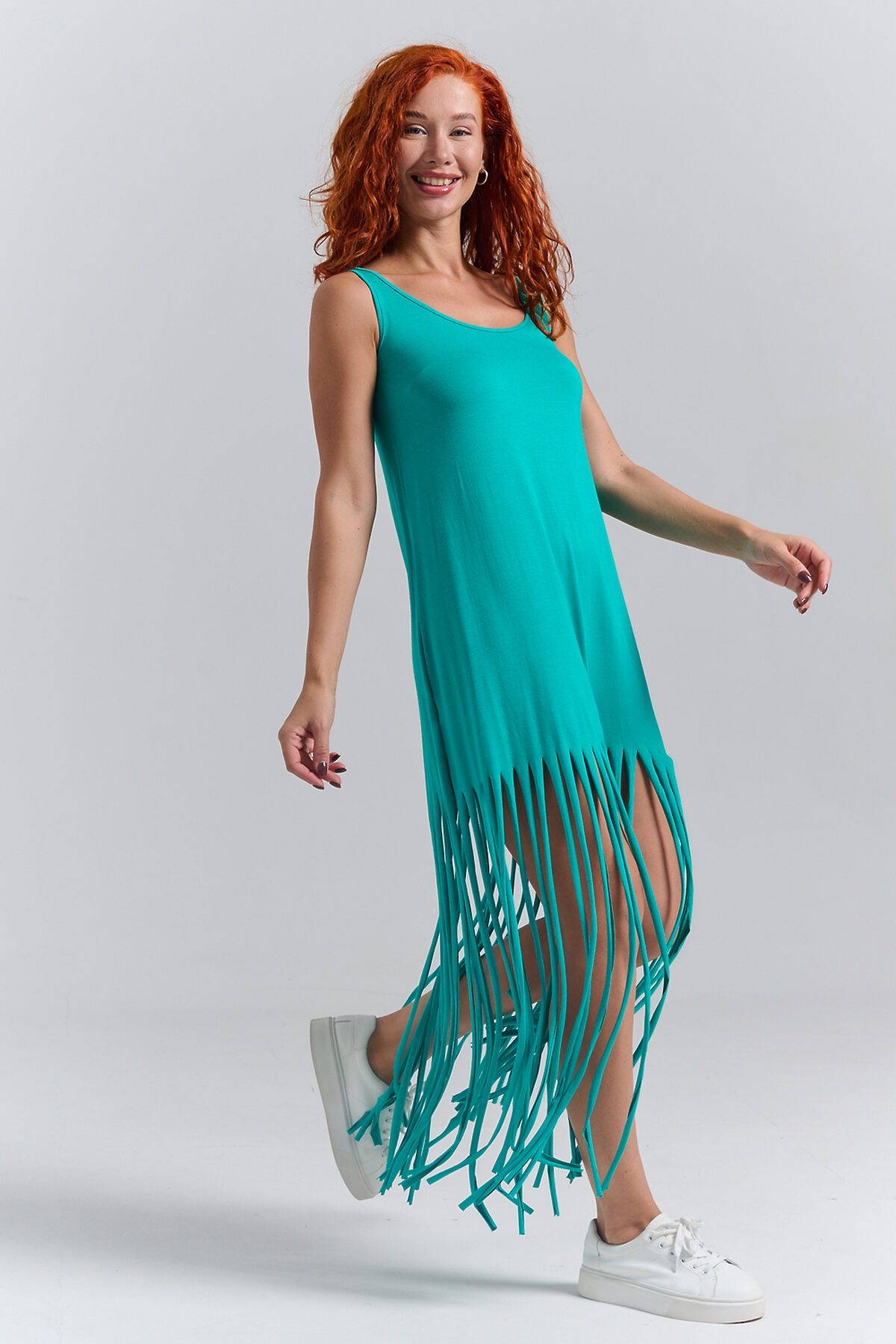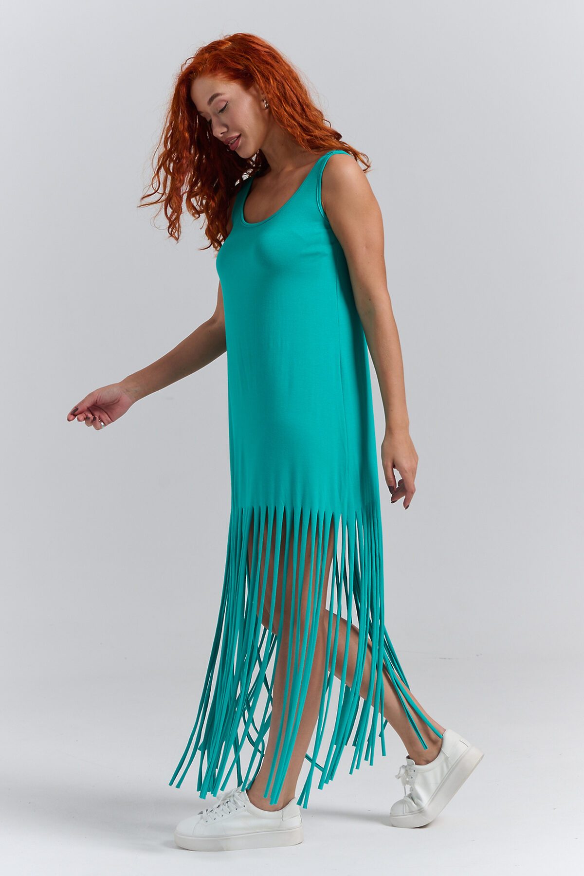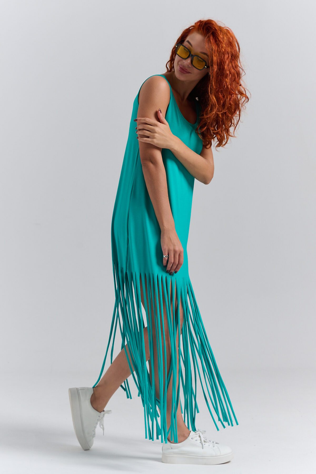 Платье с бахромой из струящейся вискозы. Лёгкое, летящее, манящее. Дарит невероятное ощущение женственности! Собираетесь на курорт? Благодаря легкости материала - отлично подойдёт как сарафан, летнее платье в отпуск. Платье с бахромой очень комфортно в жару. Это платье надо брать! Отлично впишется в Ваш гардероб! Прекрасно садится на фигуру!