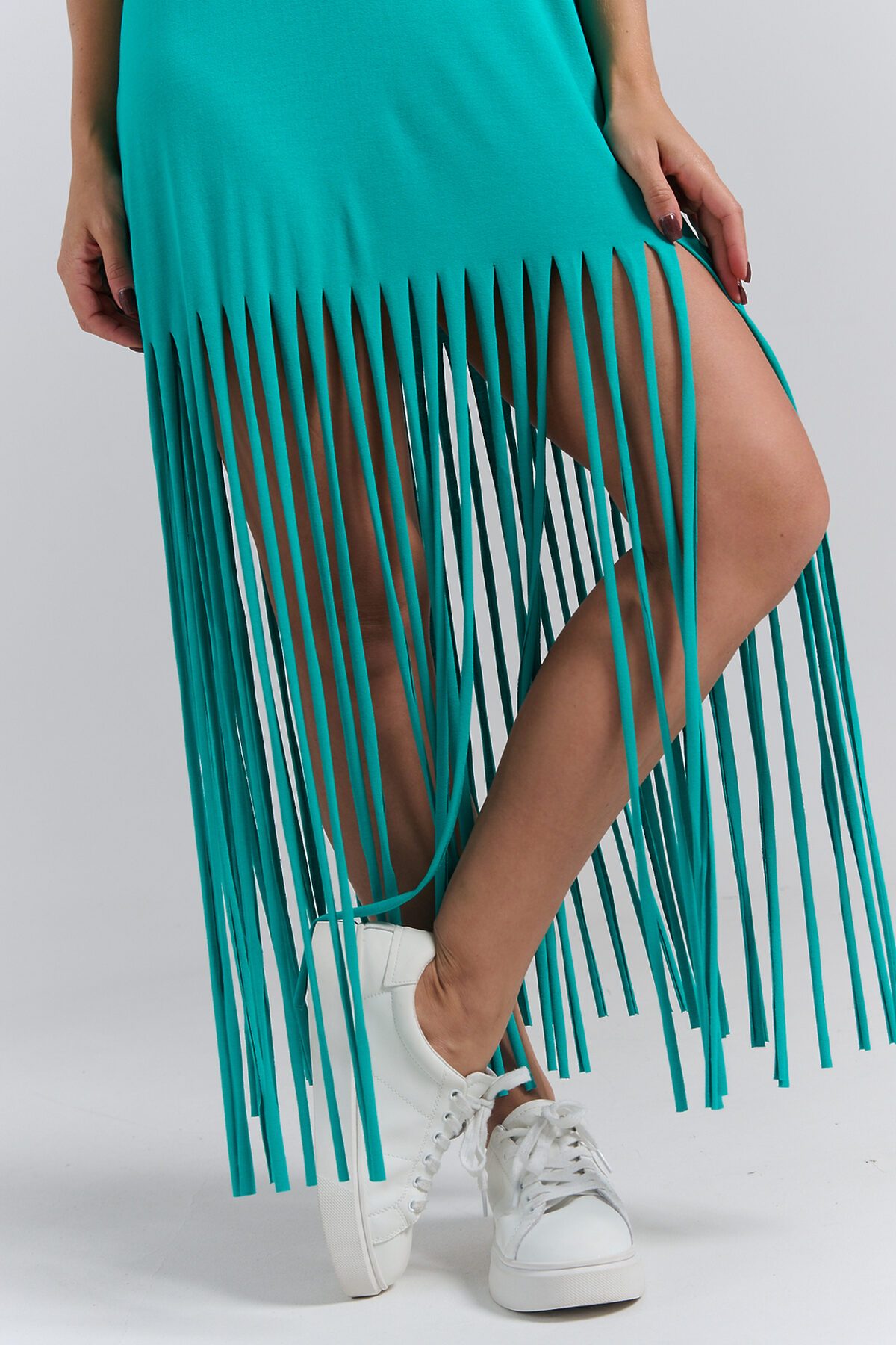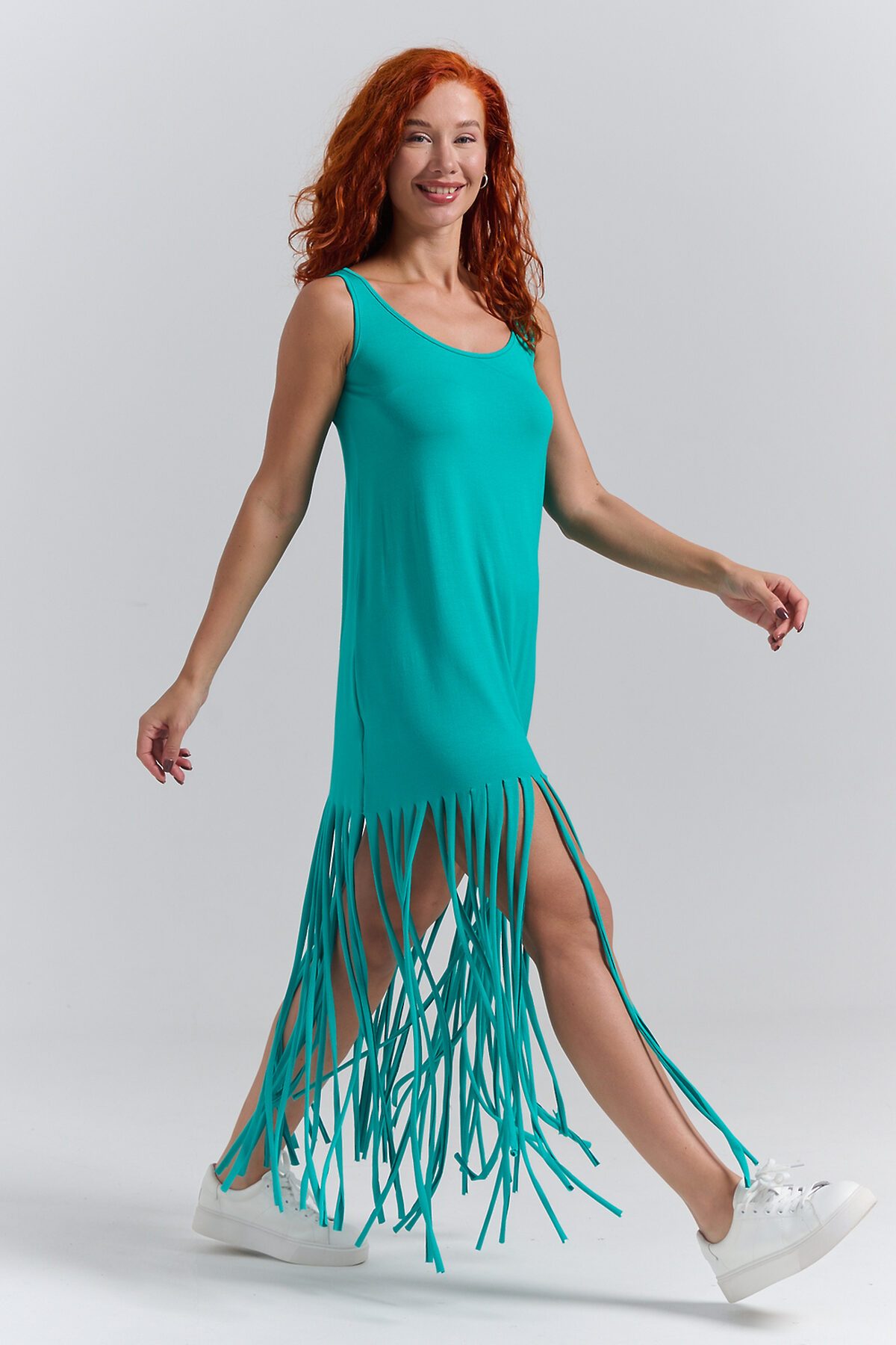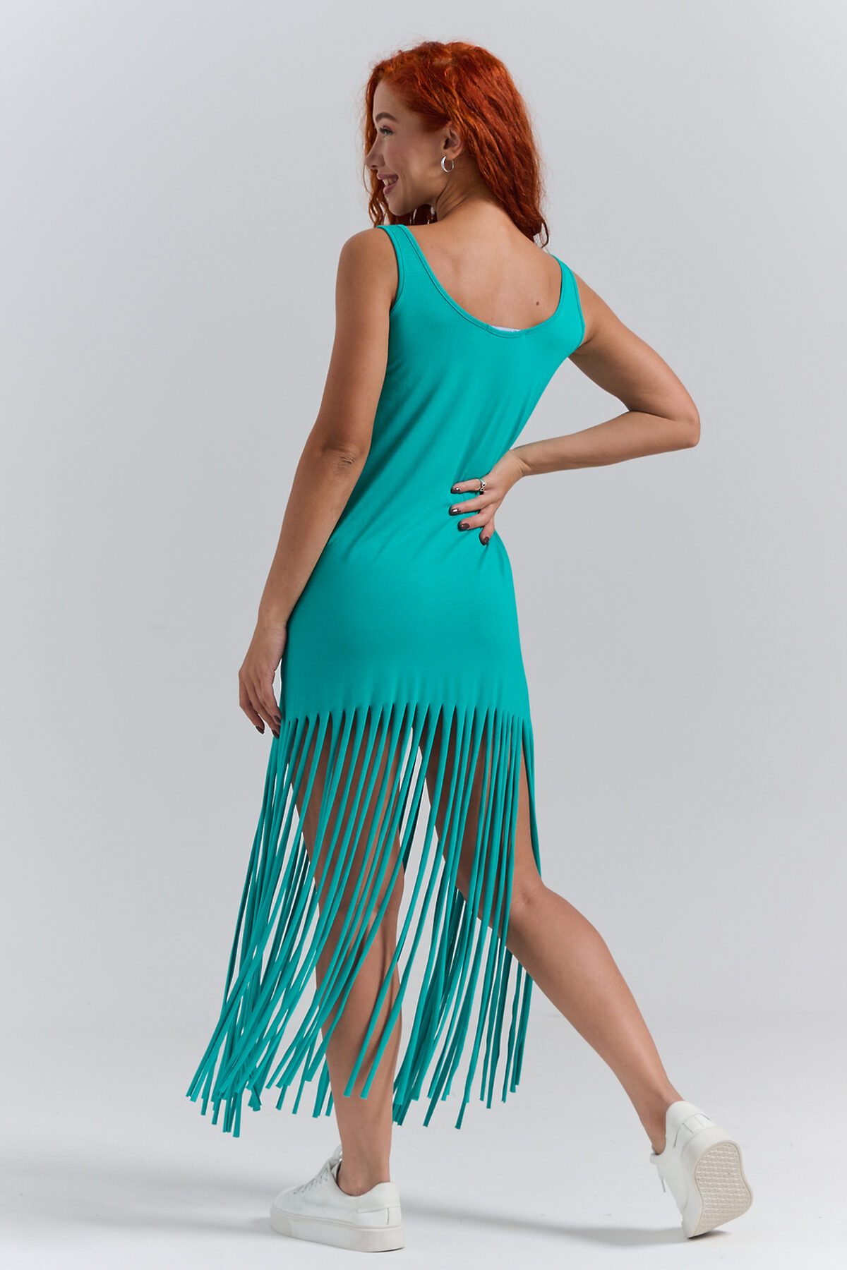 Платье с бахромой из струящейся вискозы. Лёгкое, летящее, манящее. Дарит невероятное ощущение женственности! Собираетесь на курорт? Благодаря легкости материала - отлично подойдёт как сарафан, летнее платье в отпуск. Платье с бахромой очень комфортно в жару. Это платье надо брать! Отлично впишется в Ваш гардероб! Прекрасно садится на фигуру!