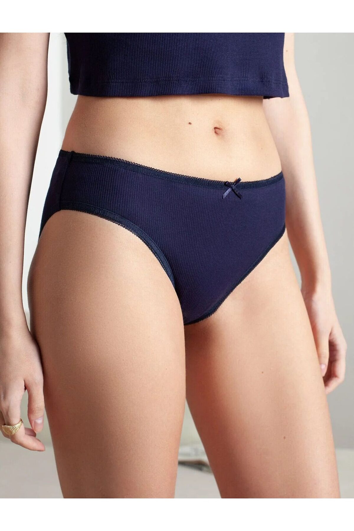 Мягкие и удобные трусы слипы темно-синего цвета средней посадки выполнены из эластичного фактурного трикотажа в рубчик. Особенность этого изделия — эластичная структура ткани, благодаря чему она хорошо тянется и подстраивается под особенности любой женской фигуры. Отделка аккуратным кружевом добавляет изделию изящности и женственности, делая модель не только практичной, но и привлекательной. Такие слипы идеально подходят для ежедневного использования благодаря своей мягкости и комфортной посадке, что особенно важно для чувствительной кожи. Эластичные свойства ткани поддерживают форму после стирок, сохраняя первозданный внешний вид изделия. Этот вариант белья сочетает функциональность и стиль, что делает его отличным выбором для тех, кто ценит качество и комфорт каждый день. Рекомендуем сочетать с артикулами: D43.232, D43.233, D43.234, D49.150, D49.151, D49.152,D49.153, D49.154, D42.120, D44.161
