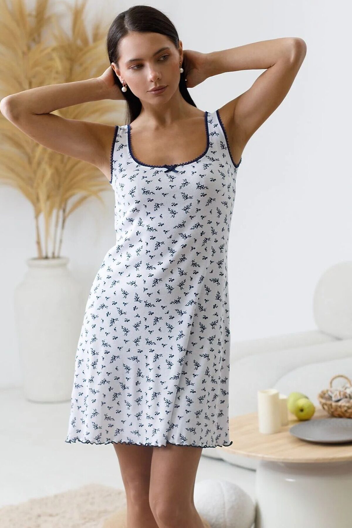 Сарафан белого цвета длины мини с вырезом из эластичного трикотажа кашкорсе создан для современных женщин, ценящих красоту и удобство. Крой выгодно подчеркивает фигуру и создает женственное настроение в образе. Благодаря отделке нежным кружевом и цветочным принтом сарафан выглядит по-особенному романтично и изысканно. Трикотаж кашкорсе обеспечивает комфортное ощущение в течение дня как дома, так и на отдыхе. Этот домашний сарафан подойдет для спокойного вечера в кругу семьи, а так же для отдыха и сна. Мягкая ткань трикотажа приятна на ощупь и создает ощущение уюта. Любое движение свободно благодаря эластичному составу, который помогает сохранить форму даже после долгой носки. Легкий аккуратный волан по низу придает платью на широких лямках интересный акцент. Такой милый сарафан идеально смотрится на разных типах фигуры благодаря представленной широкой размерной линейке. Универсальный хлопковый сарафан гармонично впишется в гардероб, подчеркнет индивидуальность и создаст романтичное настроение даже дома.