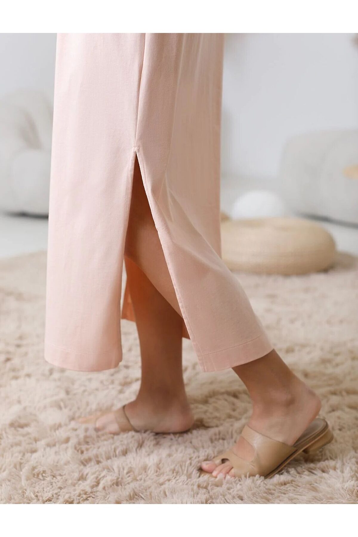 Длинное прямое платье с разрезами из 100% хлопка VILATTE, пудра