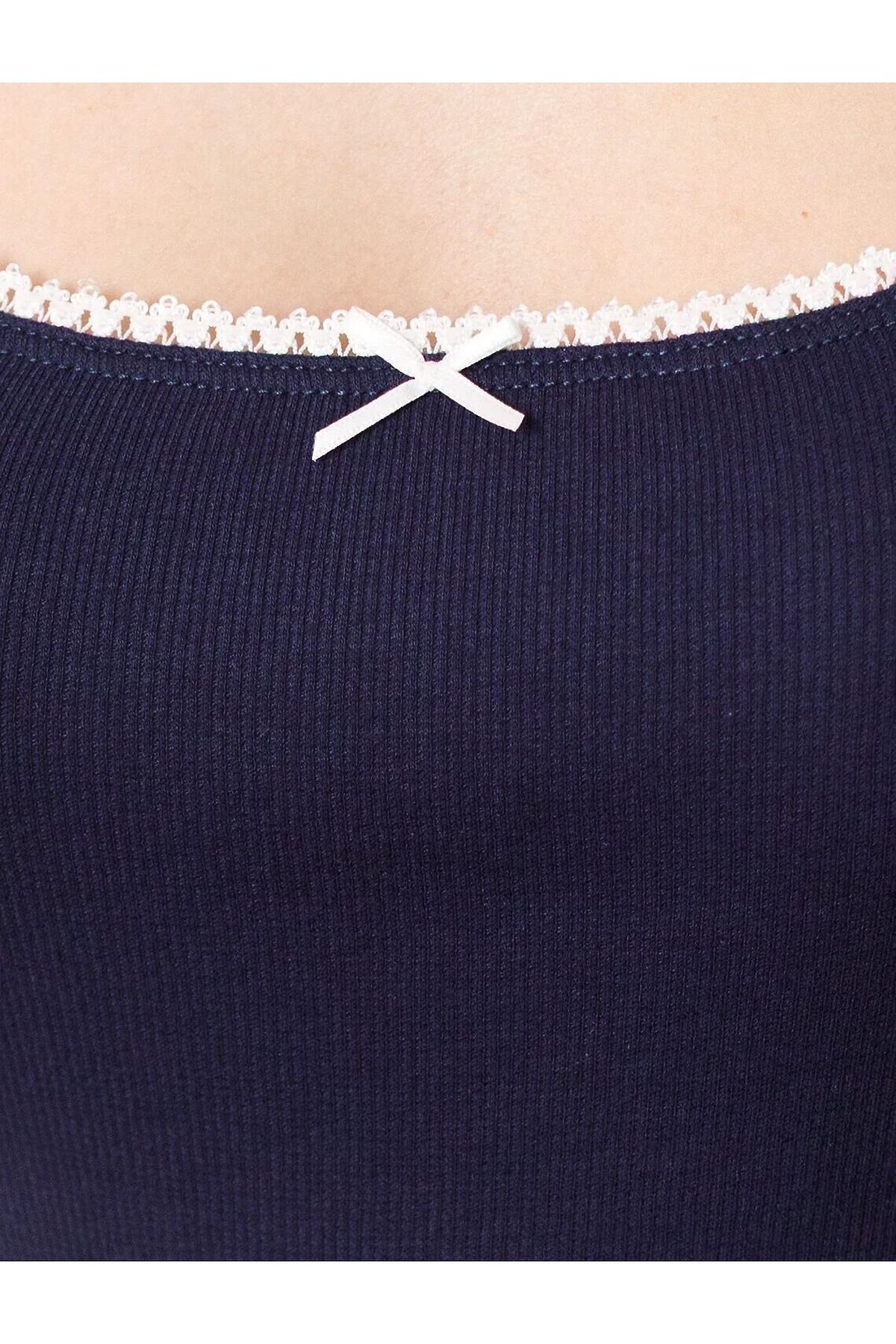 Топ темно-синего цвета с вырезом из эластичного трикотажа кашкорсе идеально сочетается с повседневным стилем и подходит для домашней носки или отдыха. Мягкое полотно из хлопка обеспечивает максимальный комфорт даже в течение длительного времени. Особенность этого изделия — эластичная структура ткани, благодаря чему она хорошо тянется и подстраивается под особенности фигуры. Женственная форма выреза красиво подчеркивает линию шеи и ключицы, а отделка нежным контрастным кружевом добавляет нотку романтичности и придает особый шарм. Майка подойдет для девушек и женщин, которые ценят уют и удобство. Нежная ткань приятна к телу, не вызывает дискомфорта и позволяет коже дышать, что особенно важно в повседневной жизни. Полуприлегающий крой визуально вытягивает силуэт и делает фигуру более стройной. Разнообразие размеров позволяет выбрать подходящий вариант для любых параметров, в том числе на большие размеры. Этот красивый домашний топ практичен и незаменим для тех, кто ищет качественные вещи на каждый день. Рекомендуем сочетать с артикулами: D40.001, D40.002, D40.003, D48.011, D48.012, D44.160, D44.161, D44.163