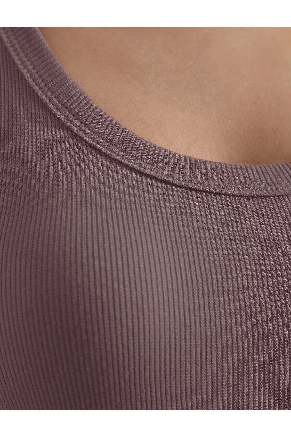 Топ с круглым вырезом из фактурного трикотажа в рубчик VILATTE, кофе