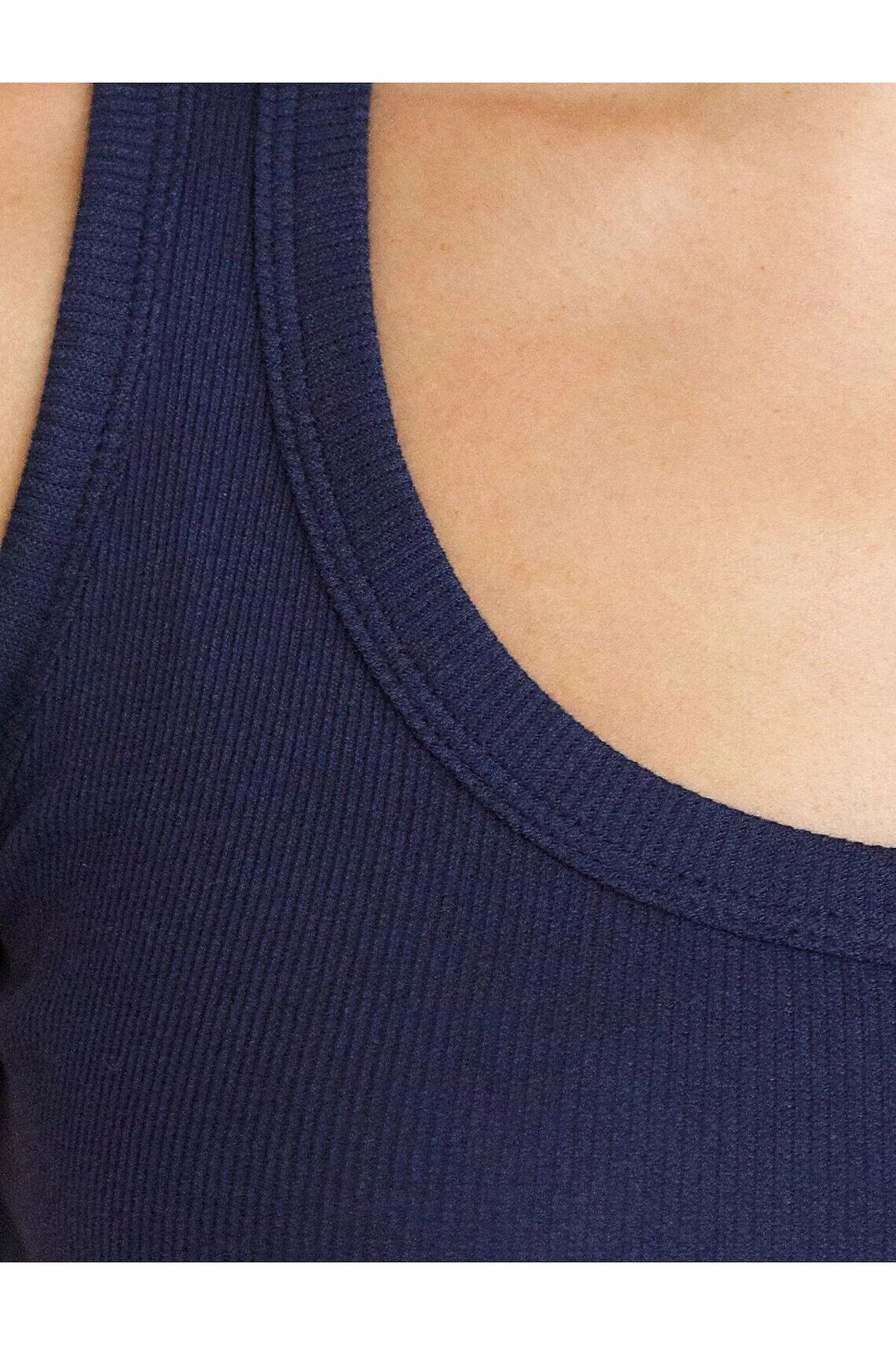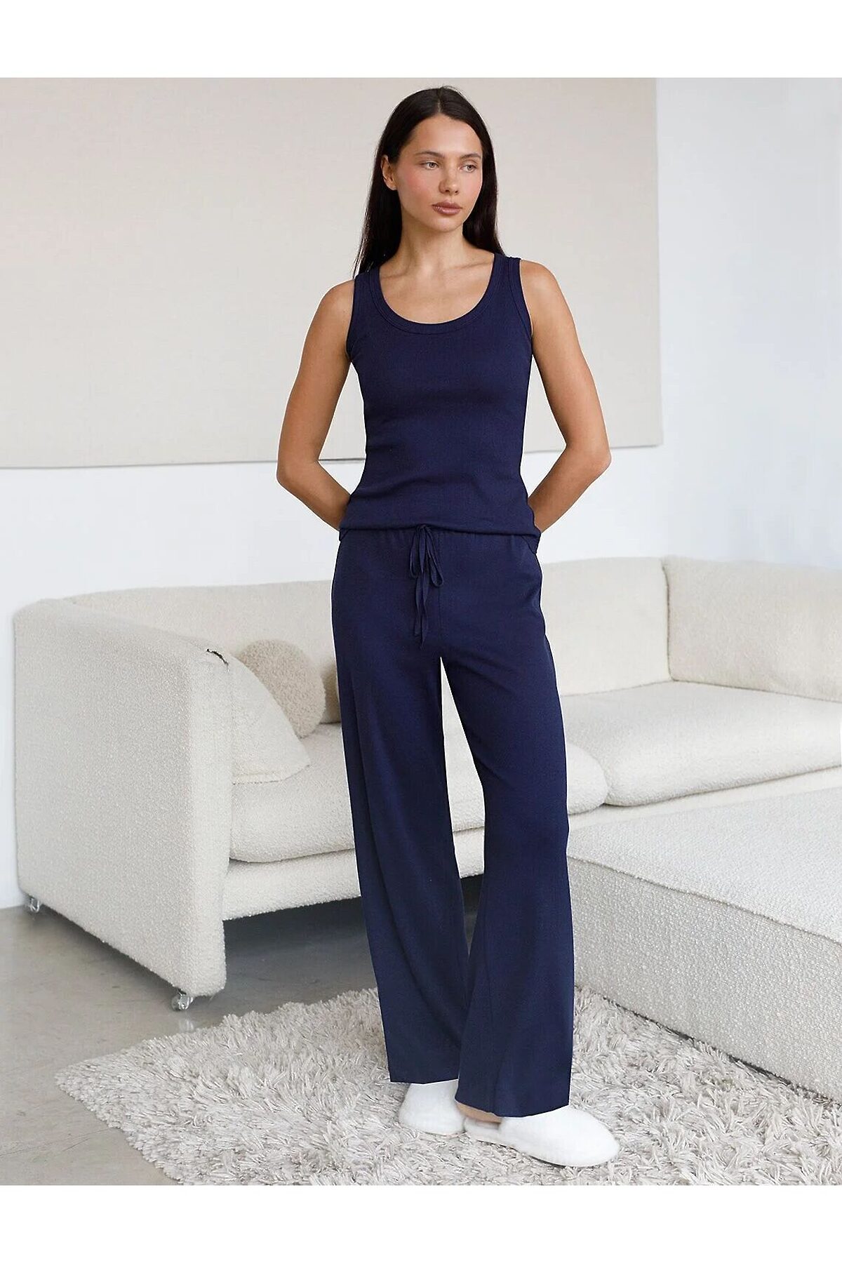 Базовый топ темно-синего цвета с круглым вырезом из фактурного трикотажа в рубчик идеально сочетается с повседневным стилем и подходит для домашней носки или отдыха. Мягкое полотно из хлопка обеспечивает максимальный комфорт даже в течение длительного времени. Особенность этого изделия — эластичная структура ткани, благодаря чему она хорошо тянется и подстраивается под особенности фигуры. Майка подойдет для девушек и женщин, которые ценят уют и удобство. Нежная ткань приятна к телу, не вызывает дискомфорта и позволяет коже дышать, что особенно важно в повседневной жизни. Полуприлегающий крой визуально вытягивает силуэт и делает фигуру более стройной, а широкие лямки не доставляют дискомфорта и хорошо держат форму. Разнообразие размеров позволяет выбрать подходящий вариант для любых параметров, в том числе на большие размеры. Этот повседненый топ практичен и незаменим для тех, кто ищет качественные вещи на каждый день. Рекомендуем сочетать с артикулами: D40.001, D40.002, D40.003, D48.011, D48.012, D44.160, D44.161, D44.162, D44.163, D46.058