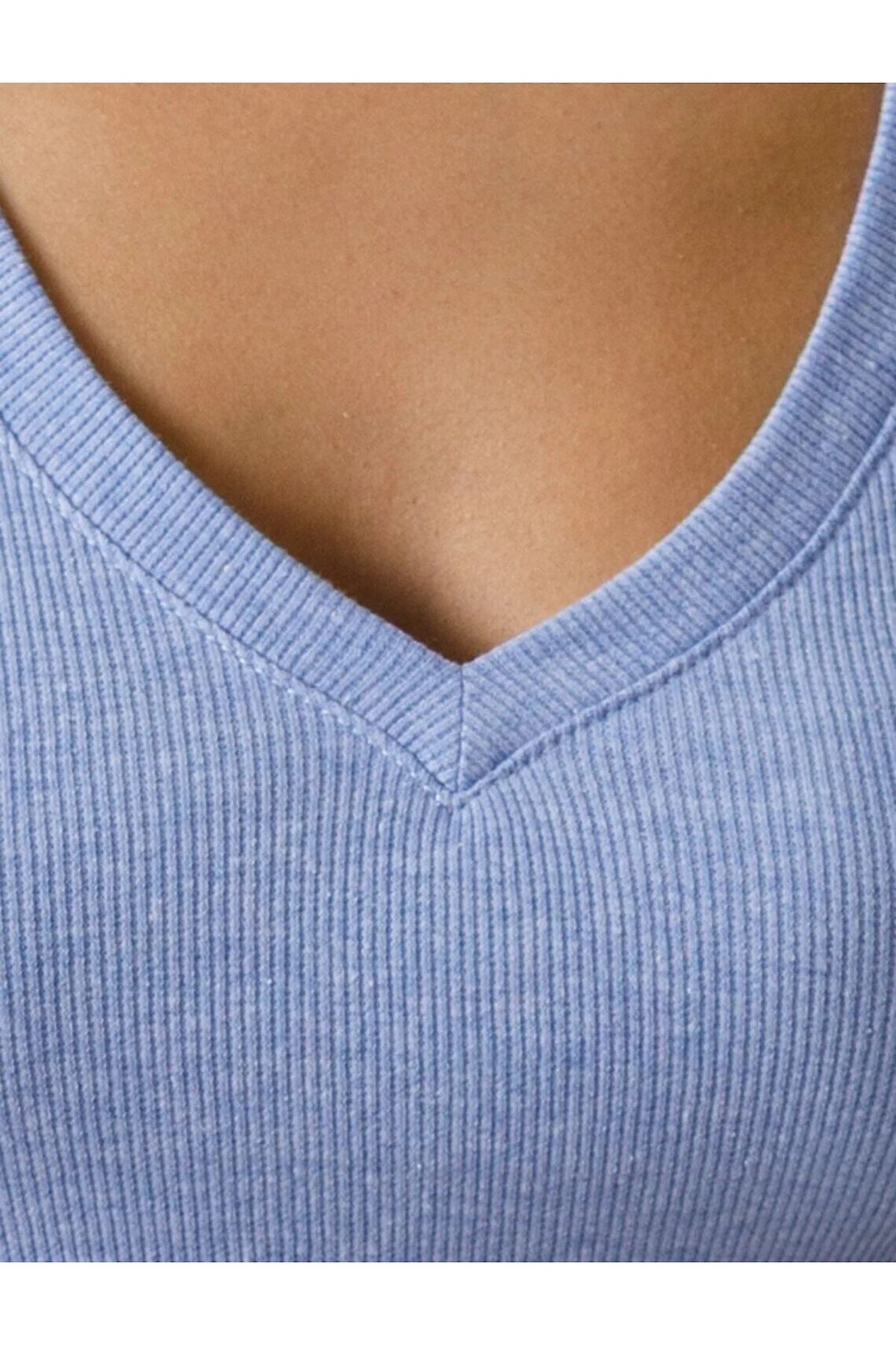 Футболка с V вырезом из фактурного трикотажа в рубчик VILATTE, голубой меланж