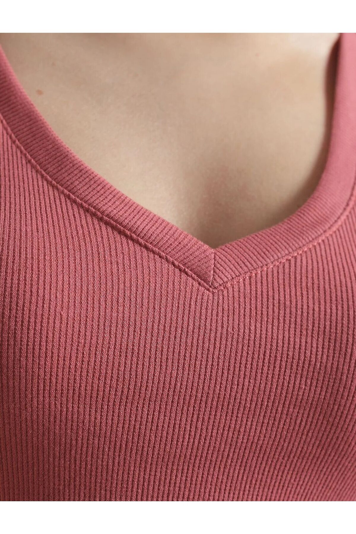 Футболка с V вырезом из фактурного трикотажа в рубчик VILATTE, т.коралл