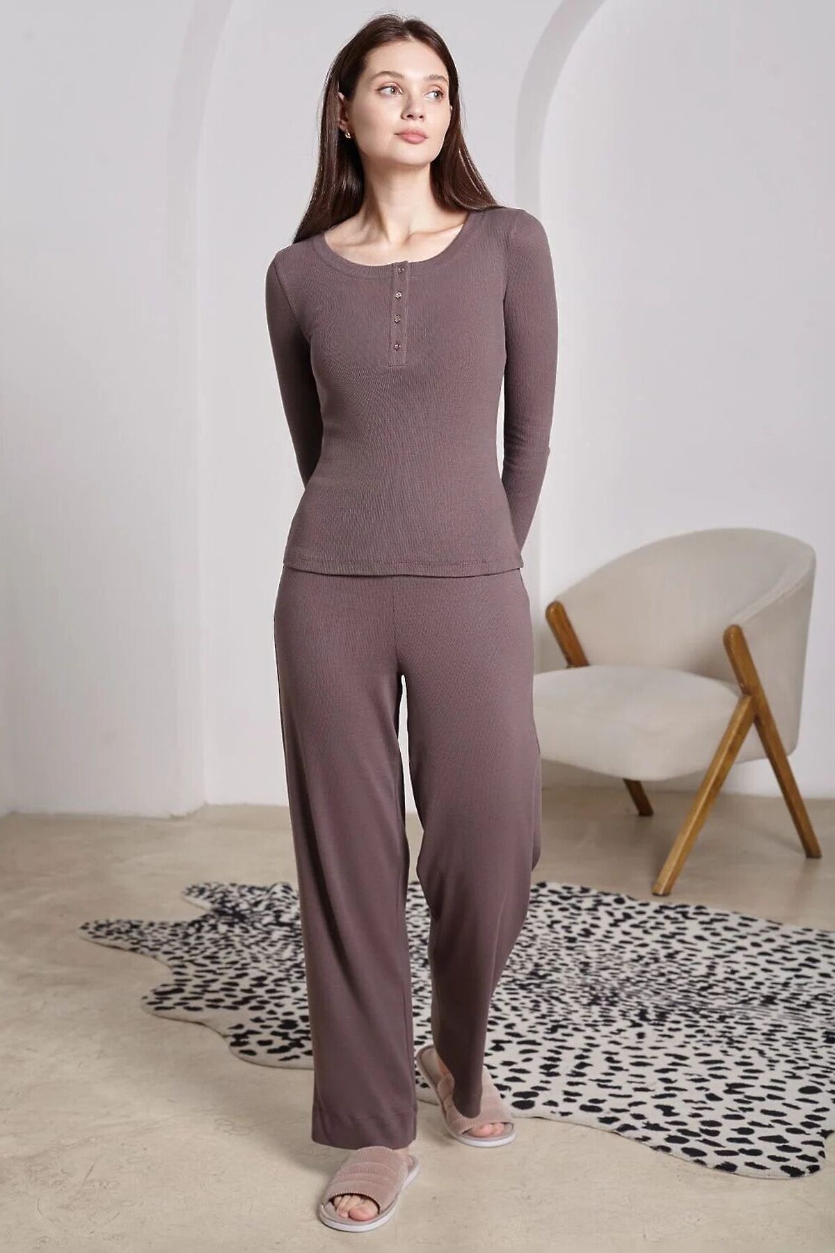 Лонгслив кофейного цвета в мелкий рубчик облегающий с круглым вырезом на пуговицах — это удобный и стильный выбор для любого времени года. Благодаря продуманному дизайну и аккуратному круглому вырезу такой вариант лонгслива отлично смотрится и на работе, и в повседневной жизни. Трикотаж в мелкий рубчик делает тонкий джемпер особенно мягким и дарит комфорт. Натуральный хлопок в составе приятен телу, обеспечивает хорошую воздухопроницаемость и сохраняет теплоту. Облегает фигуру, подчеркивая достоинства силуэта, делая образ женственным. Материал отличается мягкой и эластичной структурой, благодаря чему лонгслив не сковывает движений и дарит ощущение свободы в течение дня. Лонг подходит на любую фигуру, не теряя привлекательного внешнего вида даже на большие размеры. Такой стильный лонгслив позволяет легко создавать повседневные и расслабленные образы. Рекомендуем сочетать с артикулами: D48.011, D48.012, D44.160, D44.161, D44.162, D44.163, D46.058, D40.001, D40.002, D40.003