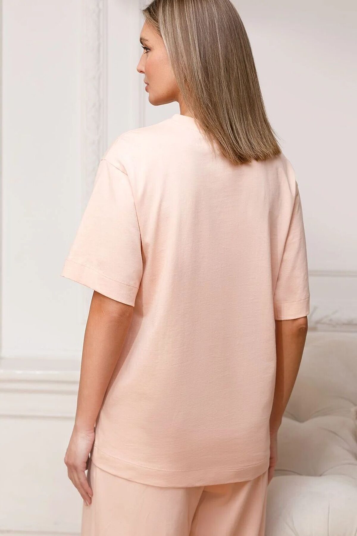 Футболка оверсайз с принтом из премиального 100% хлопка VILATTE, пудра_everything