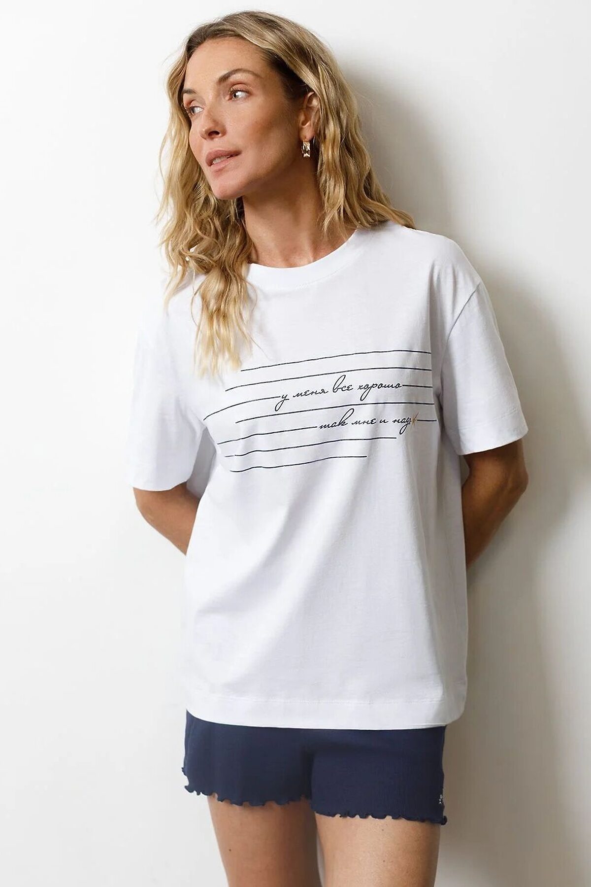 Футболка с принтом свободная из премиального 100% хлопка VILATTE, белый_все_хорошо