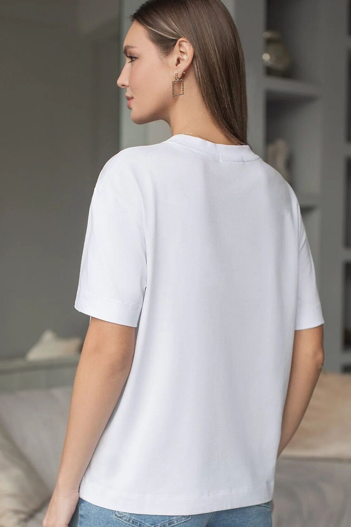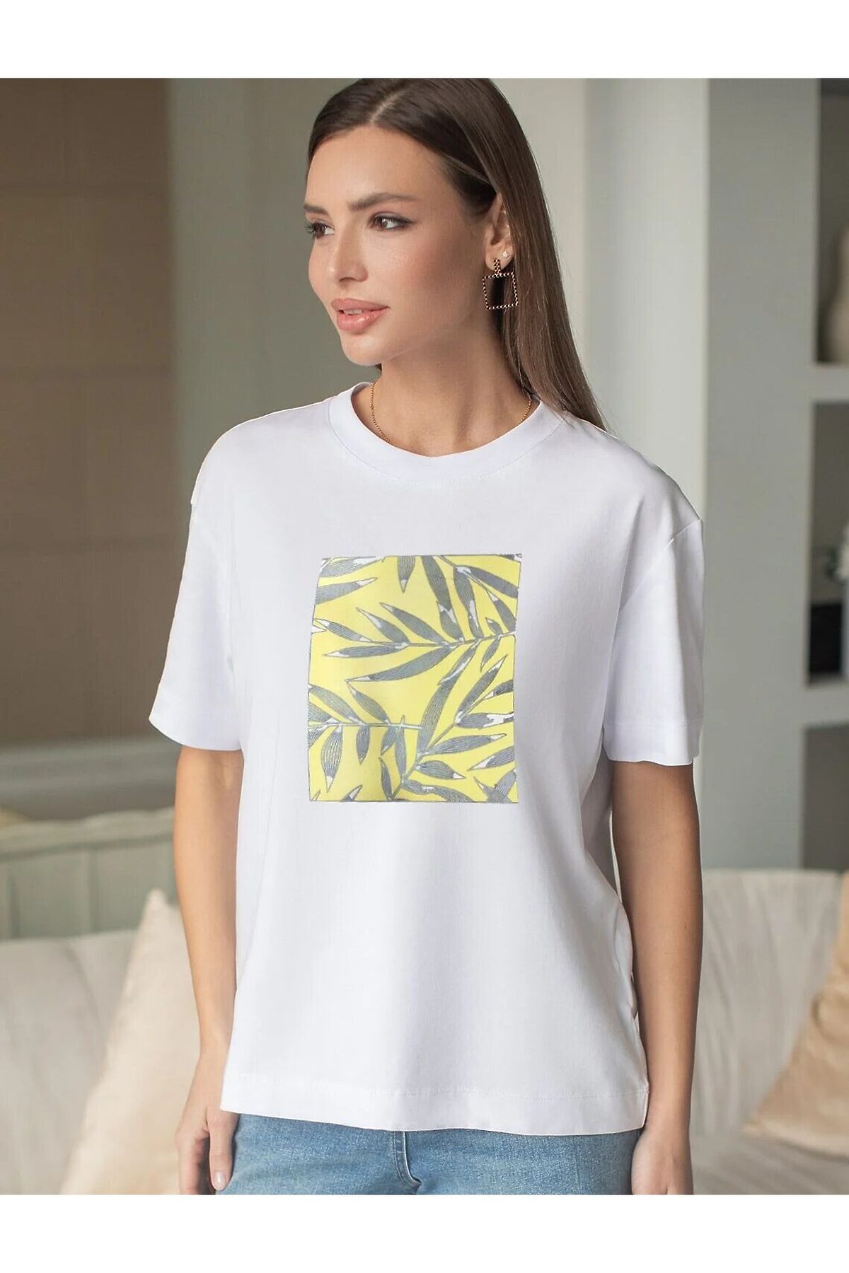 Футболка с принтом свободная из премиального 100% хлопка VILATTE, белый_листья