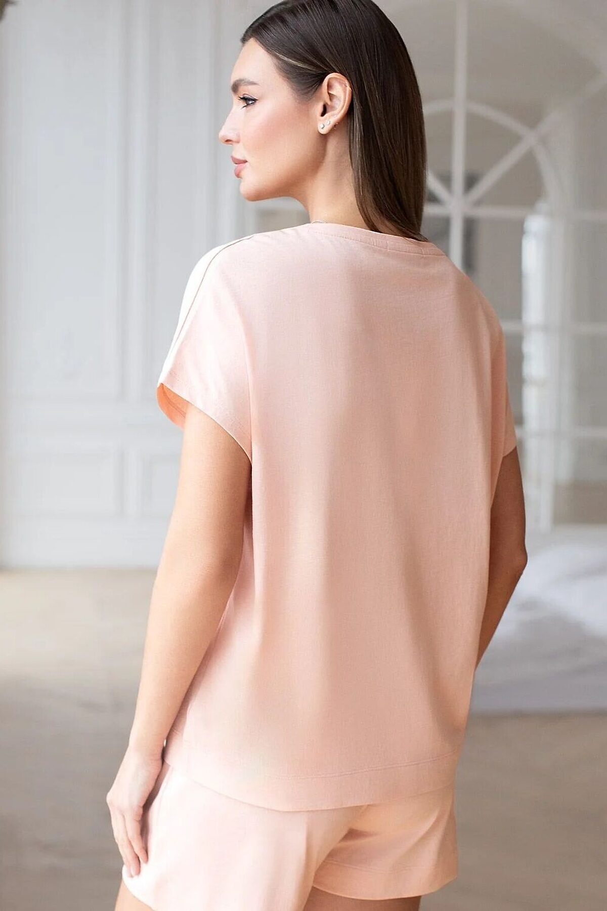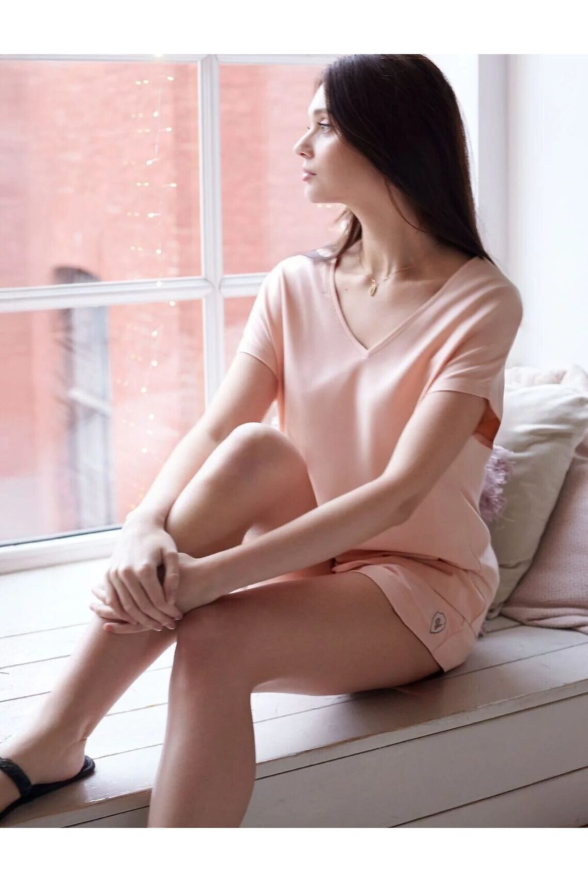 Свободная футболка пудрового цвета с V-вырезом и цельнокроеным рукавом из натурального 100% хлопка создает красивый и легкий образ для дома и отдыха. Дышащая ткань бережно заботится о коже, в то время как декольте с V-вырезом утонченно подчеркивает линию шеи, а свободный крой скрывает возможные недостатки фигуры. Такая футболка отлично подойдет для тех, кто ценит комфорт и стиль одновременно. Благодаря натуральной хлопковой ткани, она идеально подходит для ежедневного использования, обеспечивая чувство легкости и свободы движений. Легкая структура материала поддерживает оптимальный микроклимат, что важно при длительном использовании. Эта футболка женственно смотрится и дарит ощущение уюта, делая ее необходимым элементом домашнего гардероба. Рекомендуем сочетать с артикулами: D44,160, D44.161, D44.162, D44.163, D44.161, D48.011, D48.012, D46.058