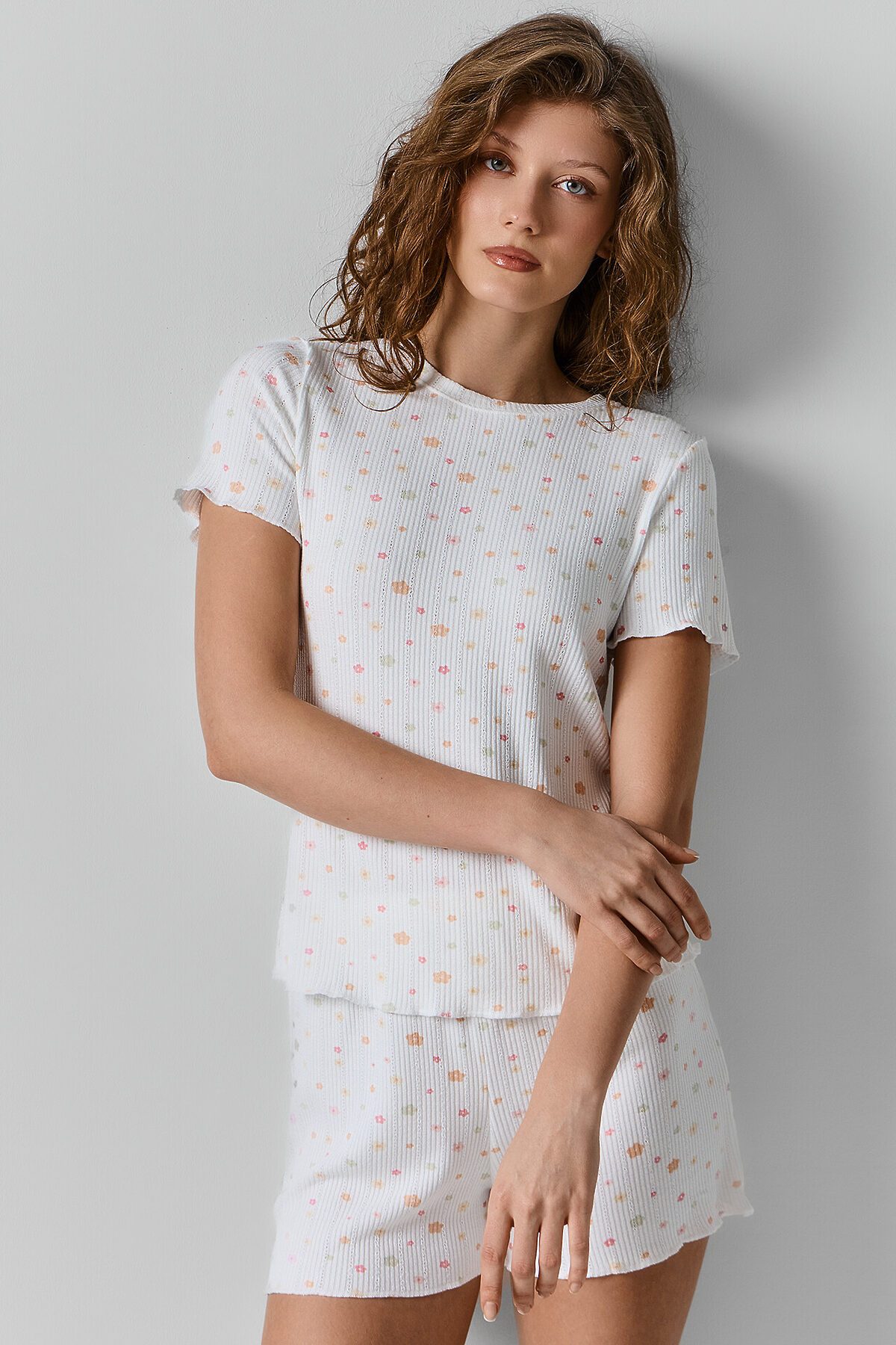 Комплект женский (джемпер, шорты) MARK FORMELLE, цветы на белом
