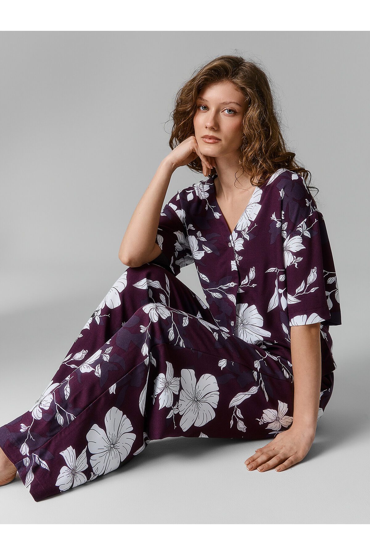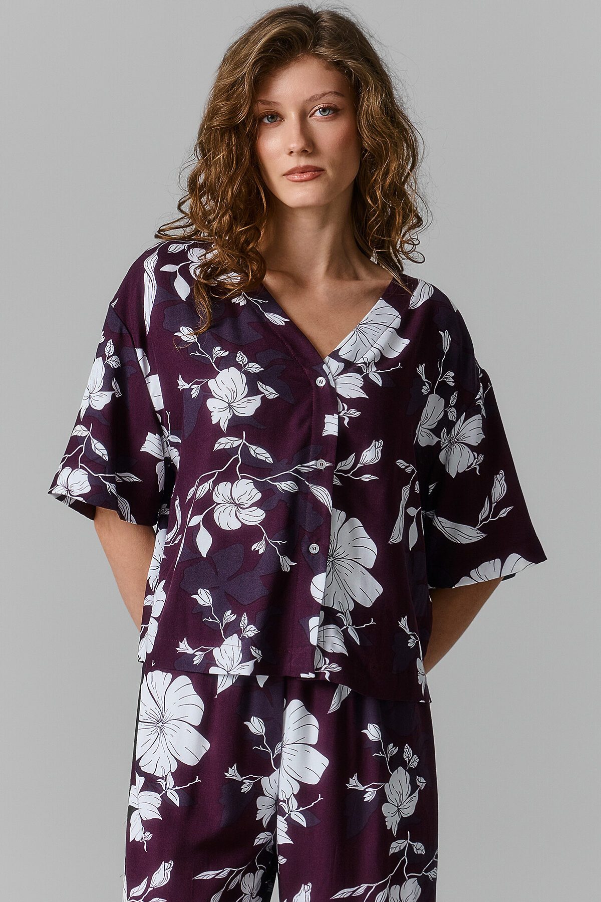 Нежная женская пижама выглядит очень элегантно и комфортно. Жакет свободного силуэта с короткими рукавами и застежкой на пуговицах создаёт легкий и расслабленный образ. А легкие брюки с эластичным поясом обеспечивают дополнительный комфорт и свободу движений. Изделие выполнено из нежнейшей и приятной к телу вискозы, которая дарит ощущение мягкости и комфорта на протяжении всего дня или ночи. Этот комплект идеален для тех, кто ценит качество и утонченность в домашней одежде.
