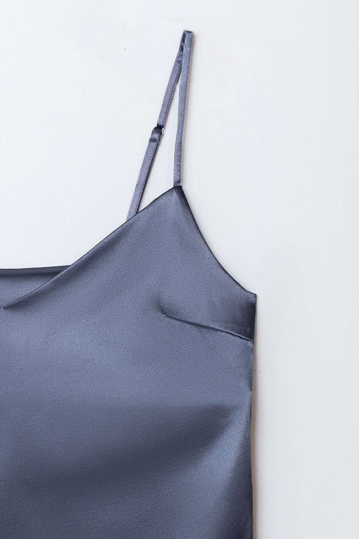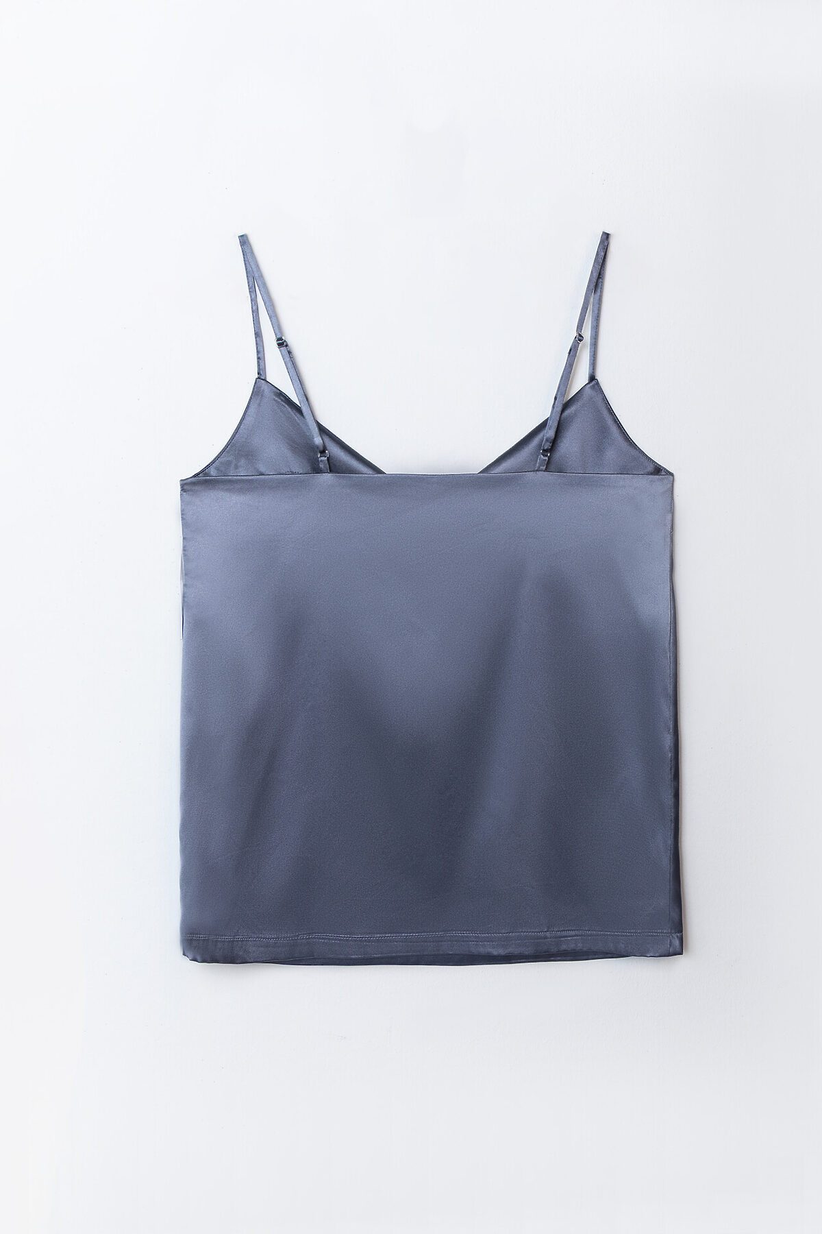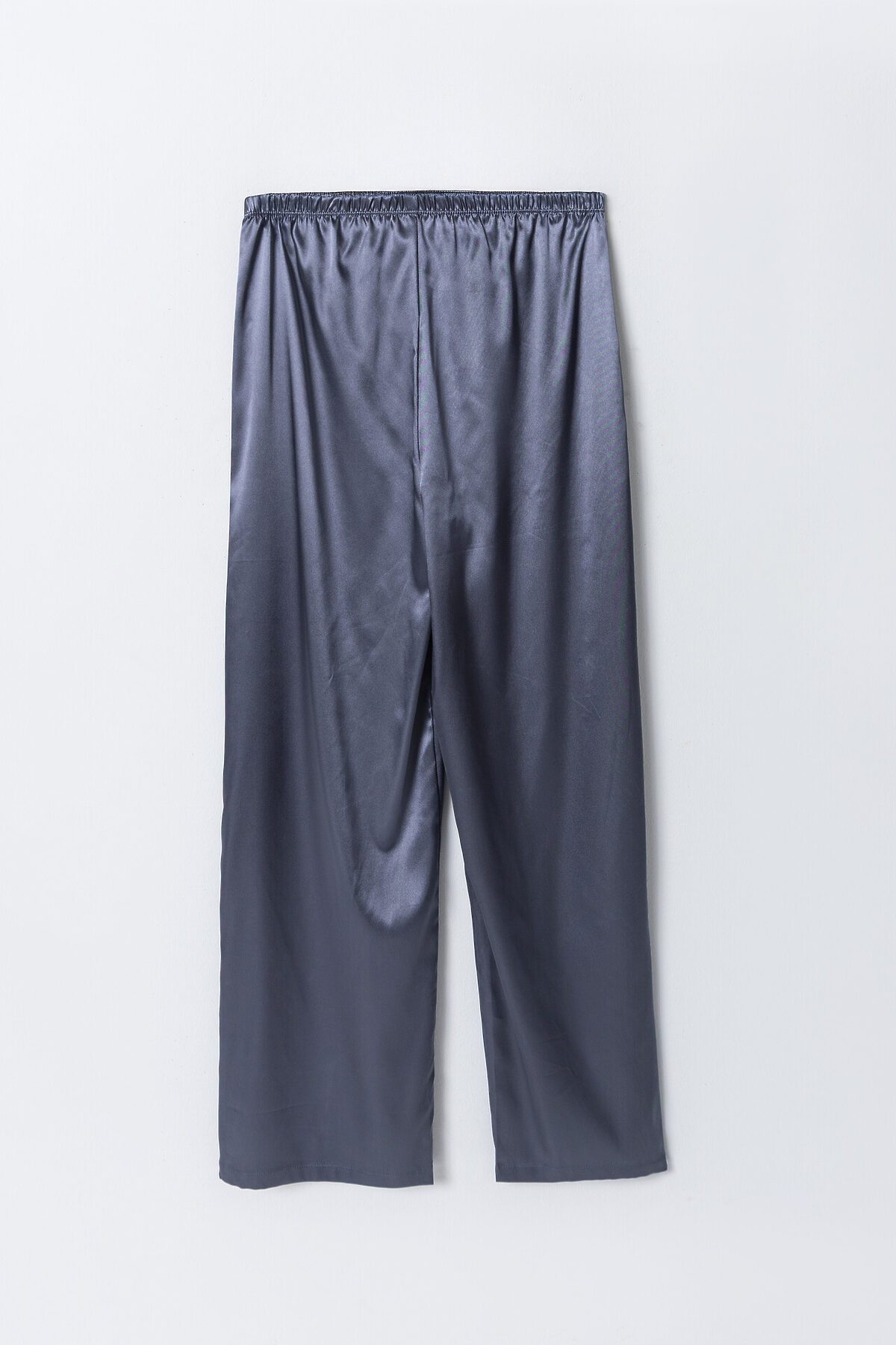 Комплект женский состоит из блузы и брюк. Блуза прямого силуэта удлиненная, на тонких бретелях. Горловина V-образной формы. Бретели выполнены из основного полотна с регулировкой на регуляторы и кольца (пластик 6мм). Горловина и проймы обработаны обтачкой. На передней детали застрочены вытачки. Нижний срез обработан швом вподгибку с закрытым срезом. Брюки прямые свободные, посадка средняя. Пояс цельнокроеный с эластичной тесьмой внутри (внутр. 20мм 20RV). Брюки с боковыми швами. Нижний срез обработан швом вподгибку с закрытым срезом.