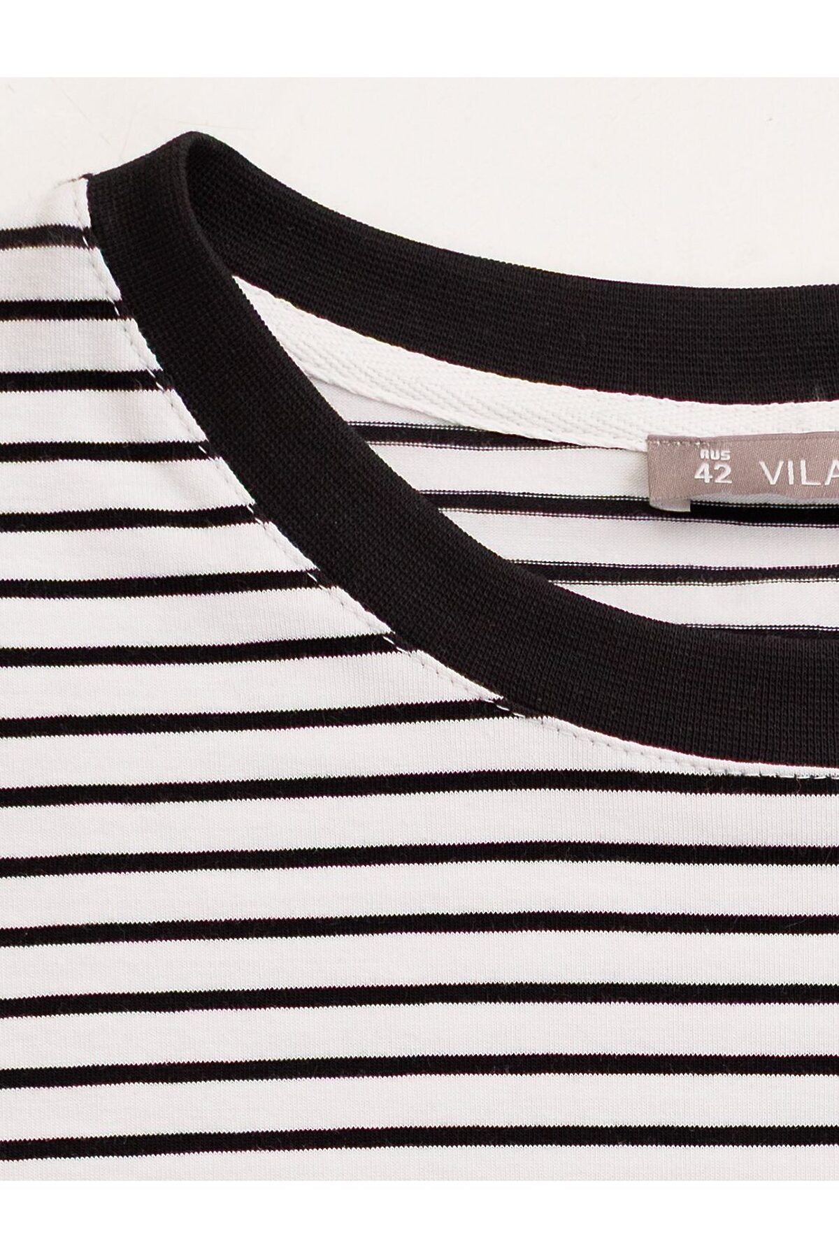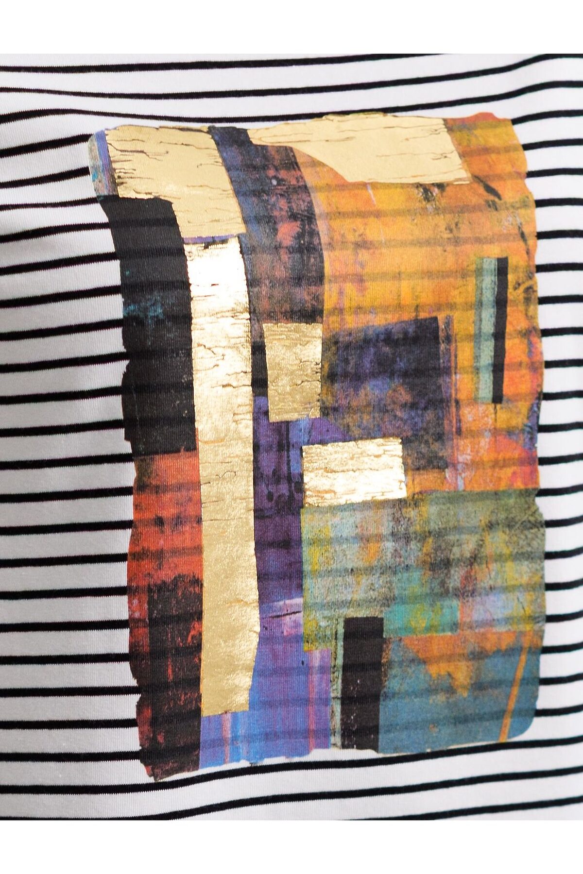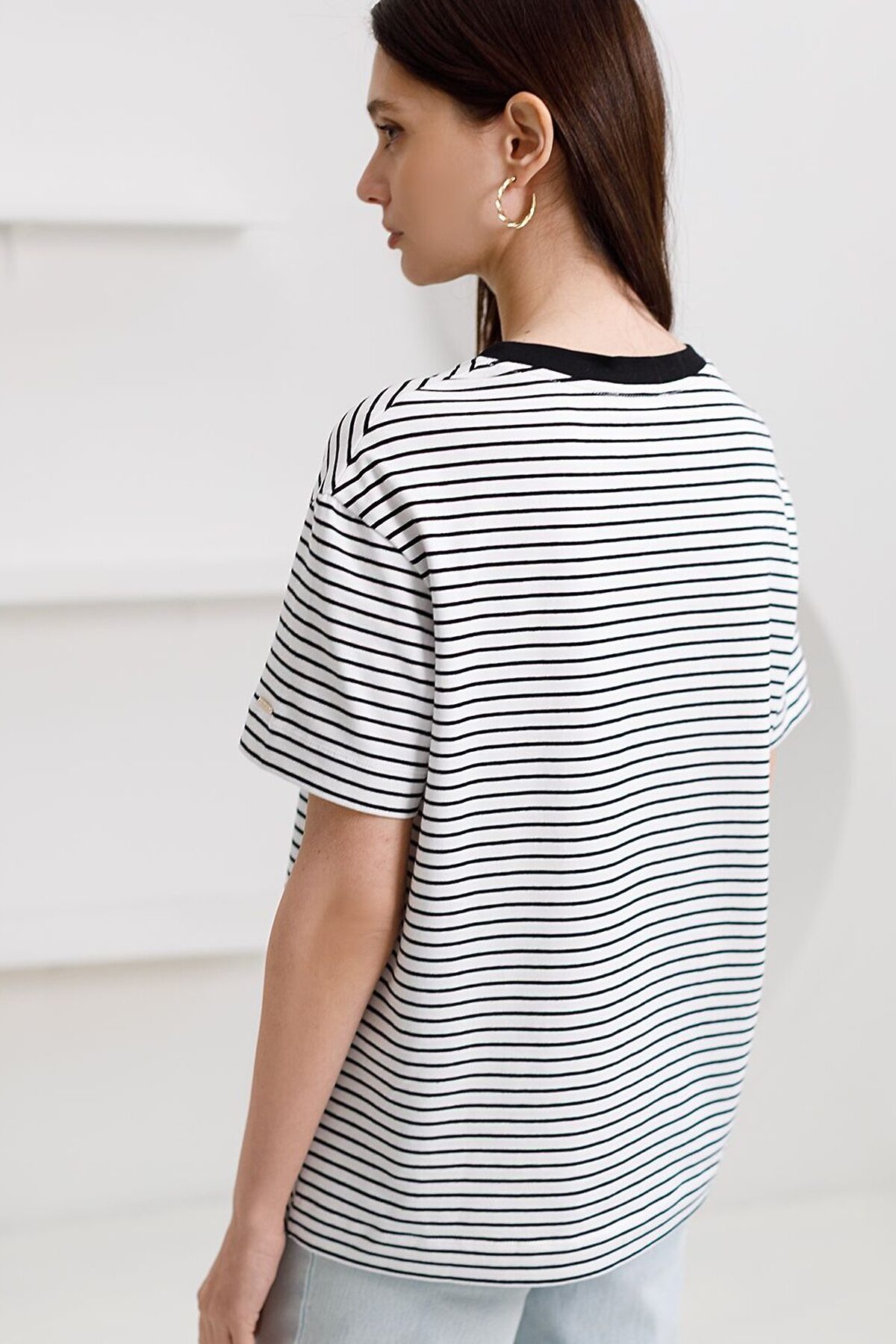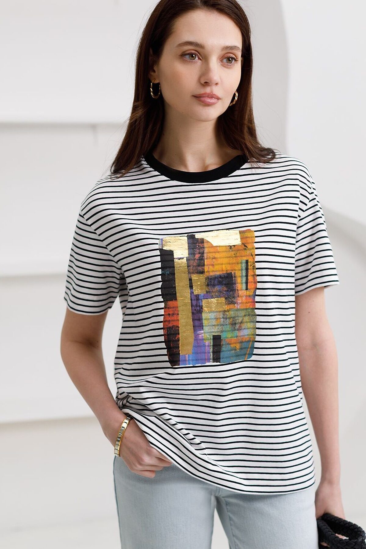 Свободная футболка в черно-белую полоску с принтом из премиального хлопка с эластаном VILATTE, белый-черный_абстракция