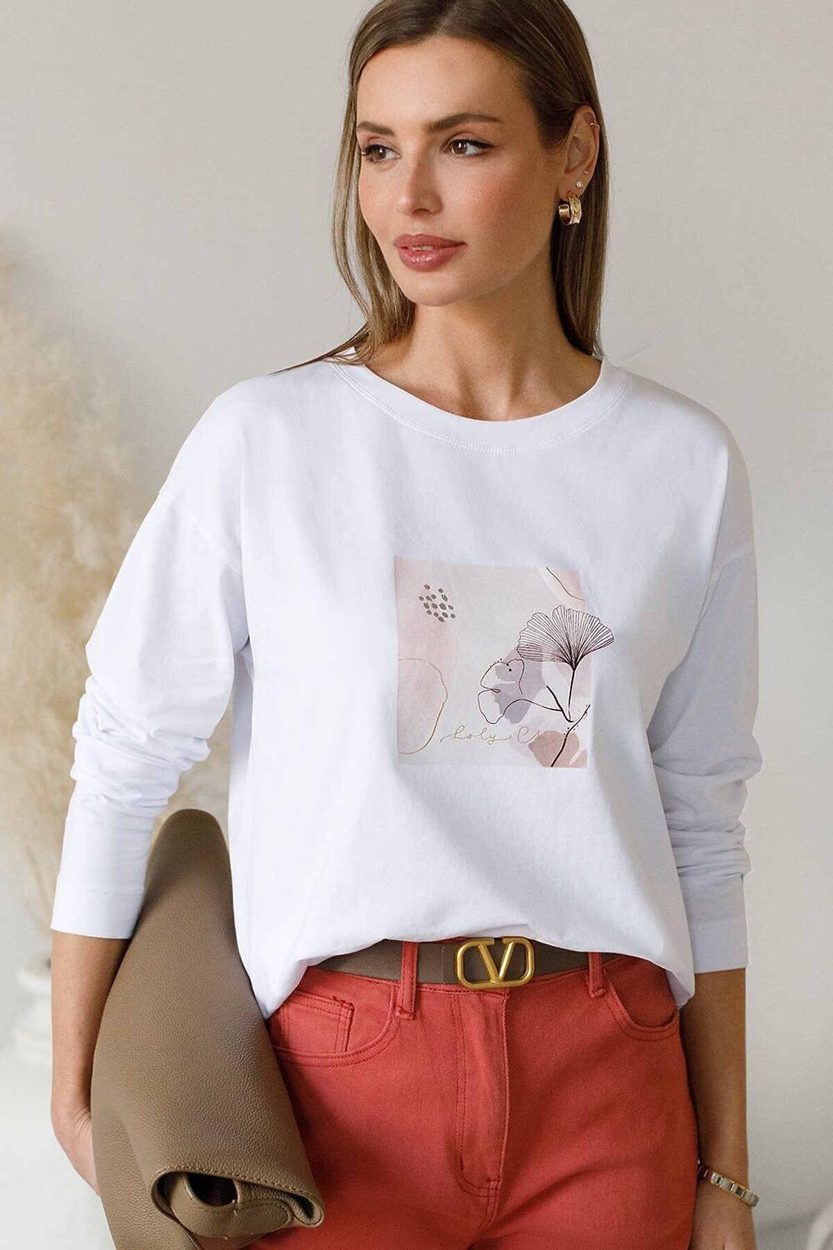 Свободный лонгслив белого цвета с длинным рукавом выполнен из премиального хлопка с добавлением эластана, плотностью 170 Г/м2, что обеспечивает комфорт и приятные тактильные ощущения. Принт в виде цветка, который нанесен красками с устойчивым покрытием, добавляет стиля и индивидуальности, а круглый ворот создает универсальный образ, который подойдет для повседневного использования. Такой лонгслив идеально подходит для весеннего и летнего сезона благодаря легкой и дышащей ткани. Представленная широкая размерная линейка позволяет выбрать оптимальный вариант на любую фигуру, в том числе на плюс-сайз, обеспечивая свободу движений и удобство на каждый день. Этот комфортный лонгслив станет отличной базой в гардеробе, сочетаясь с различными стилями одежды и создавая простой, но эффектный образ.