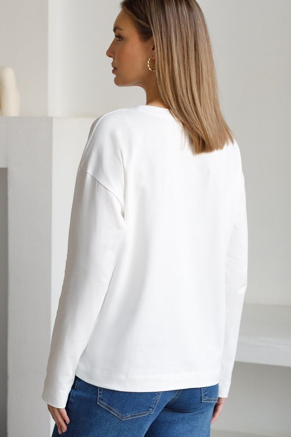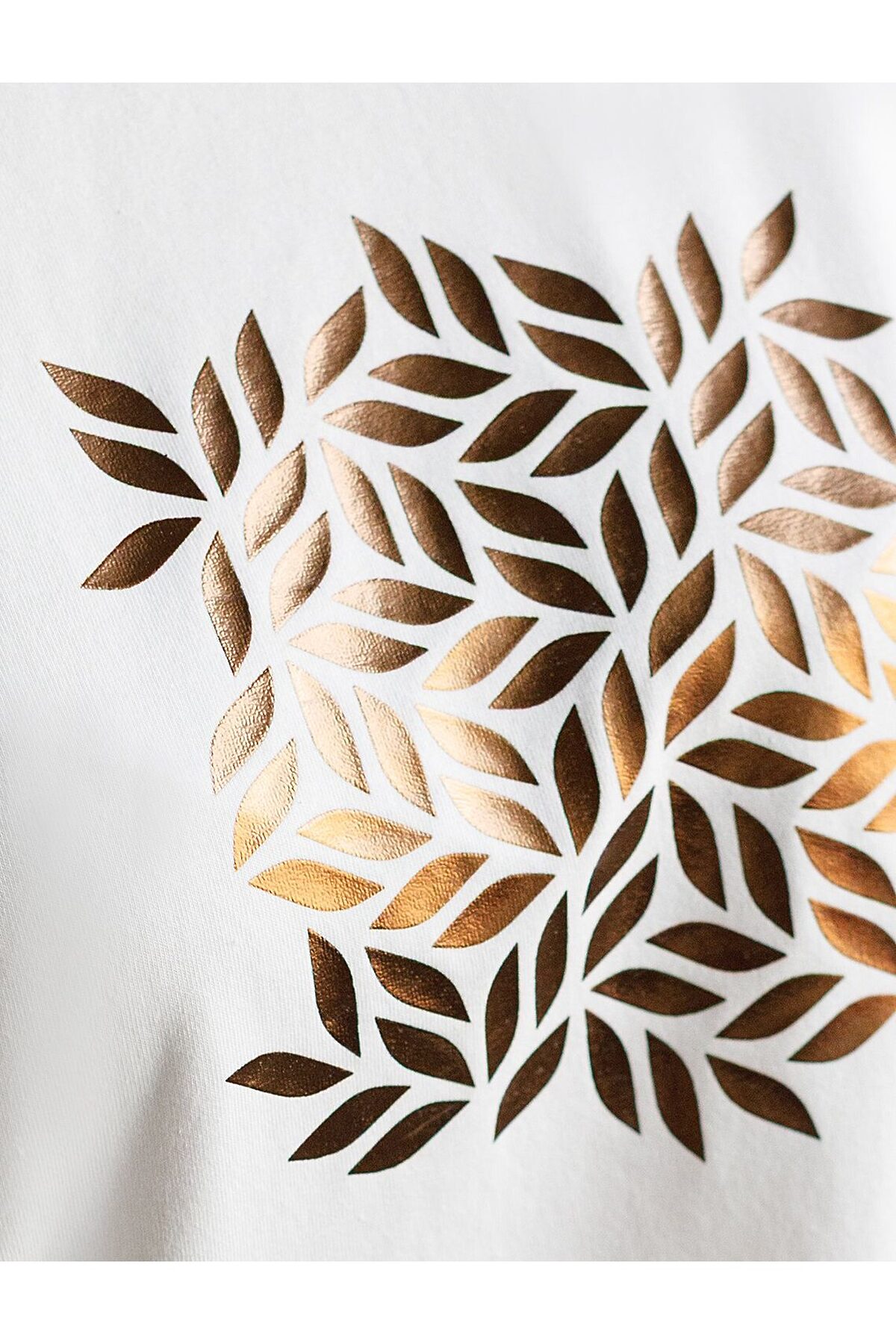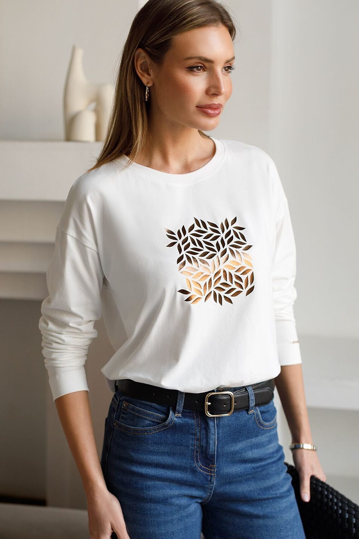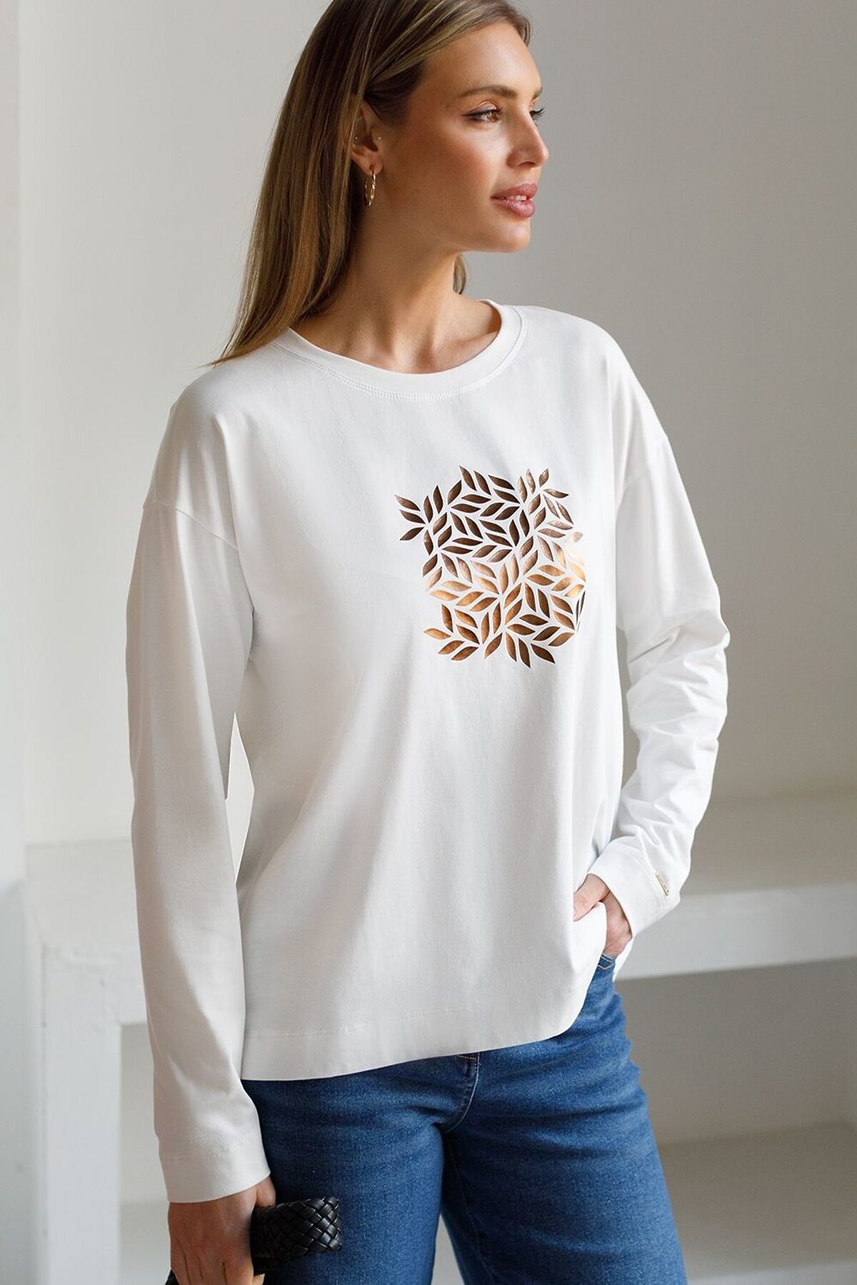 Лонгслив с принтом из премиального хлопка с эластаном VILATTE, молочный_листья