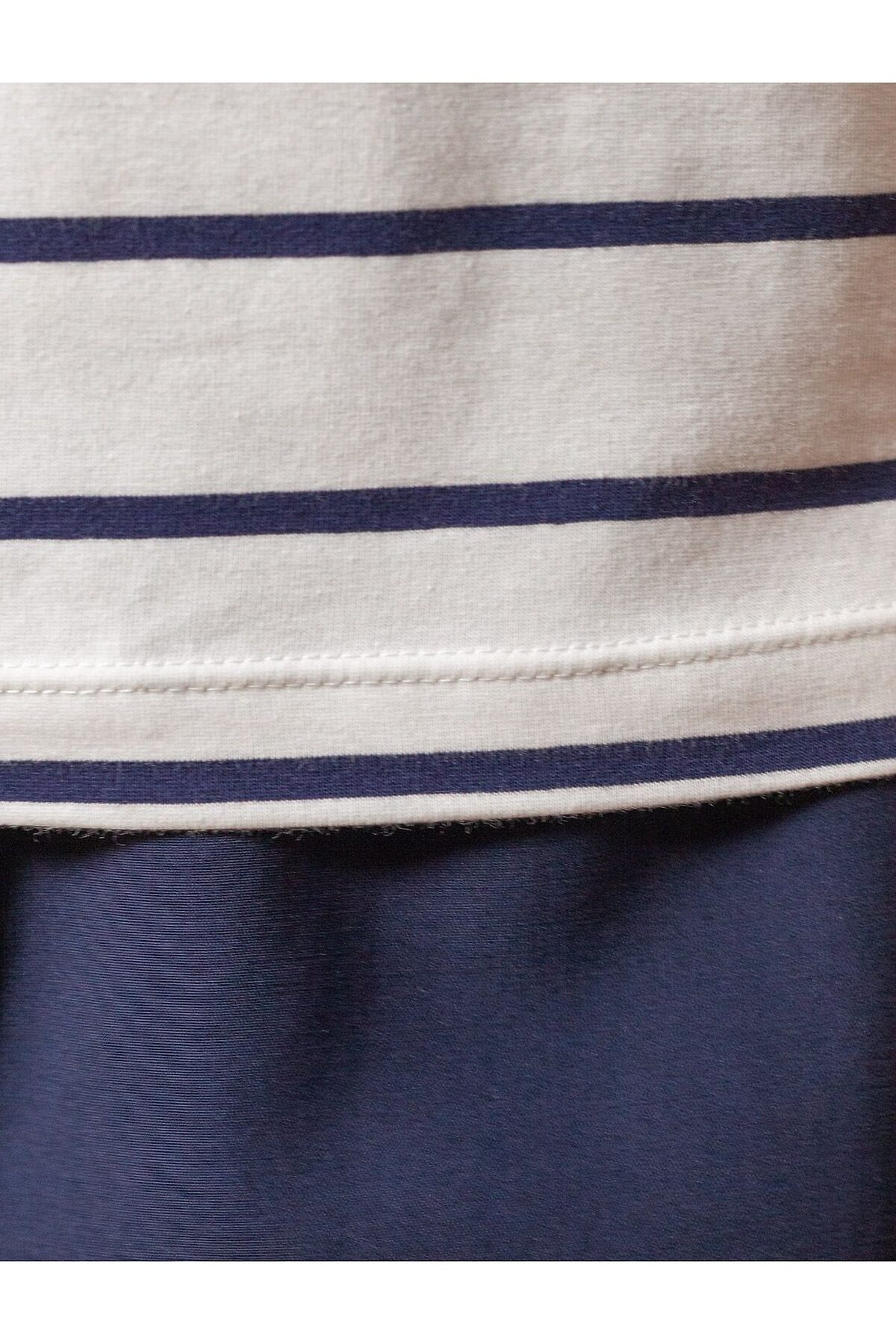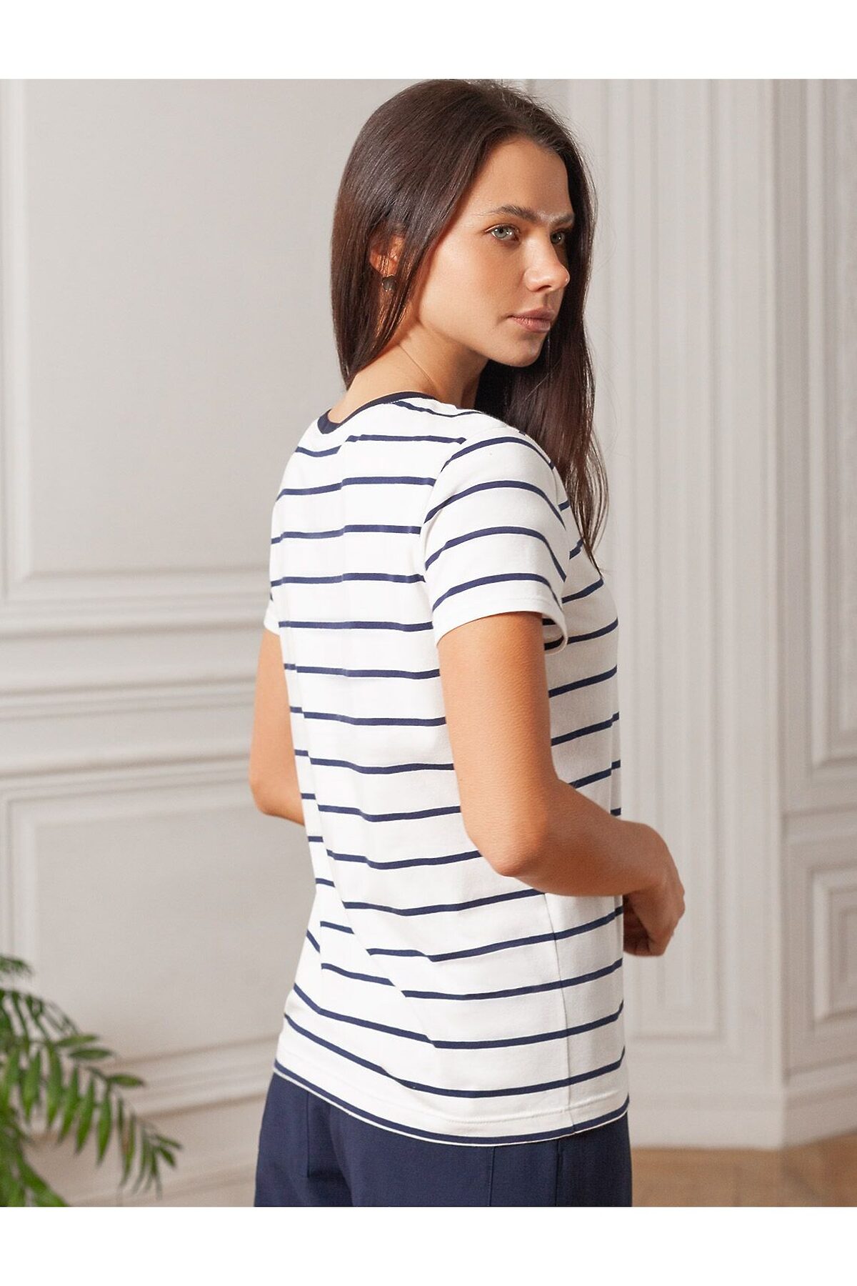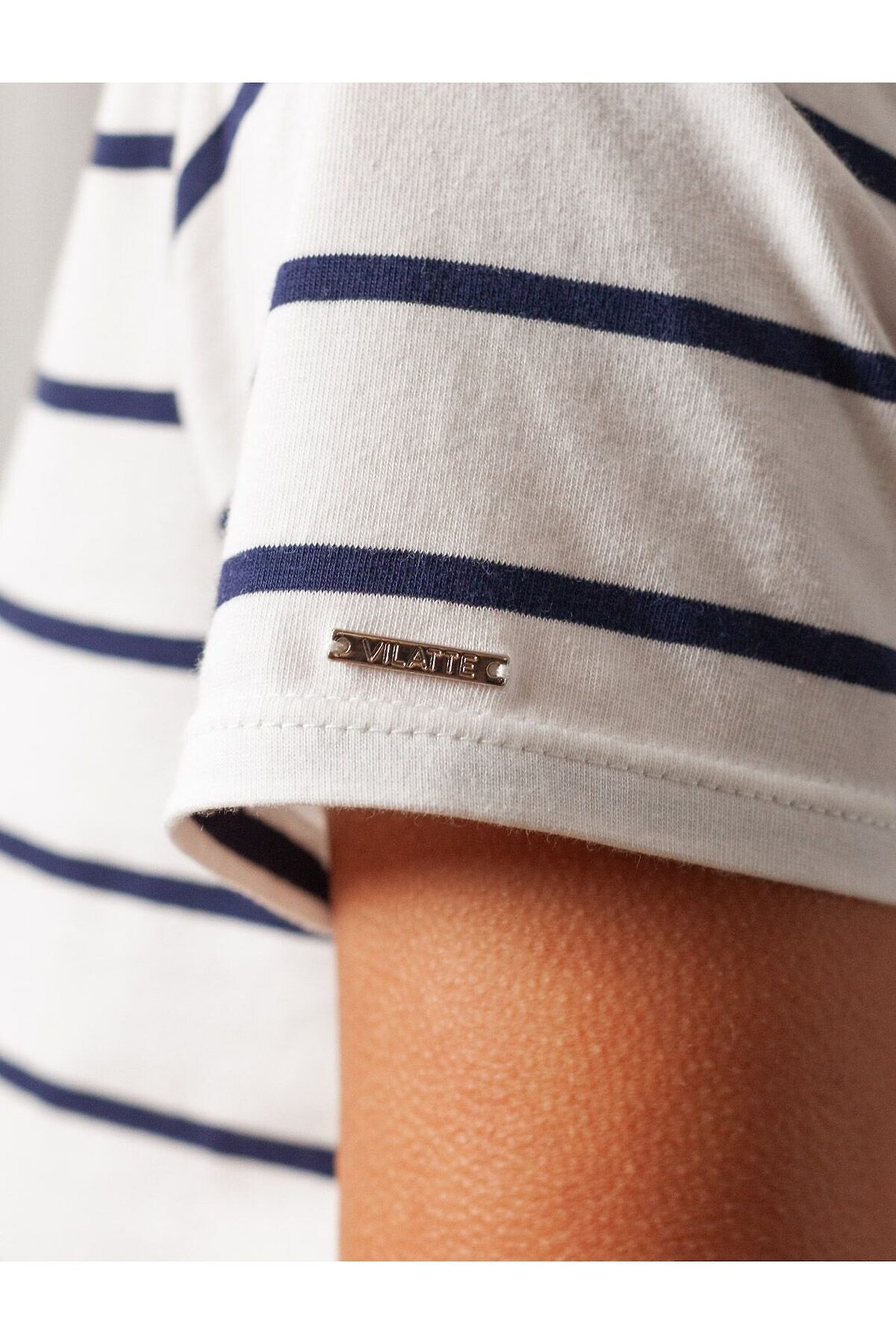 Базовая футболка в полоску полуприлегающая из премиального хлопка с эластаном VILATTE, белый-т.синий