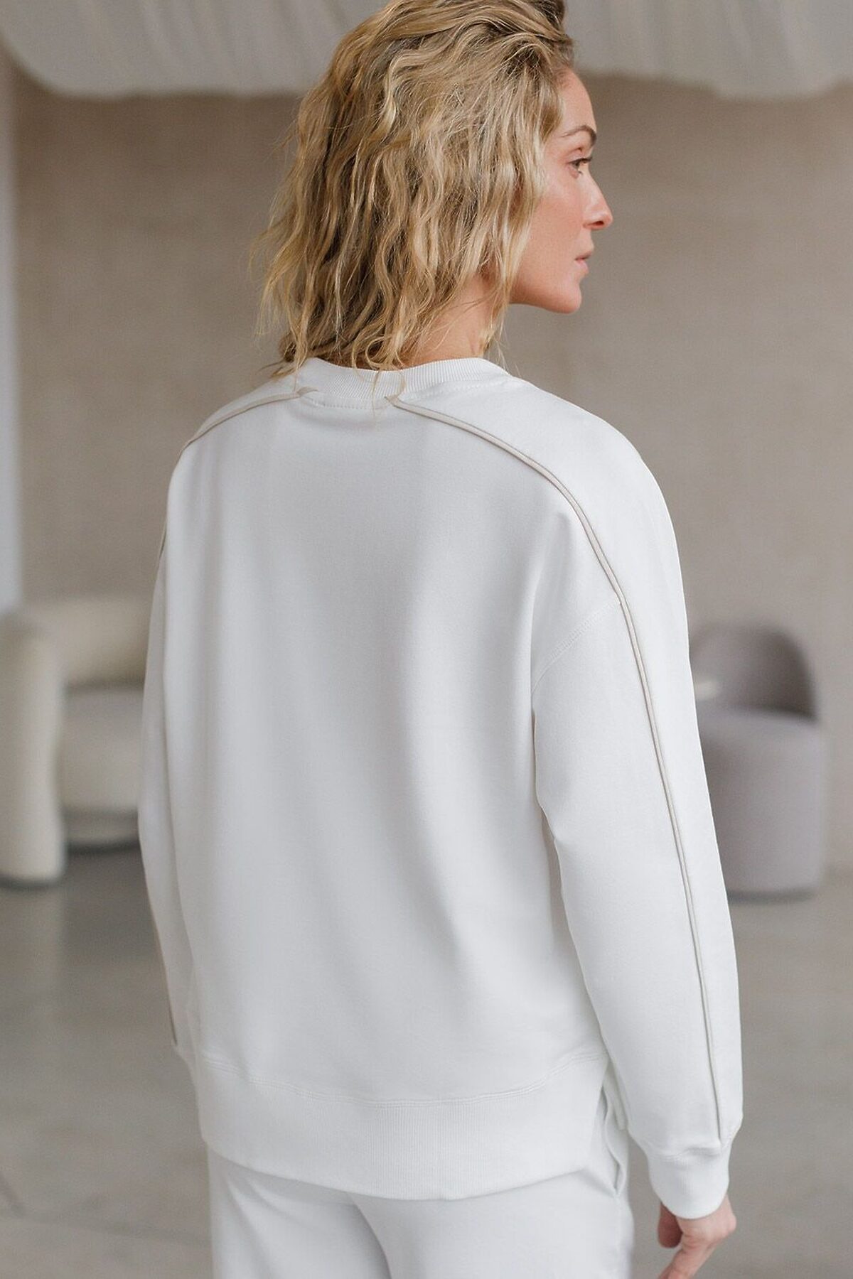 Свитшот с лампасами и разрезами из эластичного футера двухнитки без начеса VILATTE, белый_athleisure mood