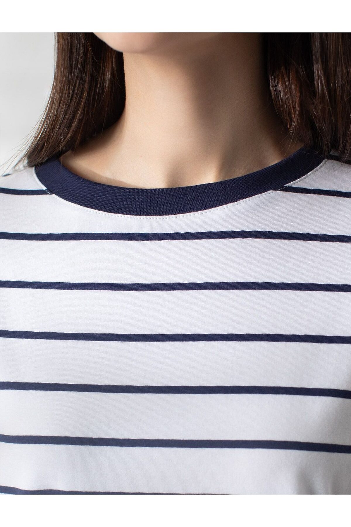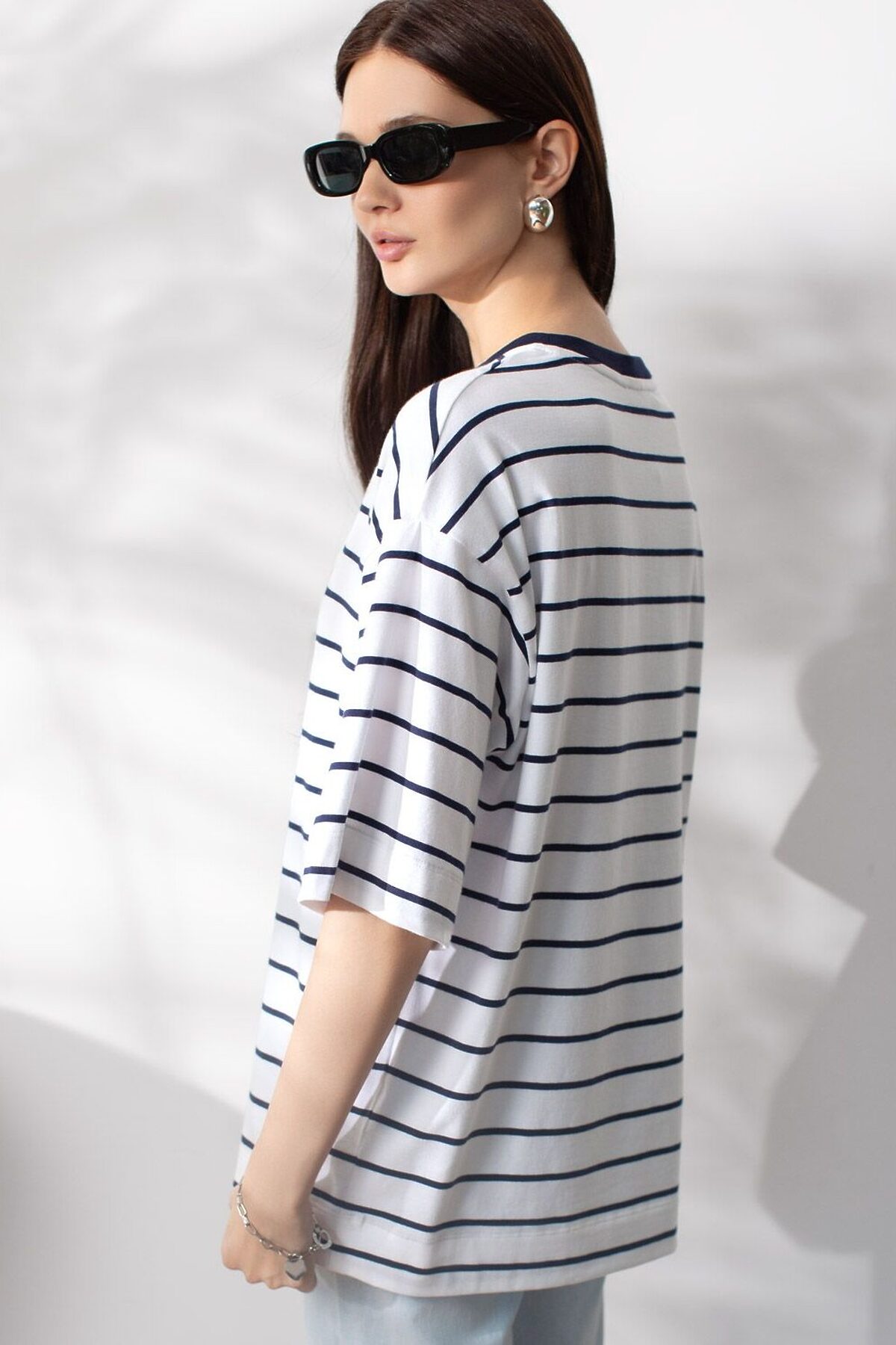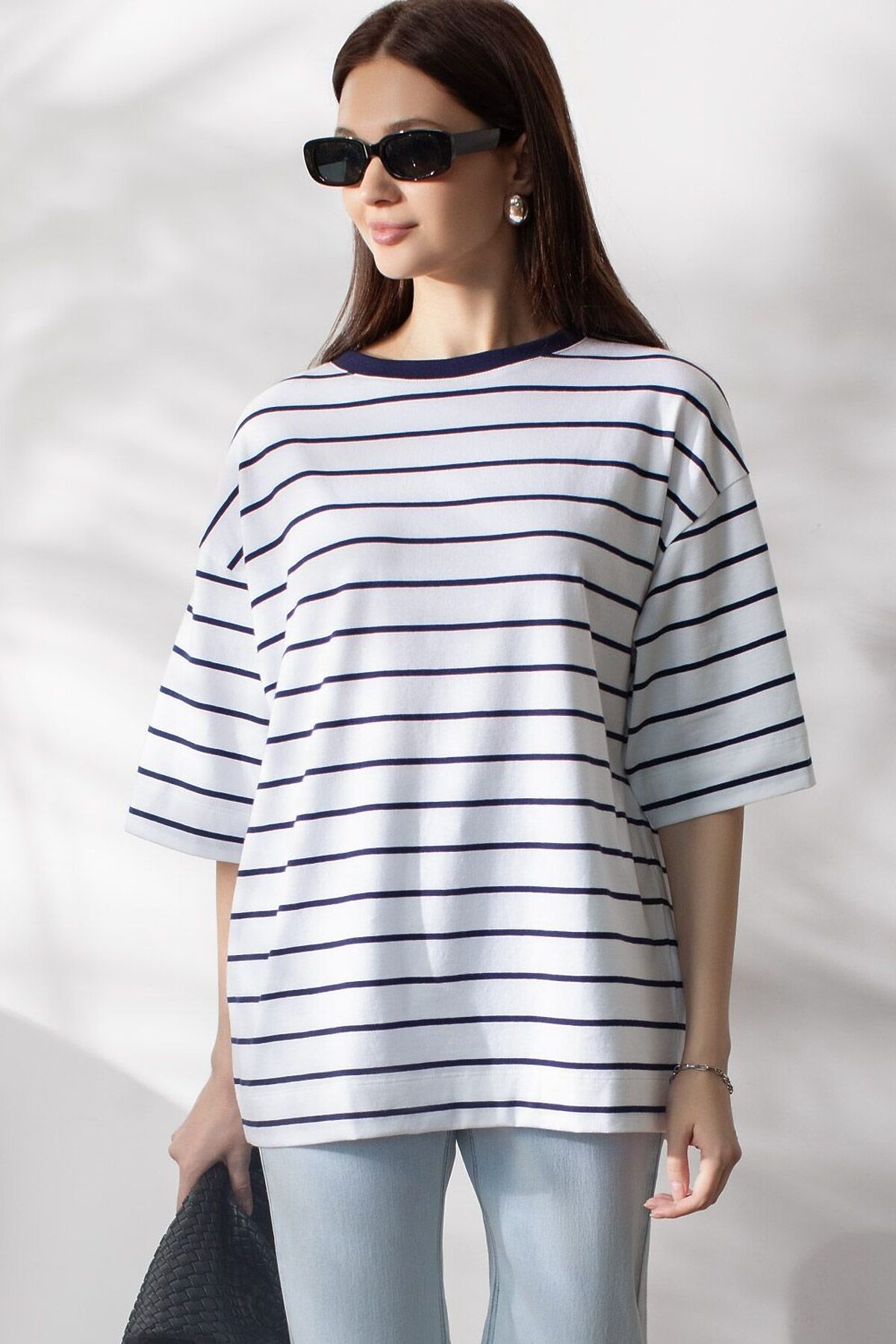 Свободная футболка в полоску из премиального хлопка с эластаном VILATTE, белый-синий