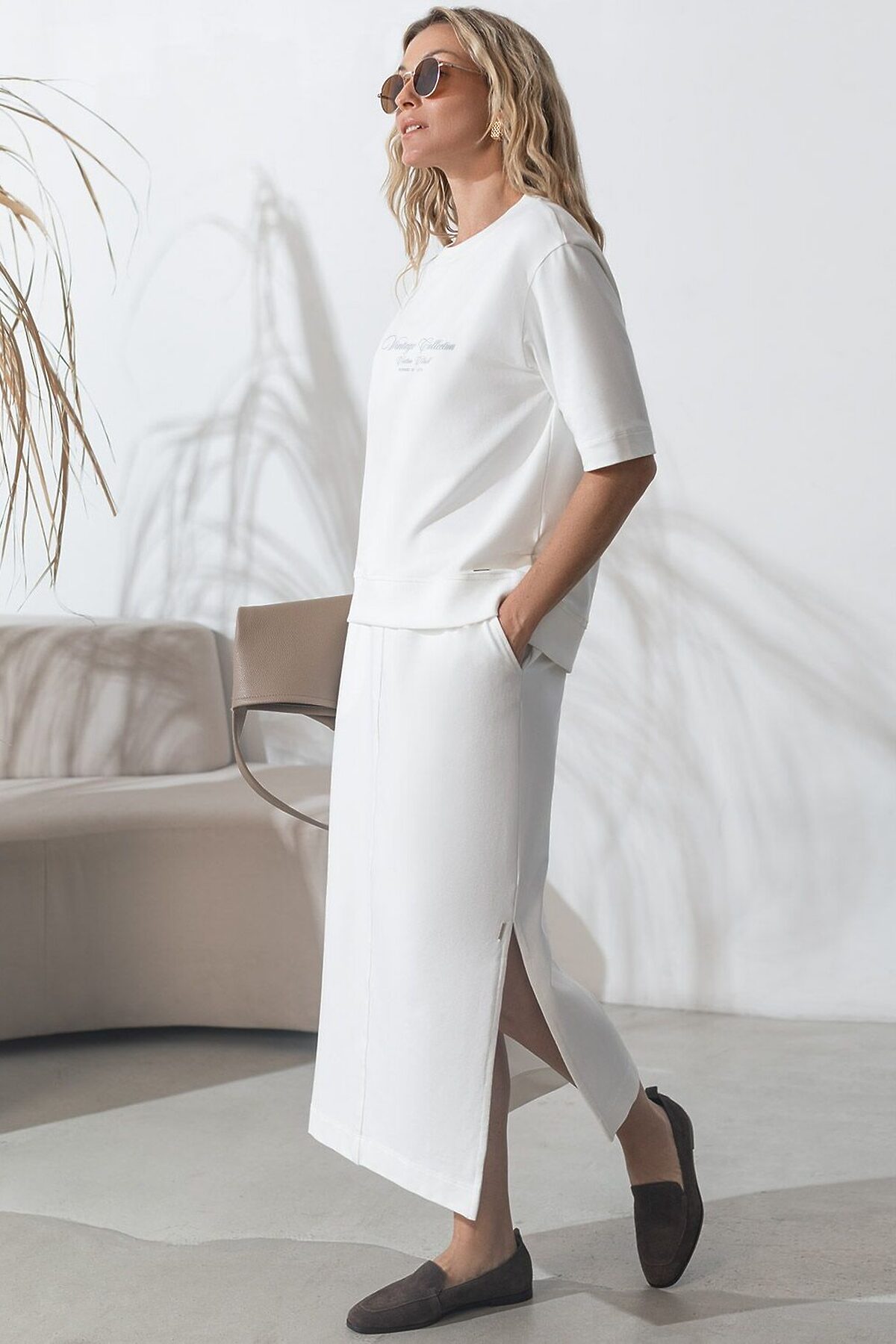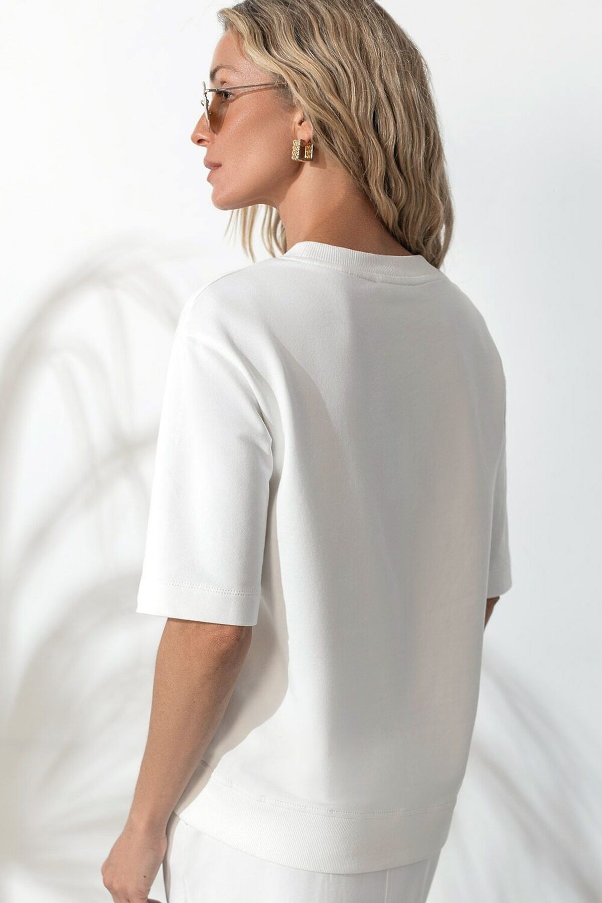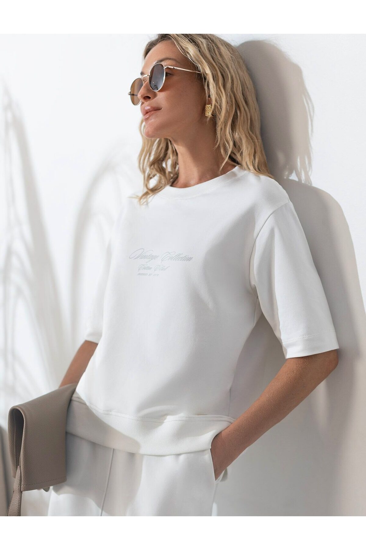 Футболка свободная с принтом из футера двухнитки с эластаном VILATTE, белый_vintage
