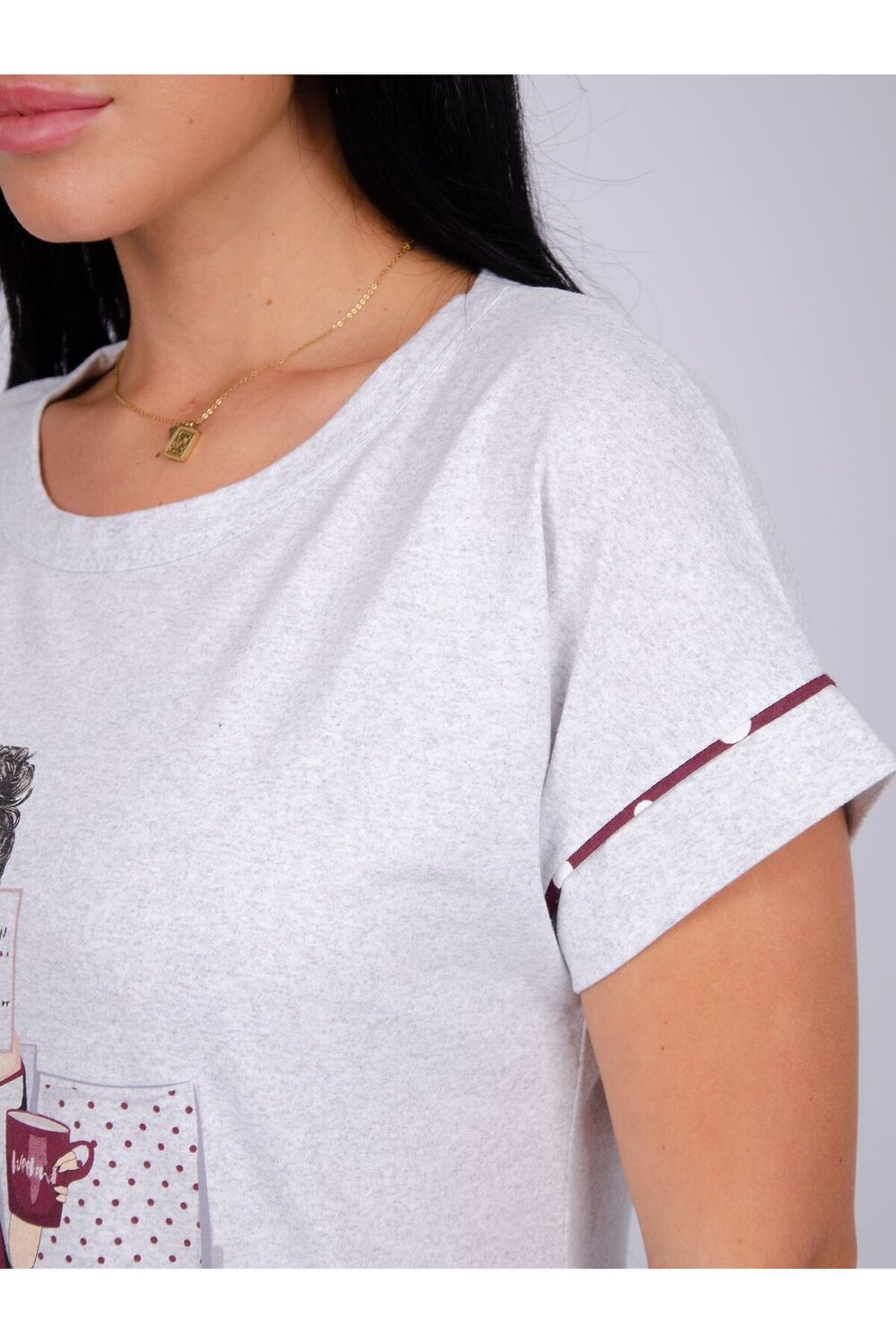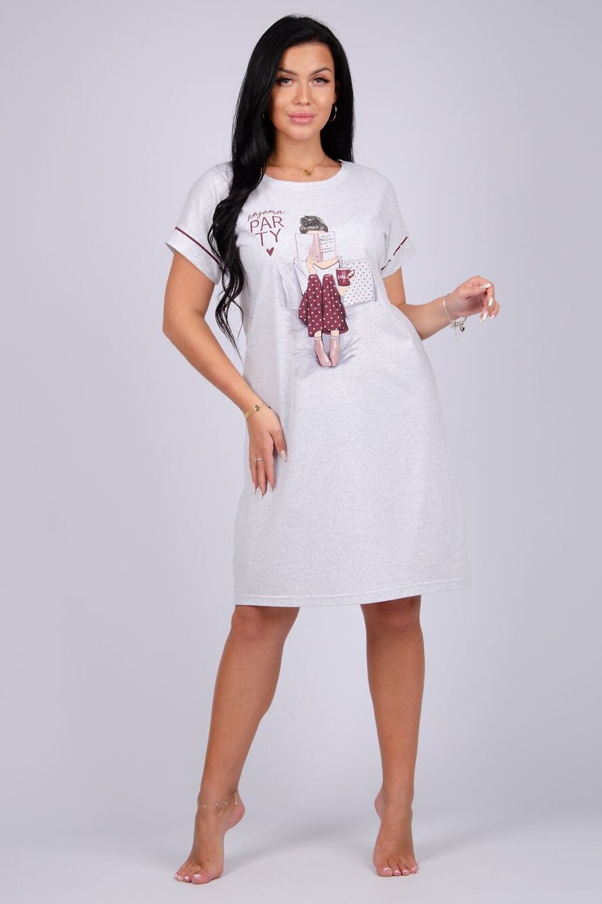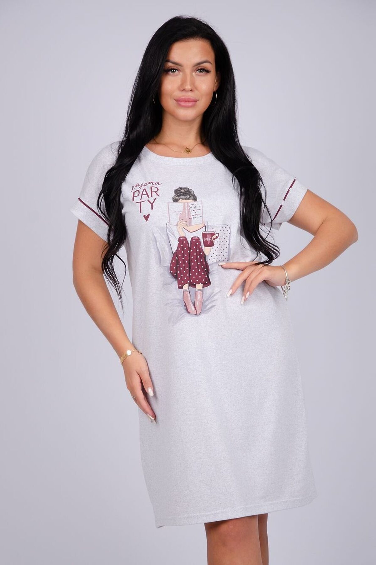Трикотажная сорочка средней длины максимально комфортна, благодаря свободному и простому крою. Спинка и перед цельные, прямые без вытачек и швов. Хлопковая базовая сорочка с коротким рукавом украшена принтом, гипоаллергенна, позволяет коже дышать во время сна, всесезонная подойдет для любого времени года.