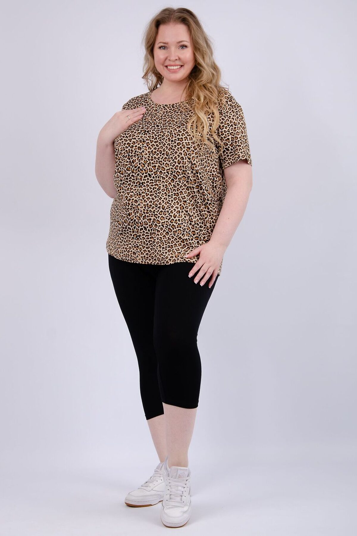 Легкий комплект из мягкой вискозы идеально подойдет для летних дней и активного отдыха. В набор входит стильная футболка и удобные бриджи, которые обеспечивают свободу движений во время тренировок, занятий йогой, танцев или фитнеса. Этот образ создает базовый гардероб для девушек и женщин, небольших и высоких, большой выбор размеров plus size.