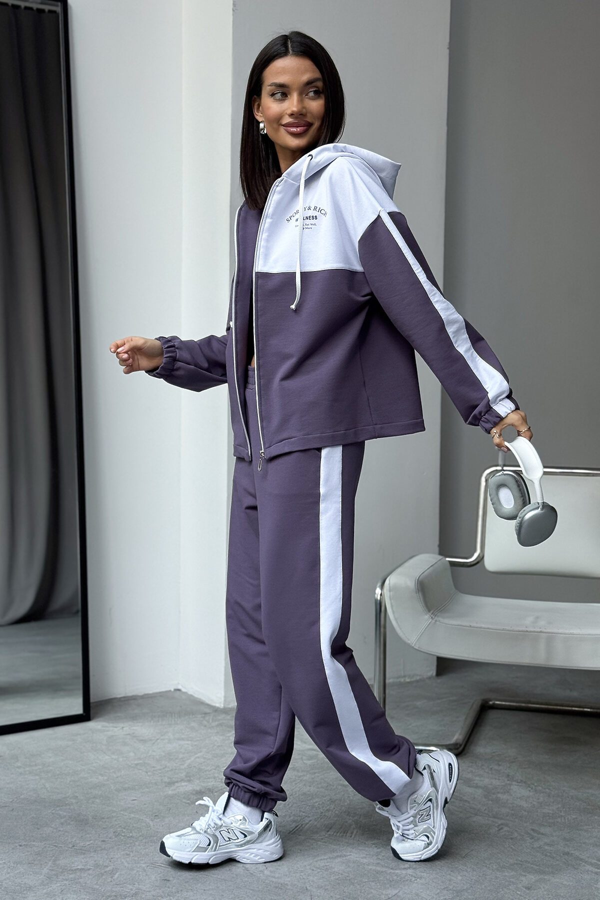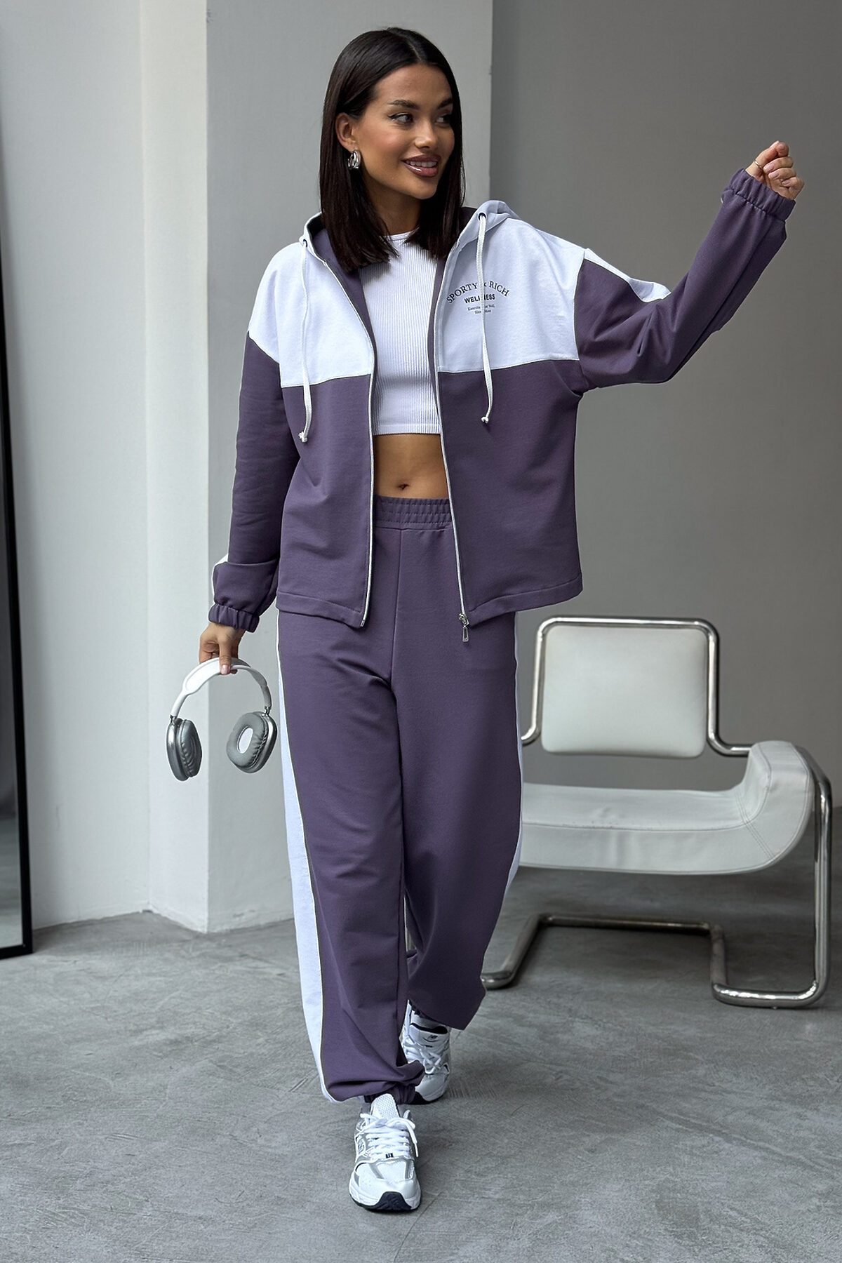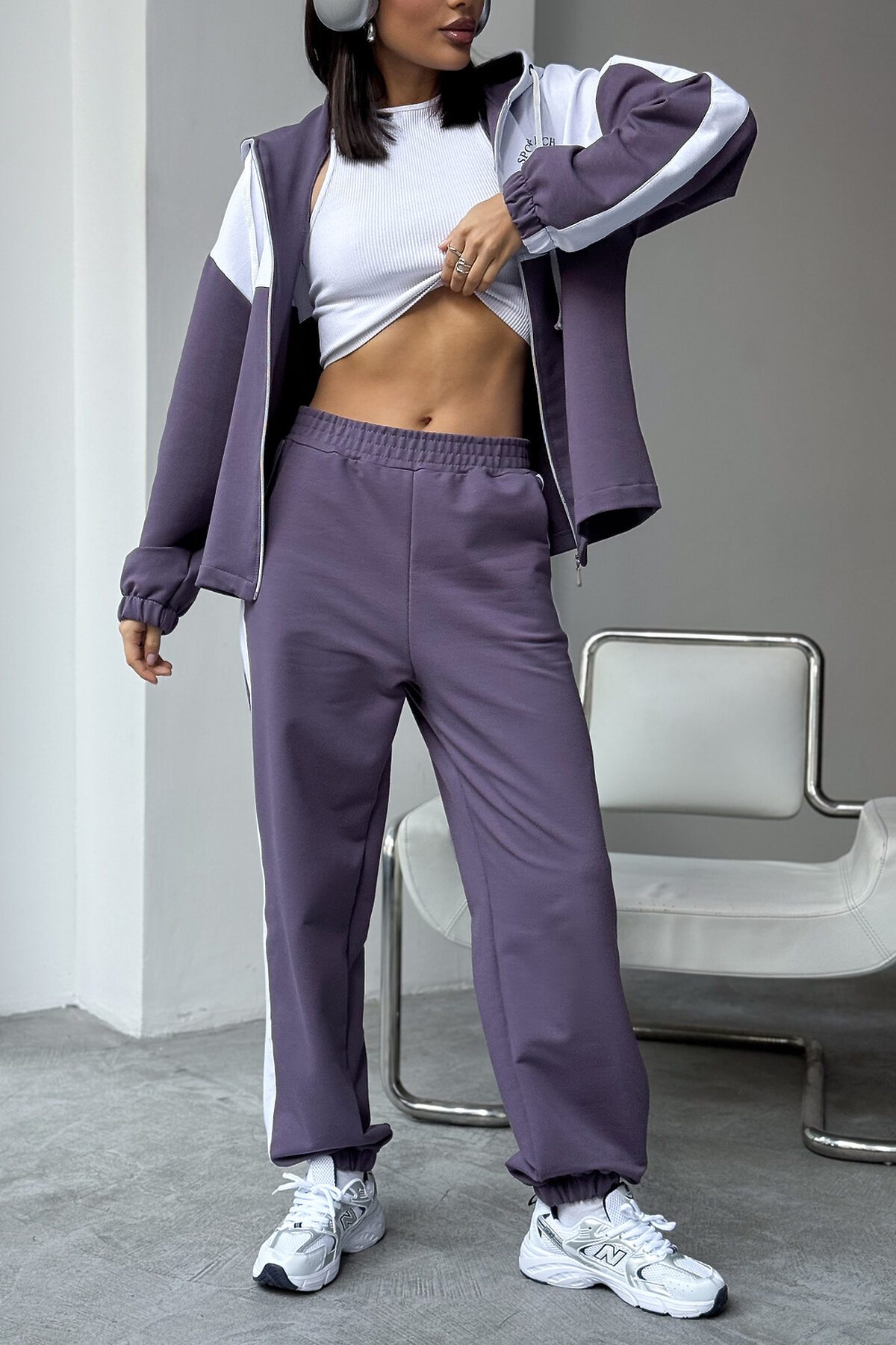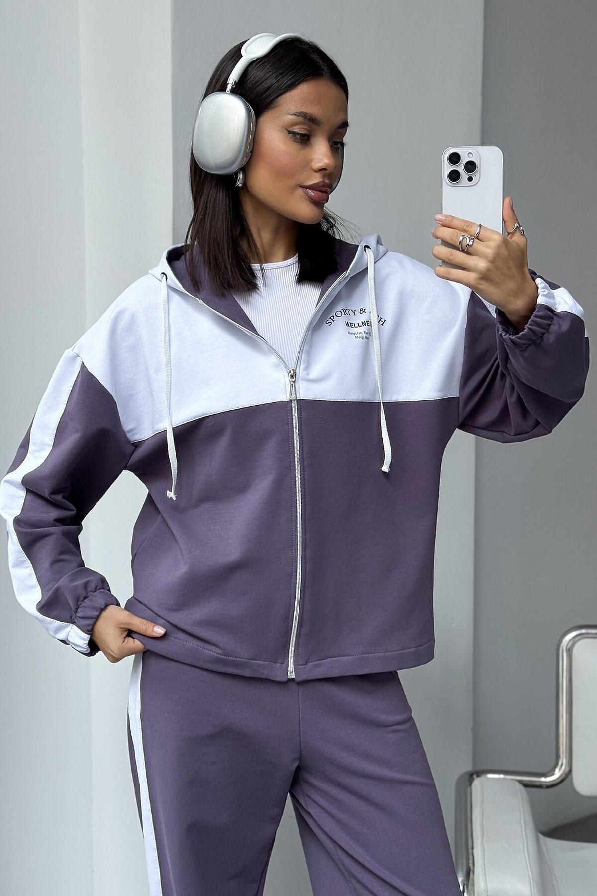 Женский спортивный костюм из трикотажа идеальный выбор для тренировок, активных прогулок, дома или спортзала. Двойка состоит из худи на молнии с капюшоном и практичными брюками. Изделие выполнено из мягкого хлопка, что обеспечивает легкий и комфортный уход за вещью и удобство на каждый день.