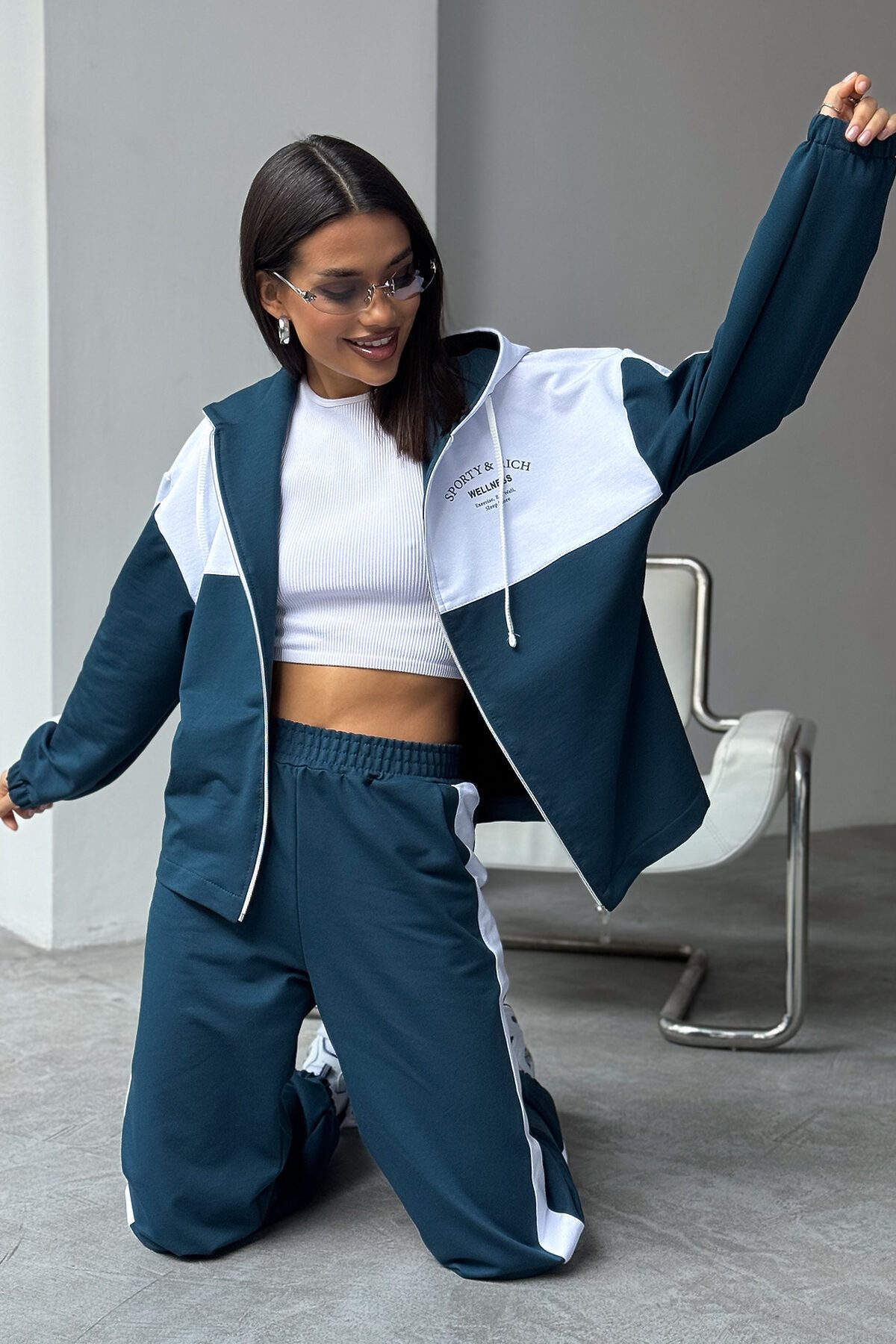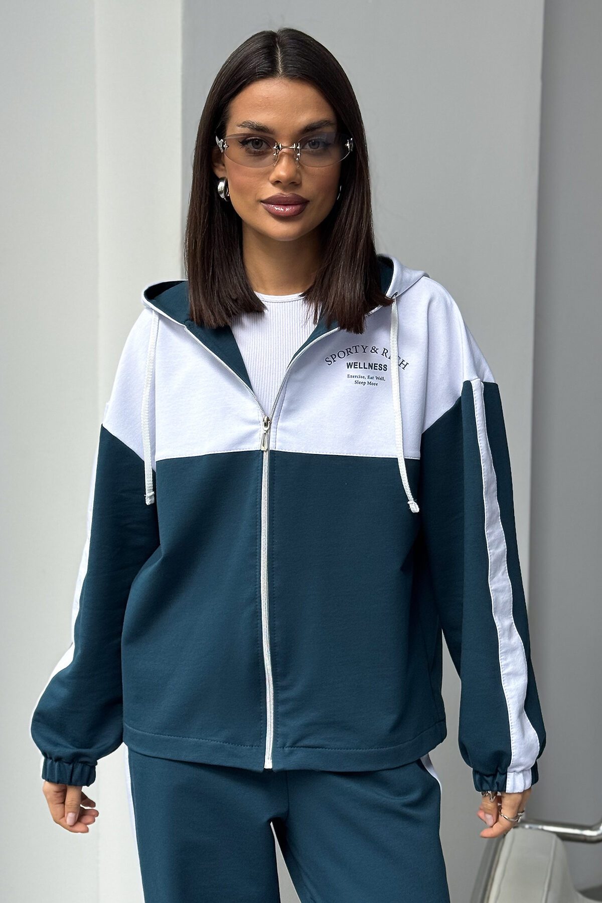 Женский спортивный костюм из трикотажа идеальный выбор для тренировок, активных прогулок, дома или спортзала. Двойка состоит из худи на молнии с капюшоном и практичными брюками. Изделие выполнено из мягкого хлопка, что обеспечивает легкий и комфортный уход за вещью и удобство на каждый день.