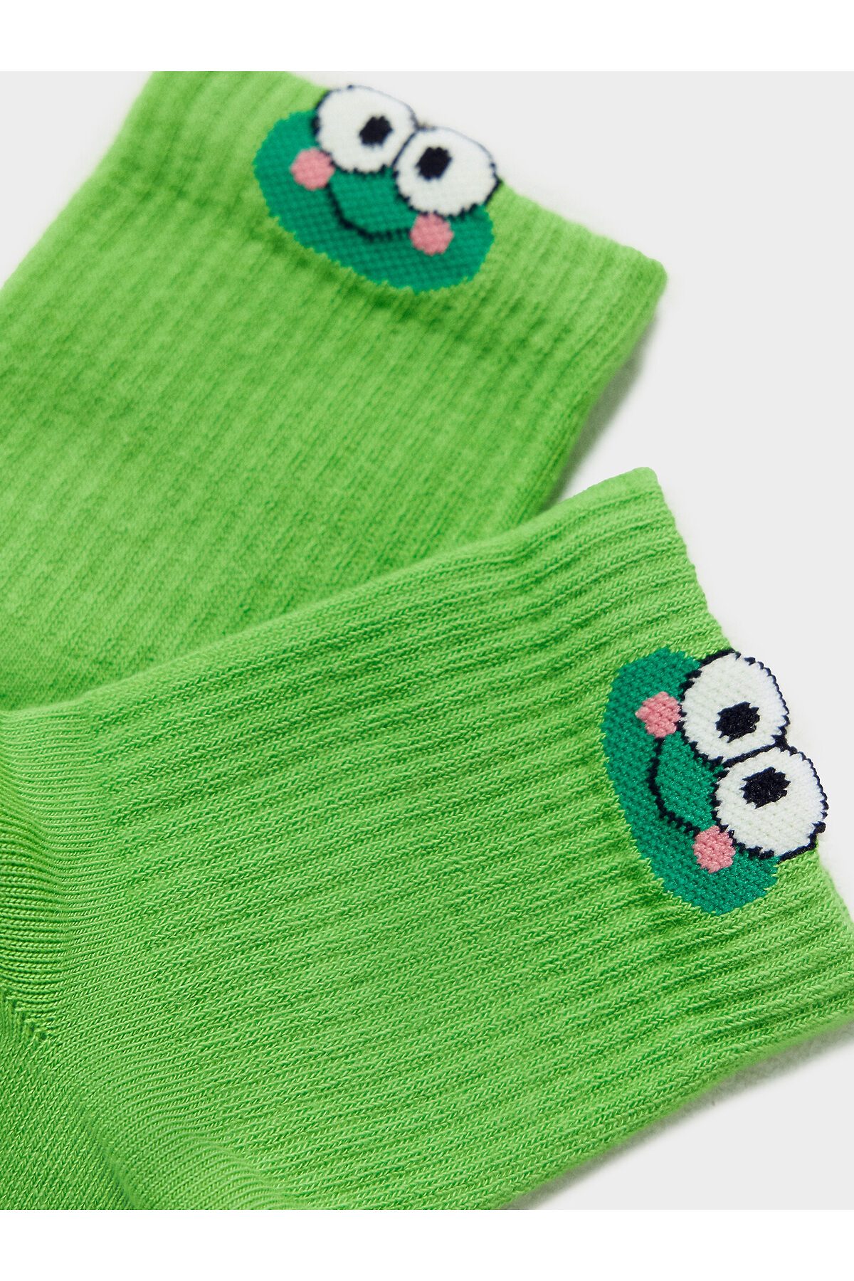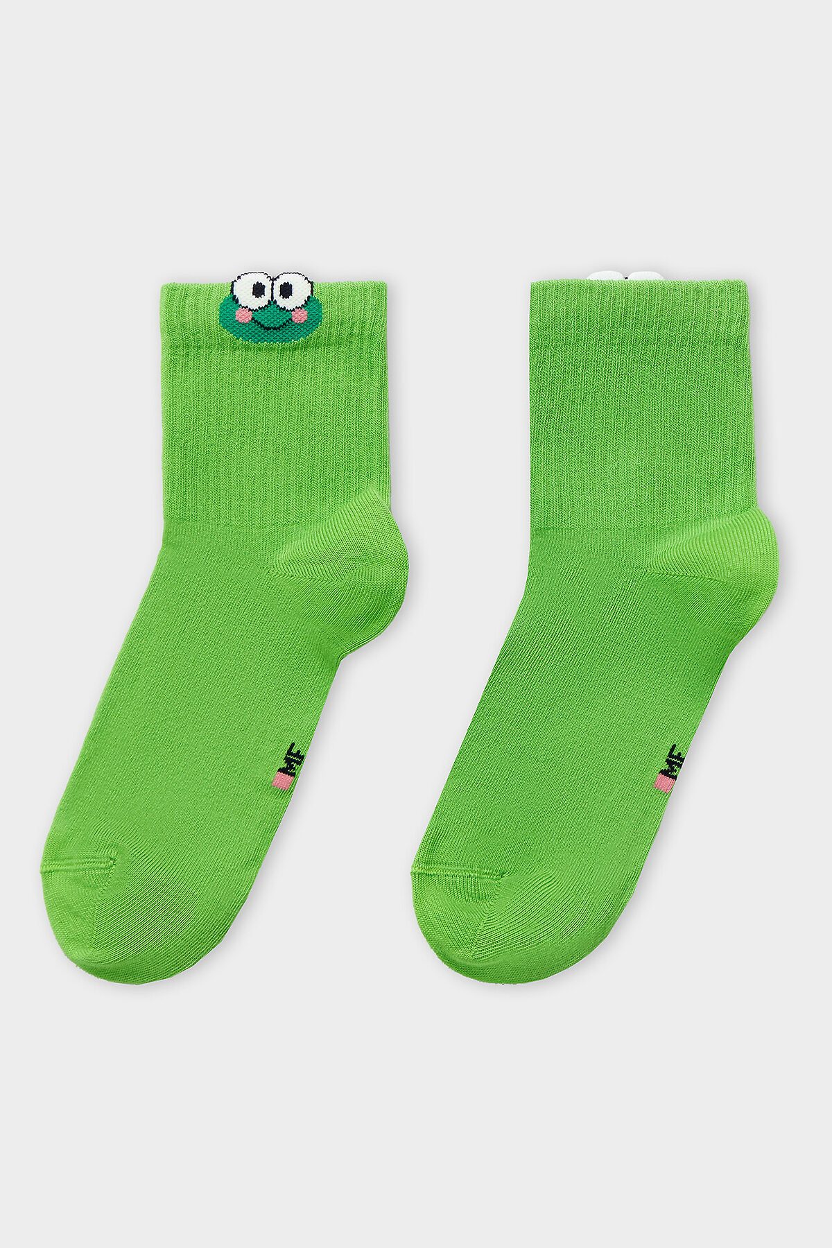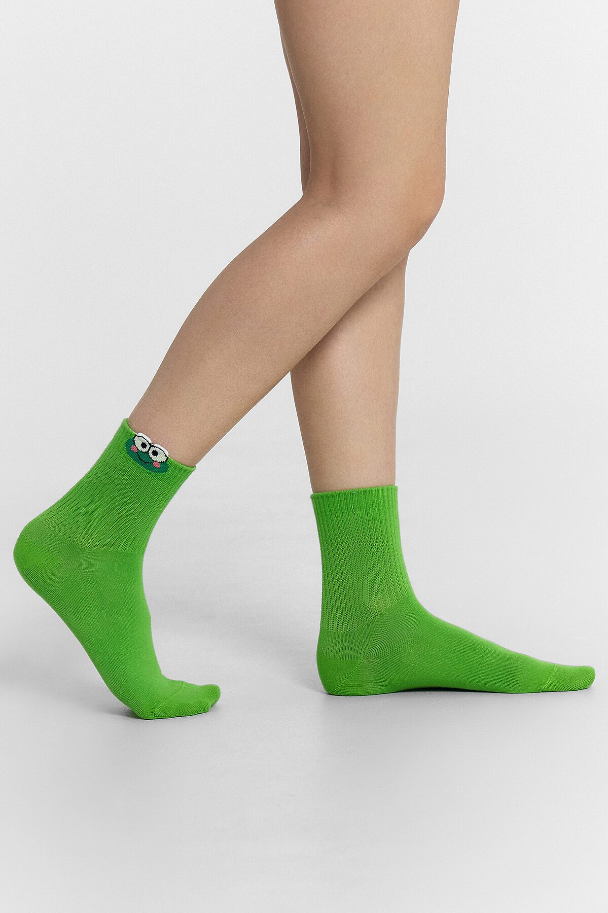 рис.2760 Женские носки средней высоты, с плотным бортом с рисунком в виде лягушки с элементами пикота на бортике.