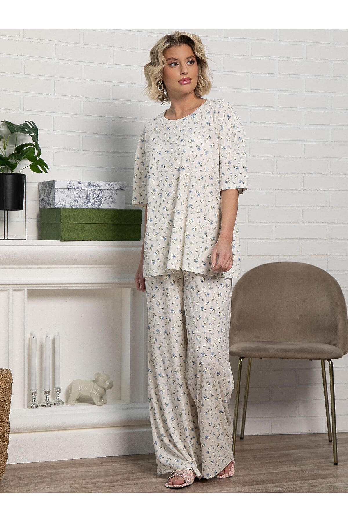 Костюм домашний с брюками Мона LADY TAIGA, бежево-голубой