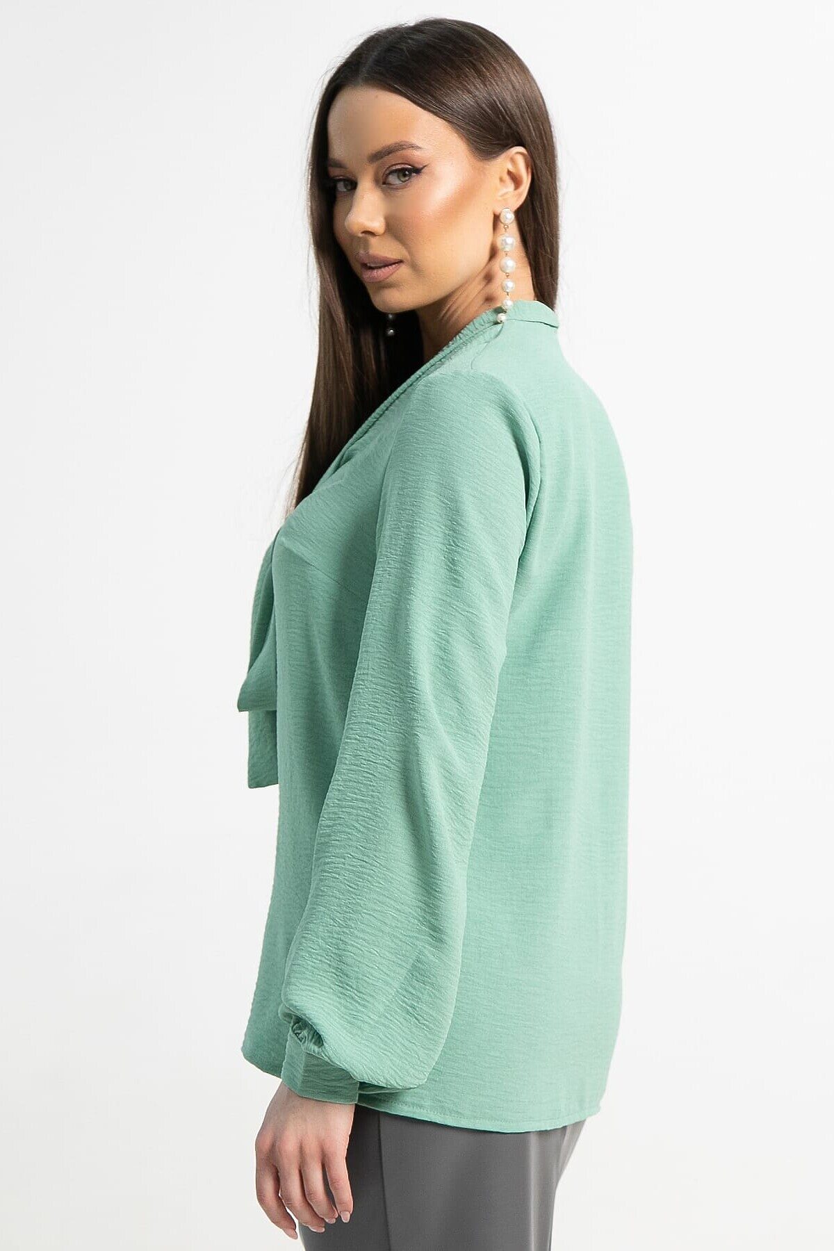 Рубашка с бантом Рузанна LADY TAIGA, зеленая