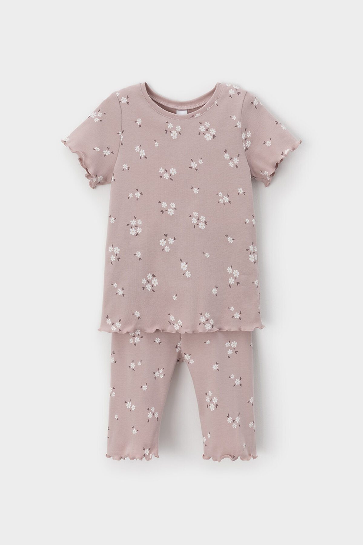 Трикотажная пижама в рубчик из натурального хлопка. Футболка с короткими втачными рукавами и шорты с эластичной резинкой в поясе. Оригинальная набивка выполнена из стойких текстильных гипоаллергенных красителей. Изделие сохраняет цвет и форму после многократных стирок. Все трикотажные полотна производятся в соответсвии с нормами швейцарского сертификата ЭкоТекс.