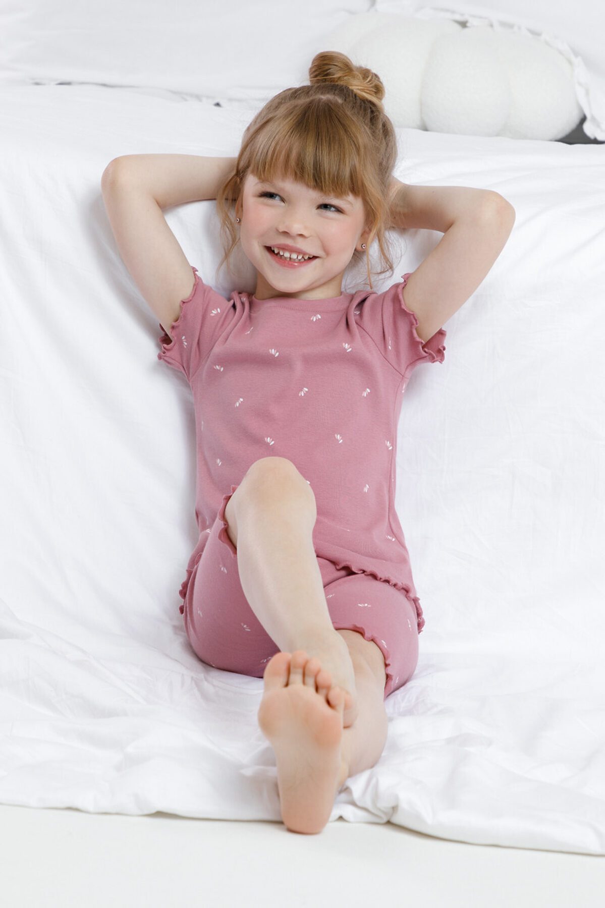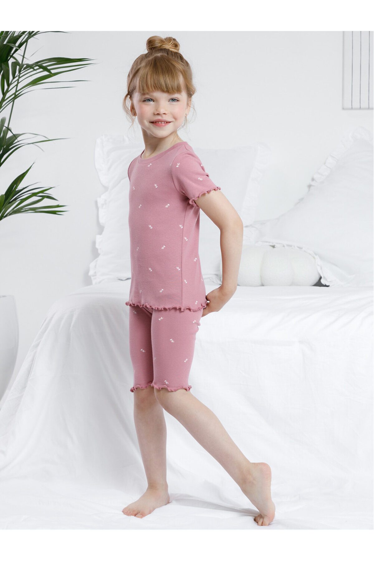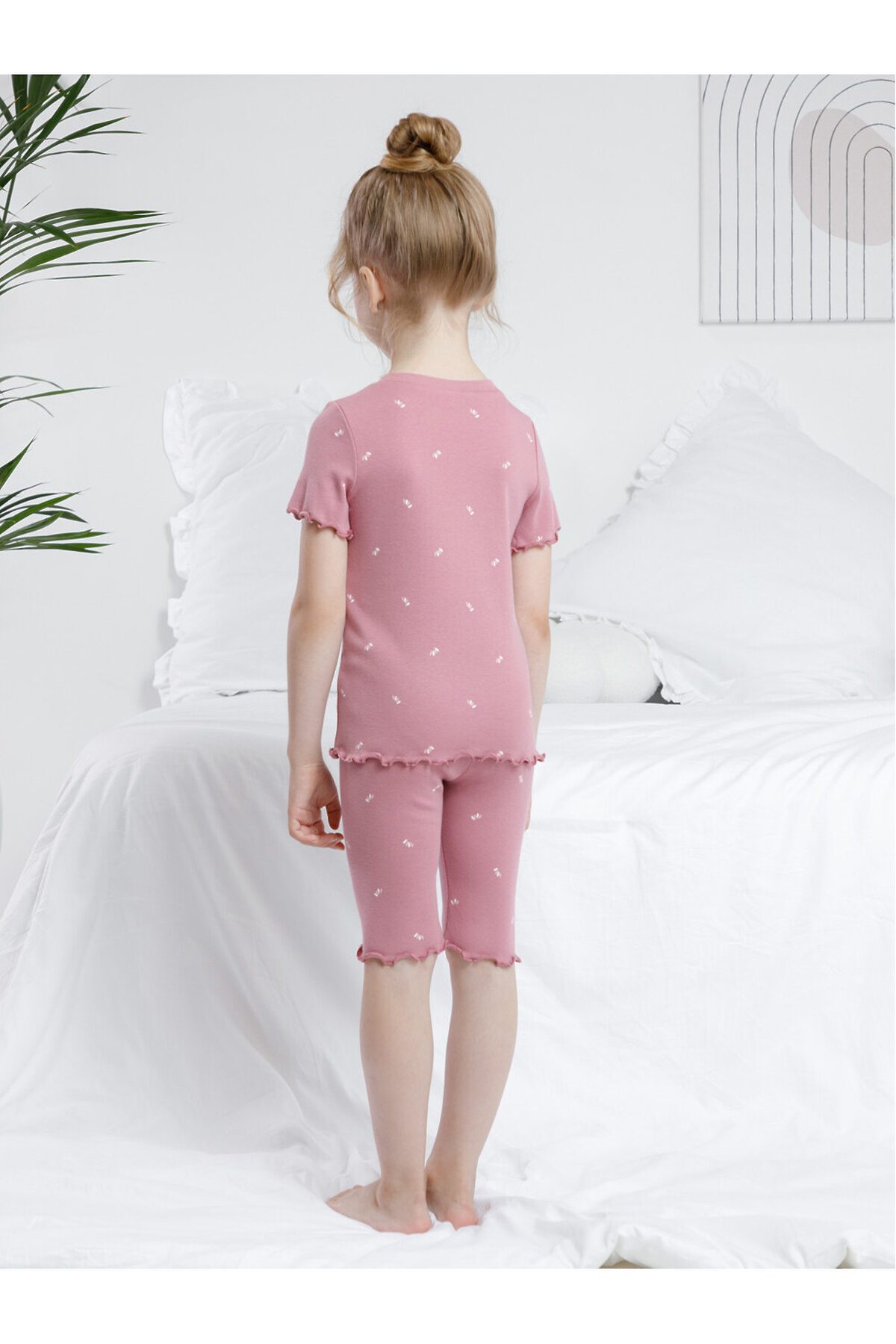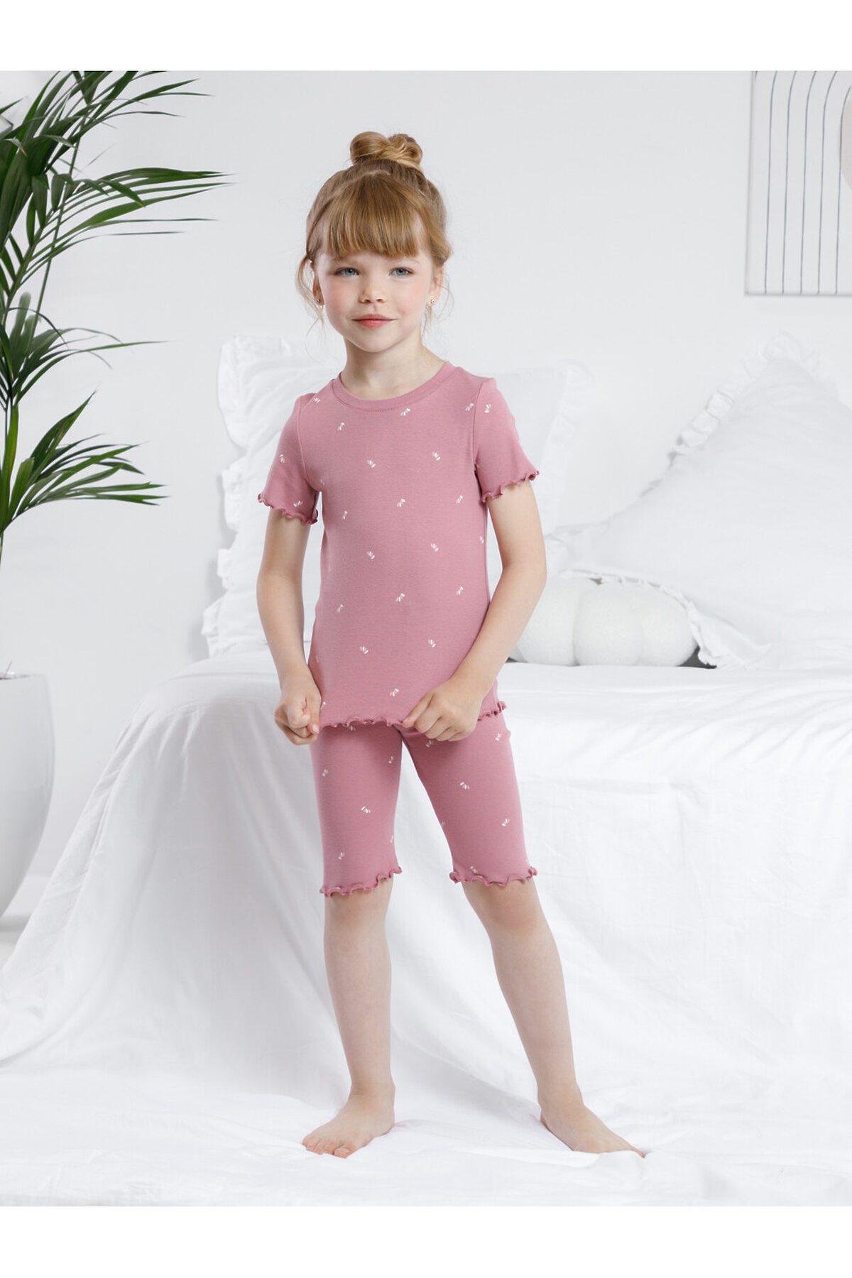 Трикотажная пижама в рубчик из натурального хлопка. Футболка с короткими втачными рукавами и шорты с эластичной резинкой в поясе. Оригинальная набивка выполнена из стойких текстильных гипоаллергенных красителей. Изделие сохраняет цвет и форму после многократных стирок. Все трикотажные полотна производятся в соответсвии с нормами швейцарского сертификата ЭкоТекс.