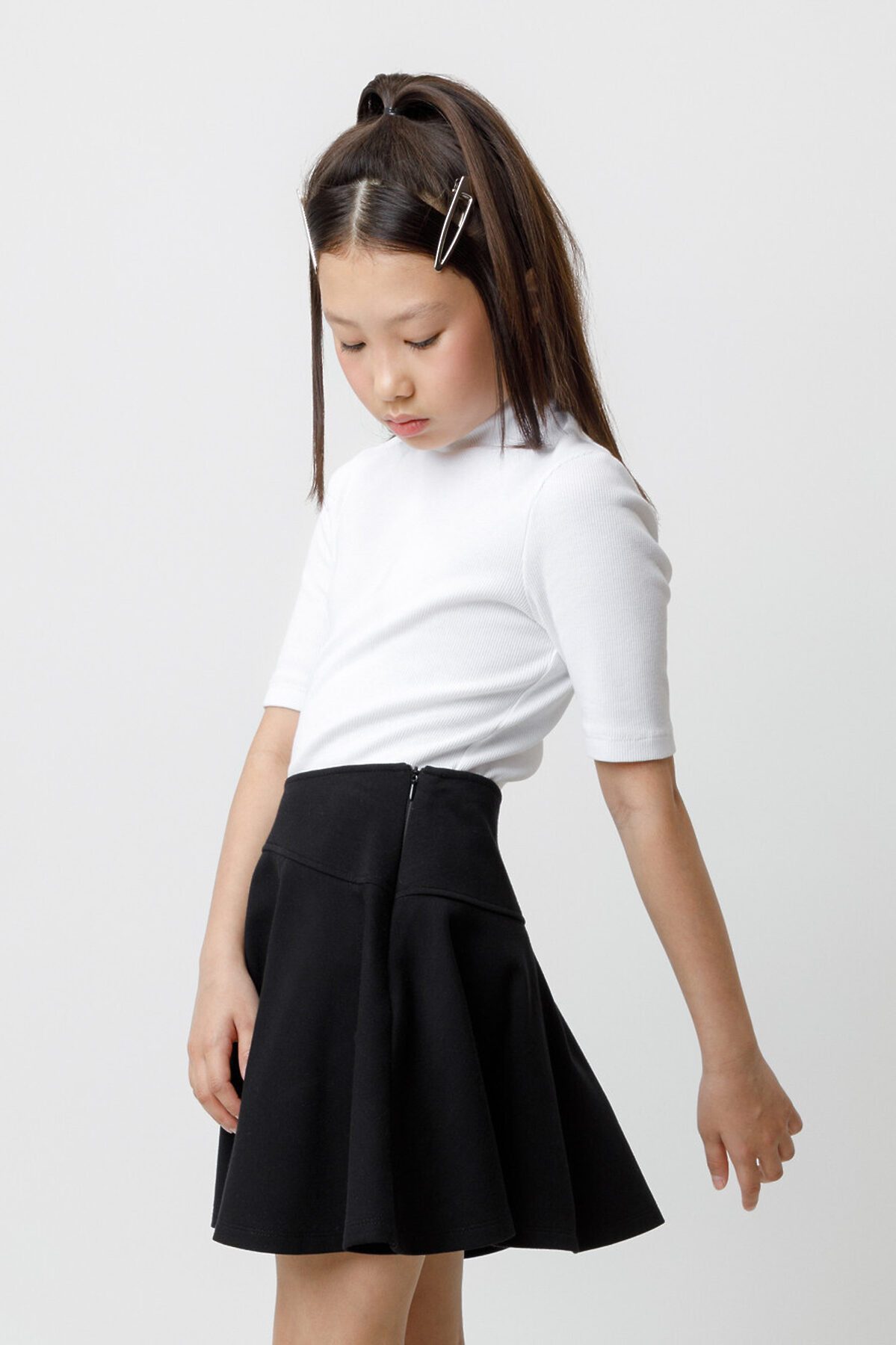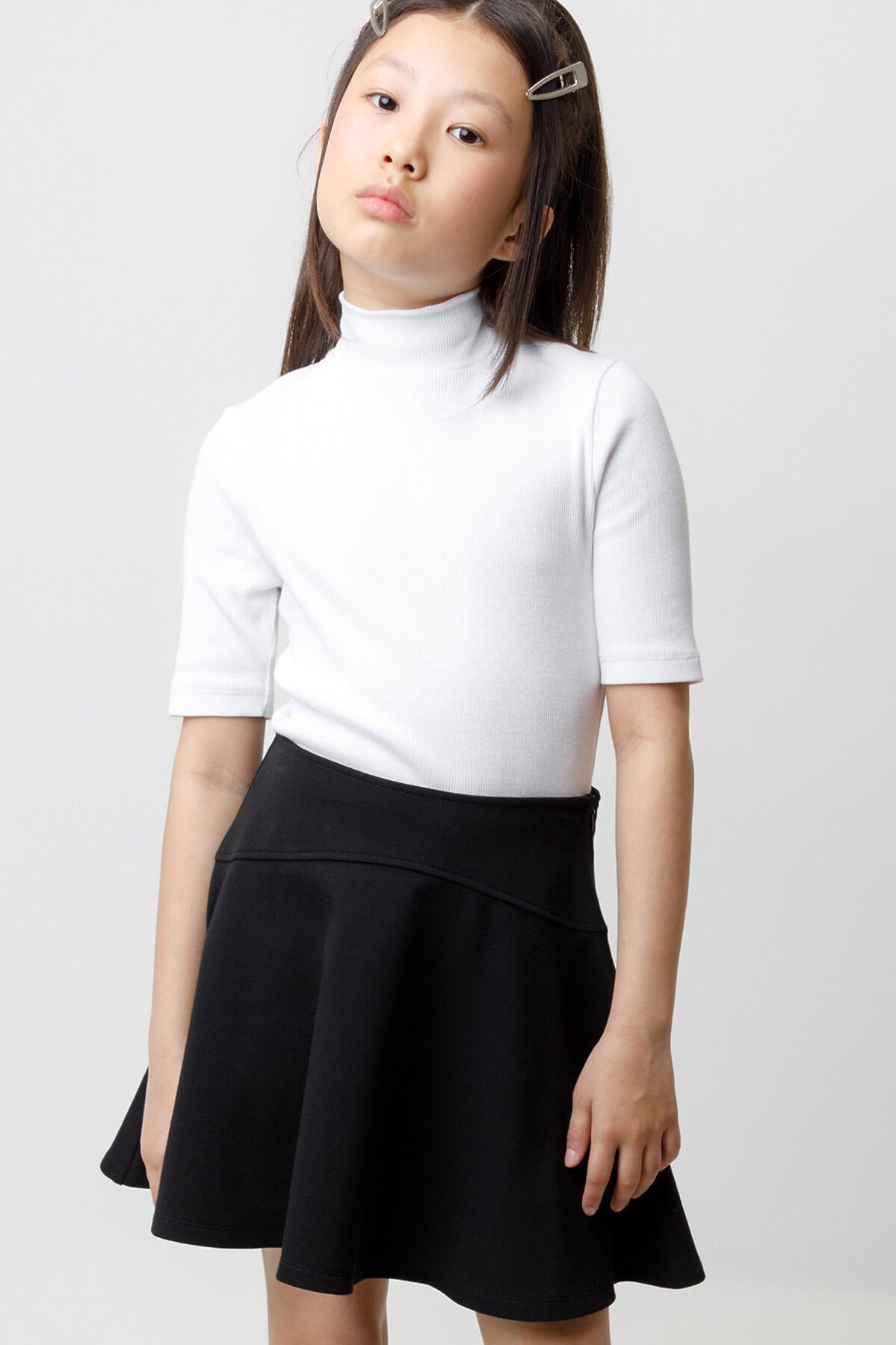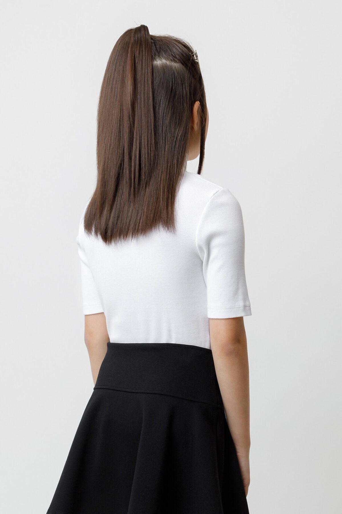 Водолазка для девочки с коротким рукавом и воротником-стойкой в рубчик. Мягкий материал изделия приятен к телу и хорошо тянется. Все трикотажные изделия производятся в соответствии с нормами швейцарского сертификата ЭкоТекс.