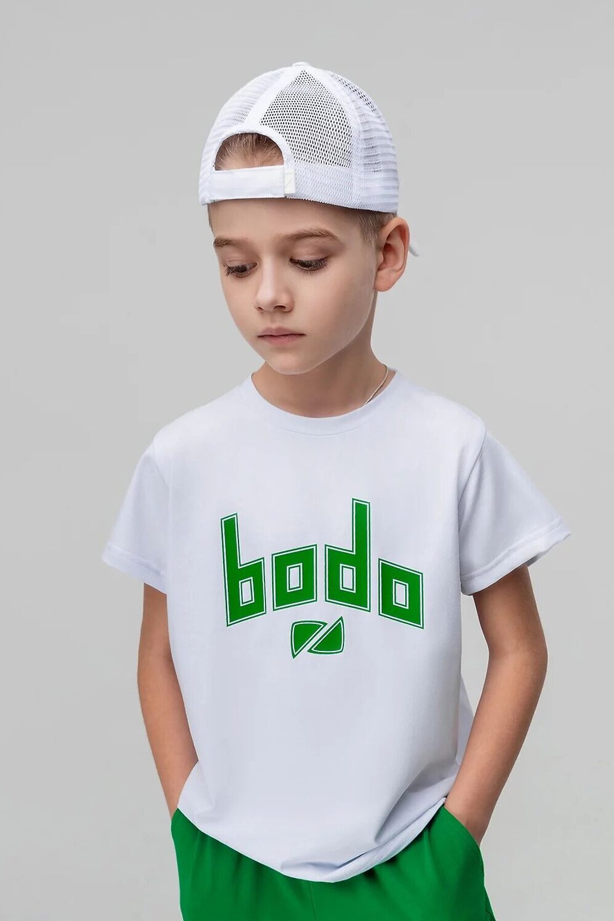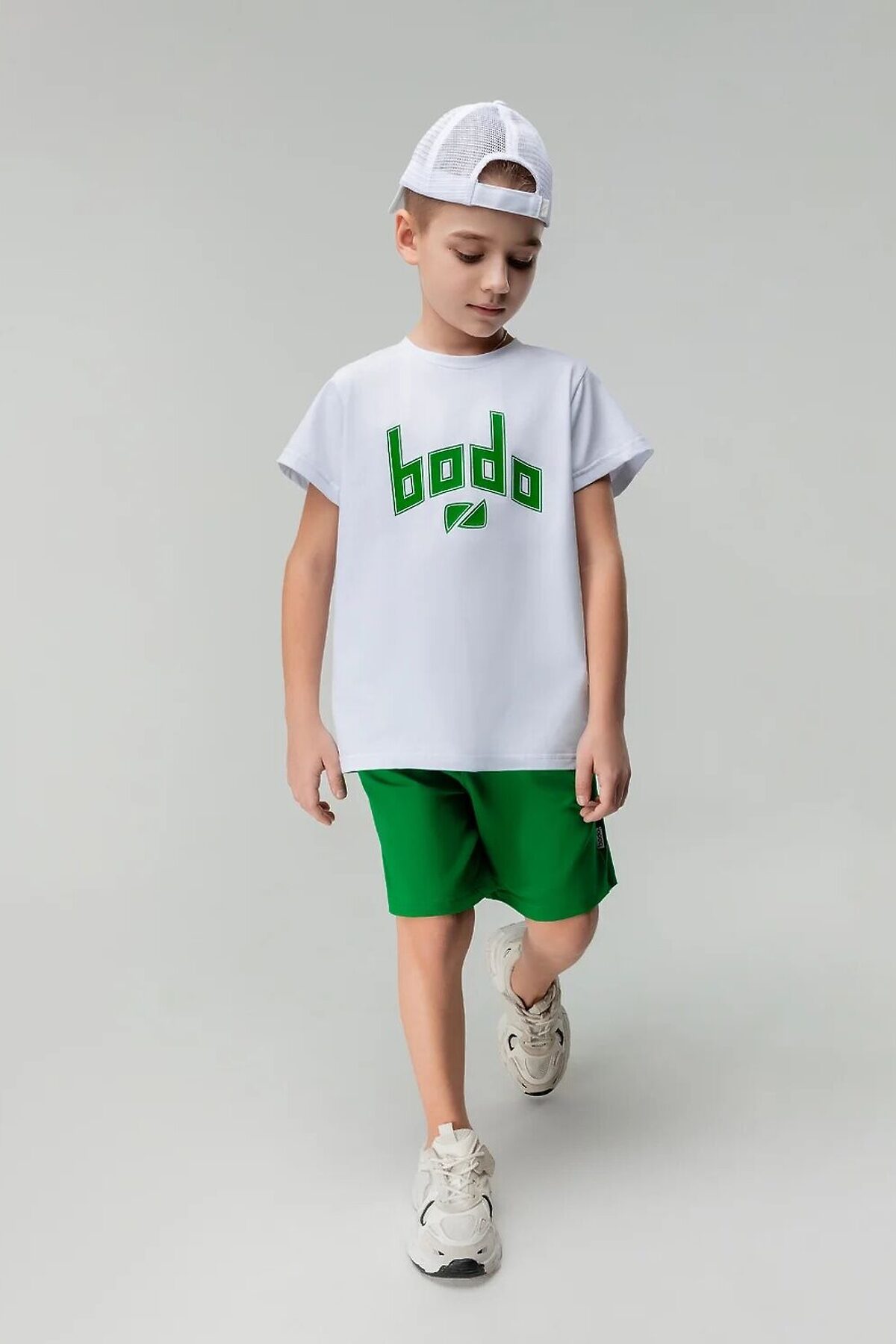 Комплект (Футболка+Шорты) BODO-S, белый (зеленый)