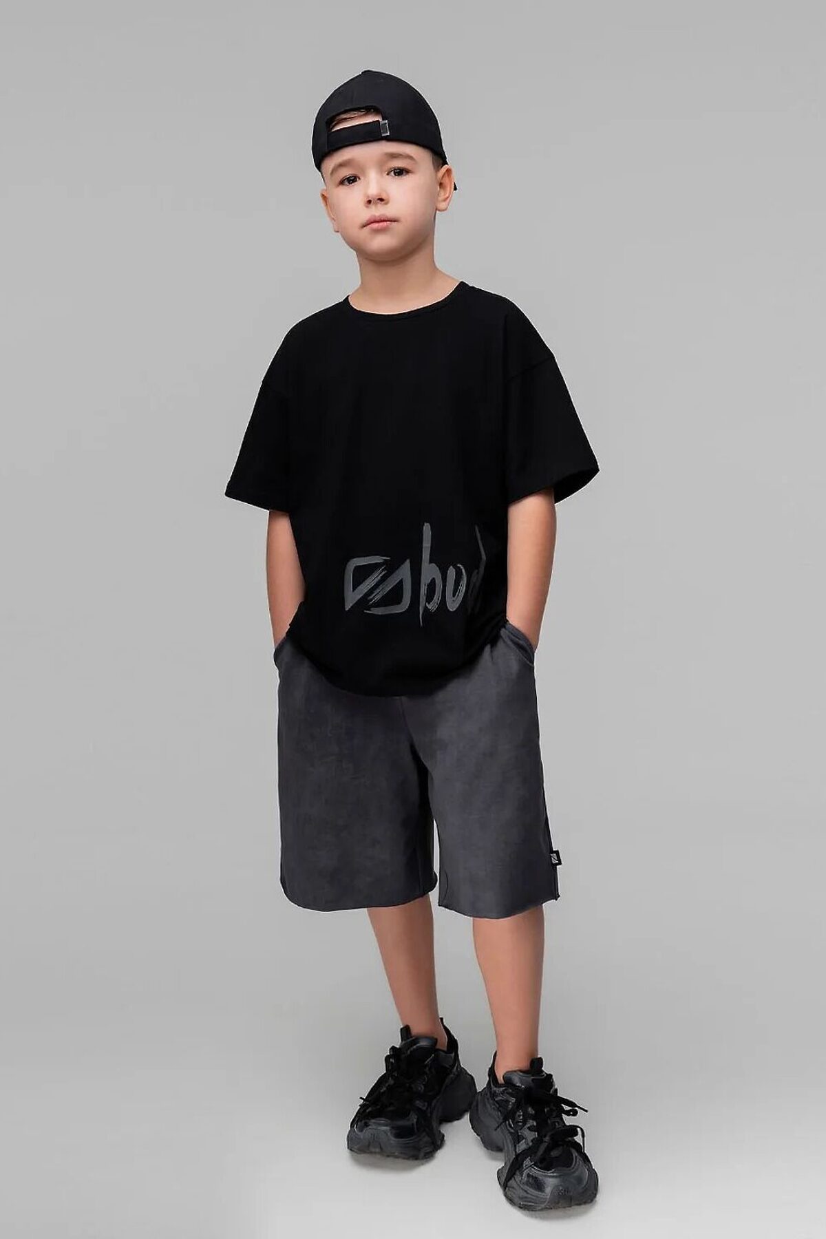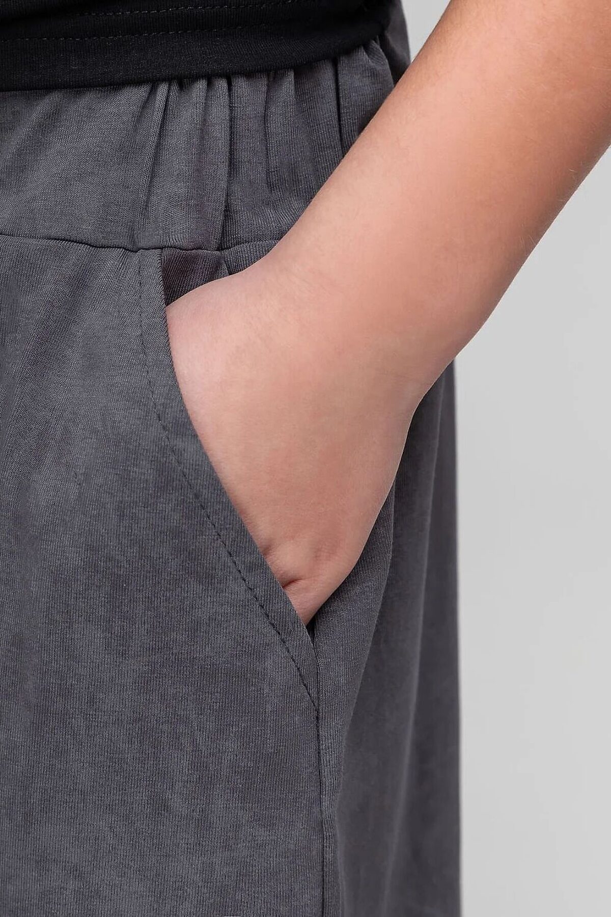 Шорты прямые, свободные на поясе с внутренней резинкой, с боковыми карманами. Шорты по низу изделия с необработанным краем.