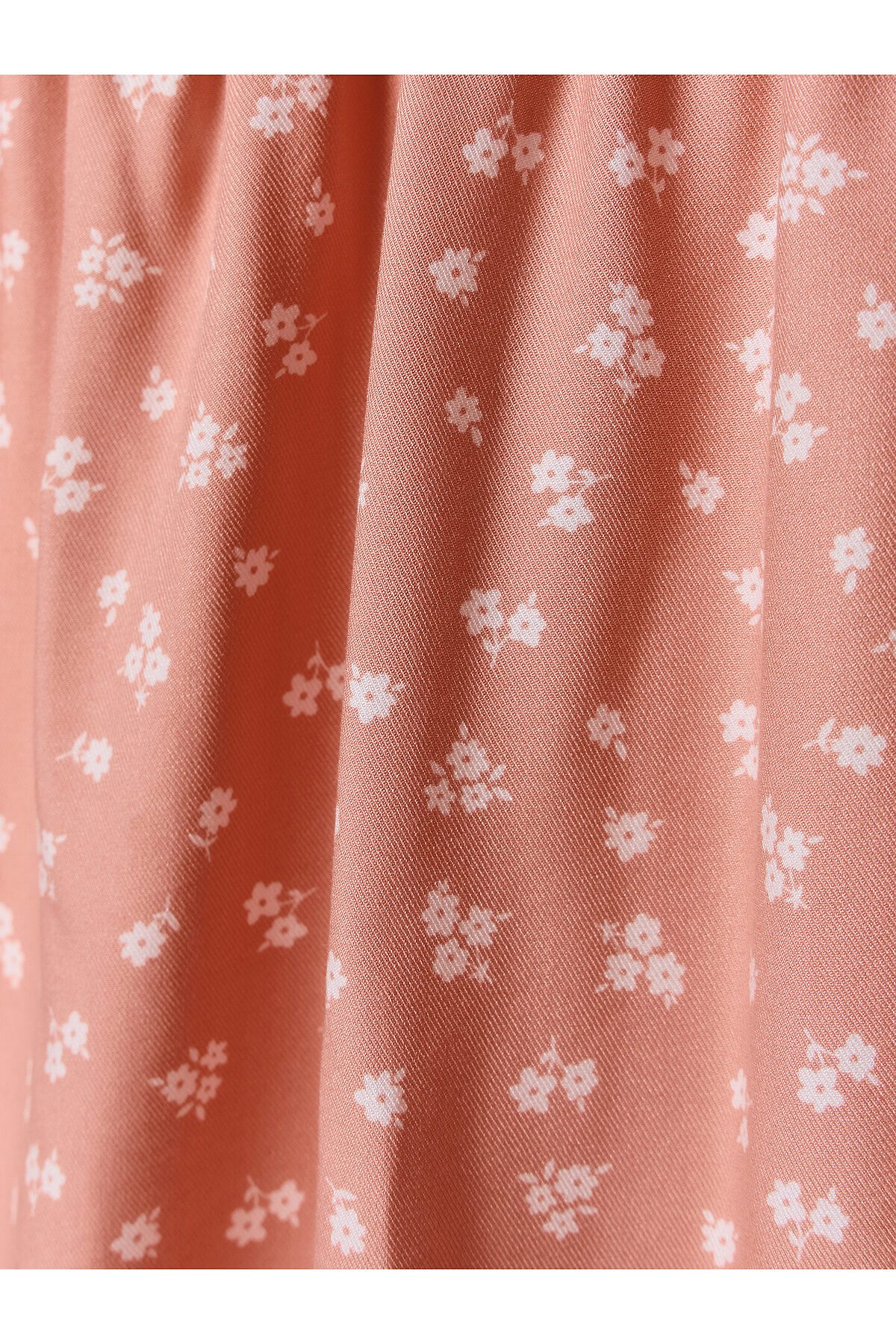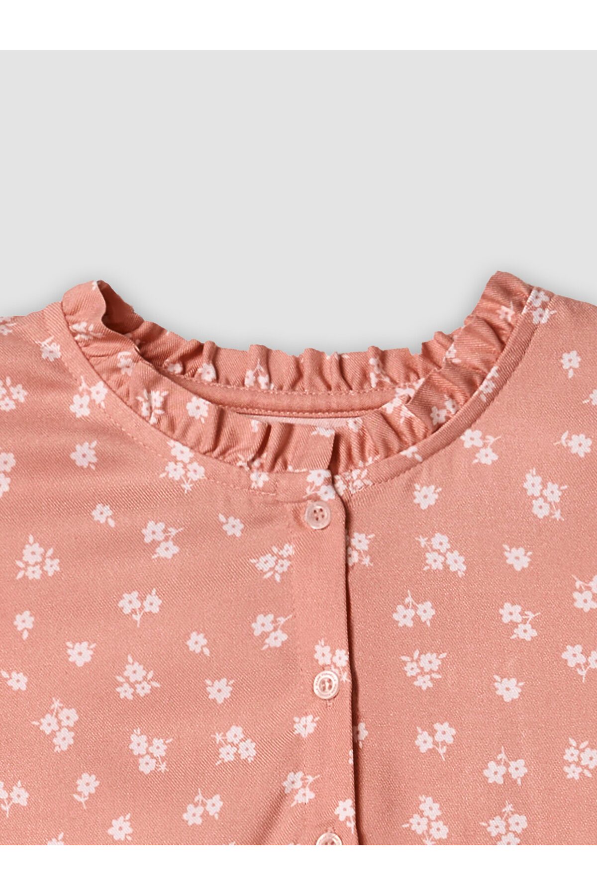 Платье прямого с отрезной юбкой по талии . По переду застежка - планка на 4 пуговицы. Горловина круглая обработана бейкой в чистый край, с рюшей. Рукав длинный втачной, с «крылышками» по пройме . По низу рукавов внутрь застрочена эластичная тесьма 10RV. Низ в подгибку.