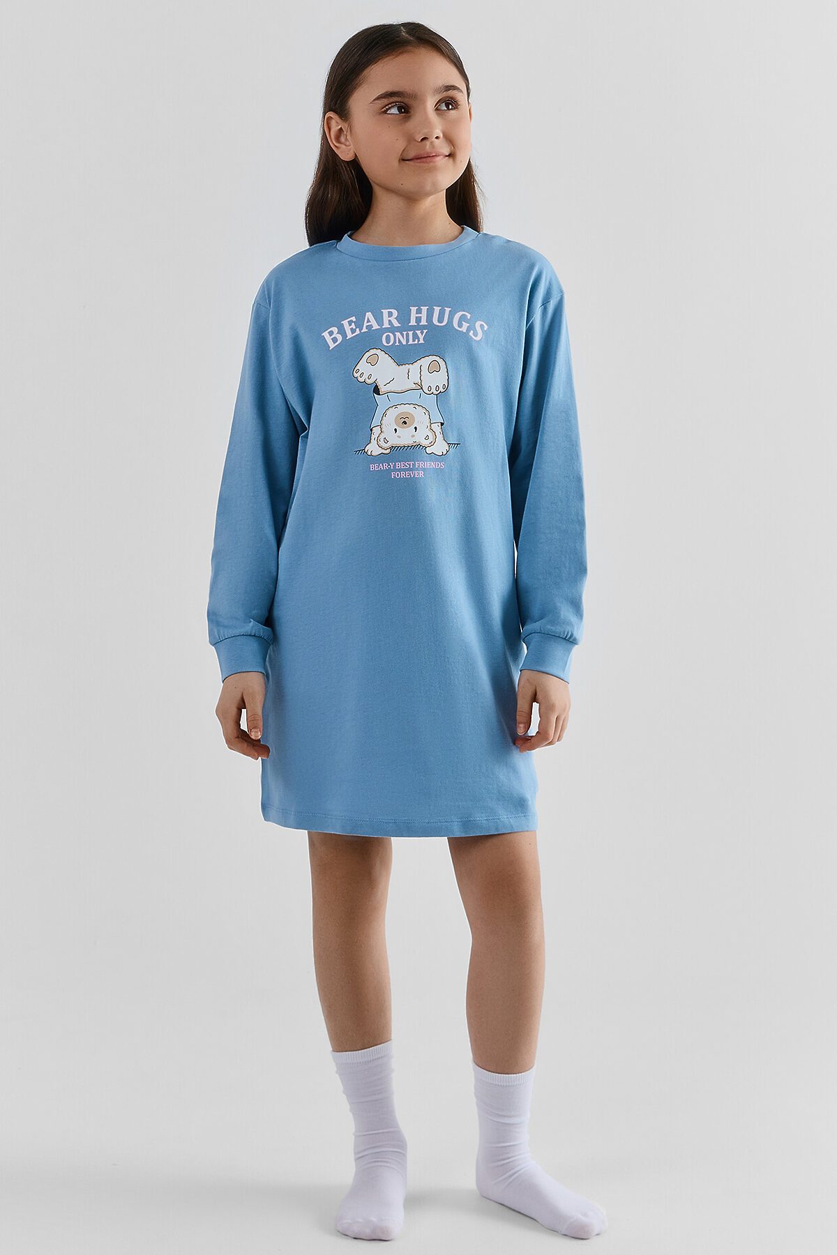 Сорочка ночная для девочек MARK FORMELLE, сине -голубой +печать