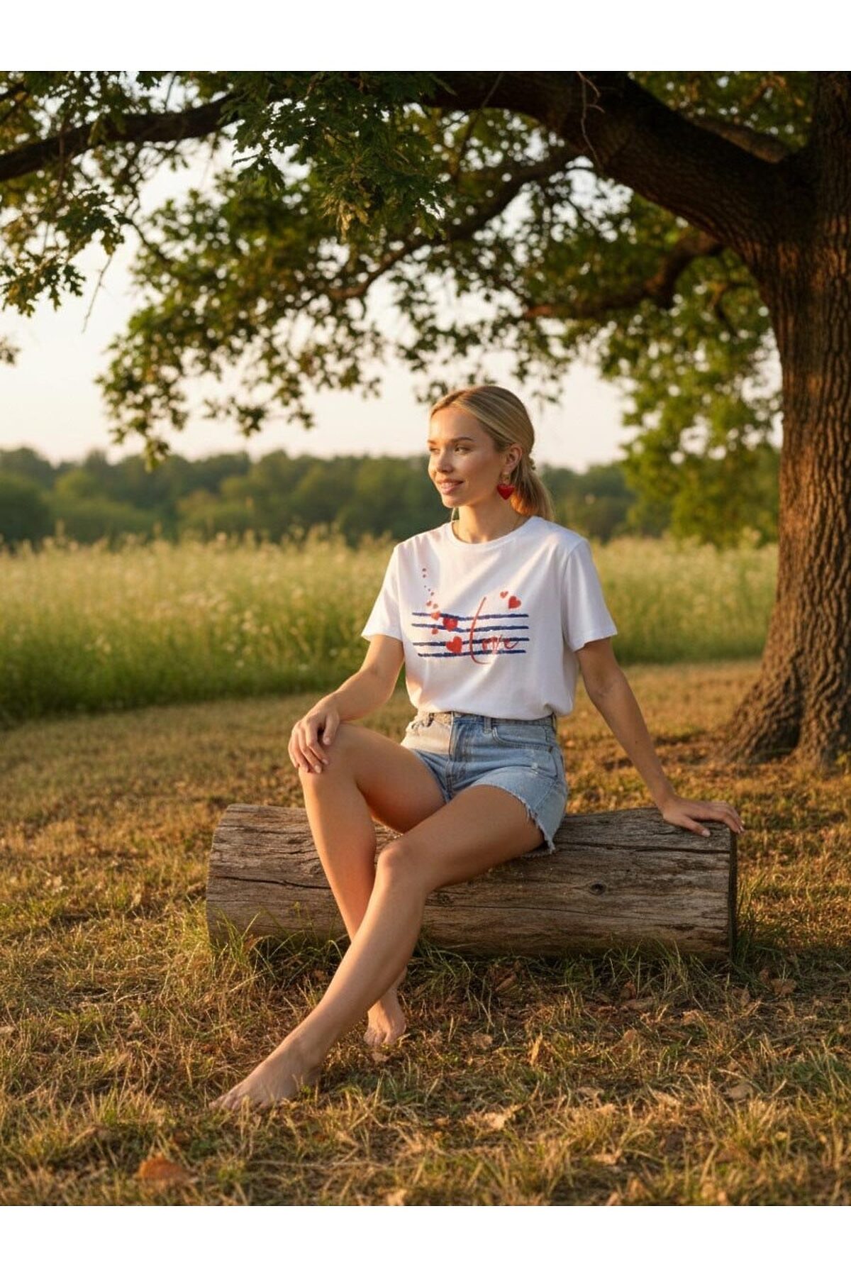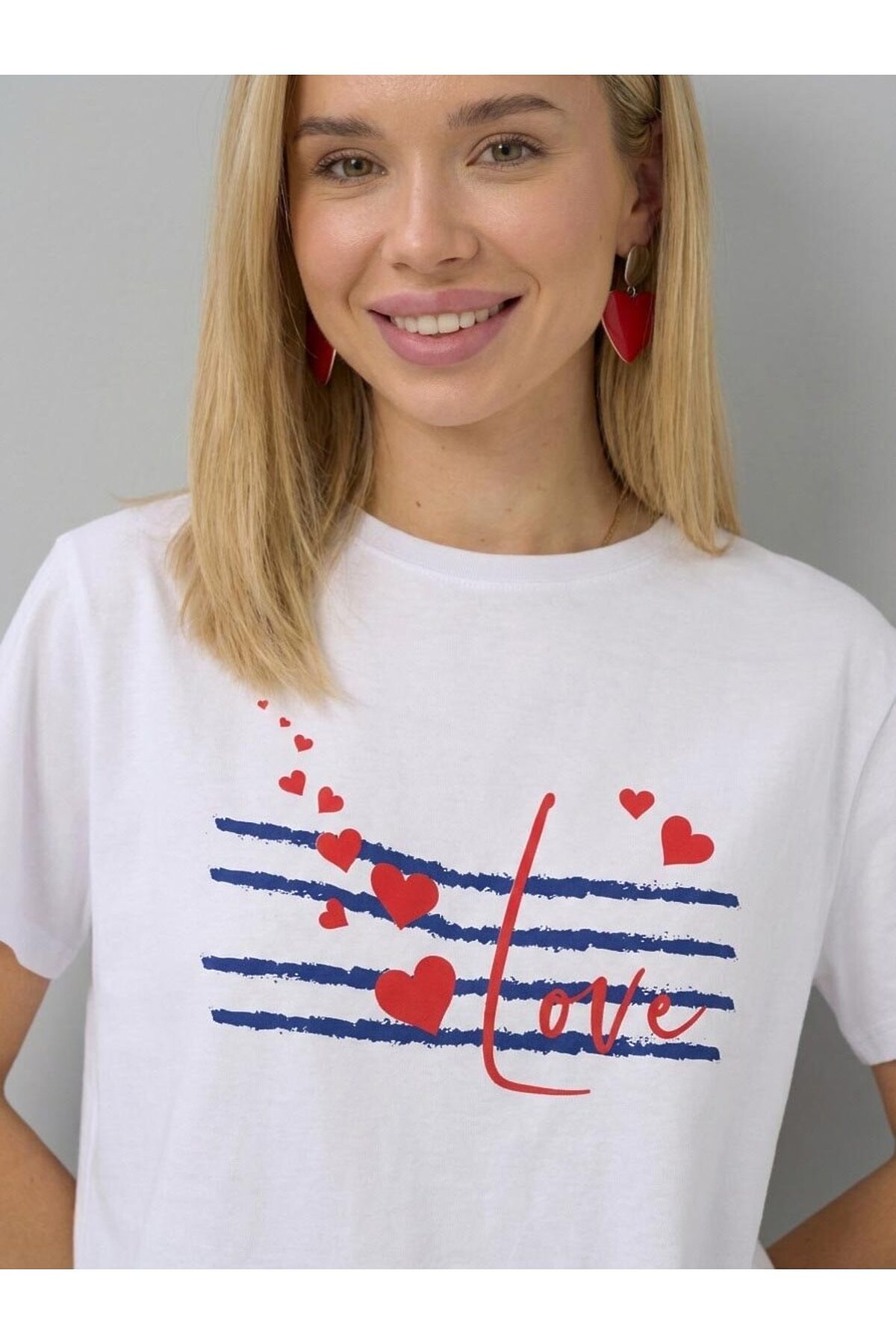 Женская футболка F5, Comfort fit (свободный силуэт), круглый вырез горловины, короткий рукав. Выполнена из классического трикотажного полотна.
