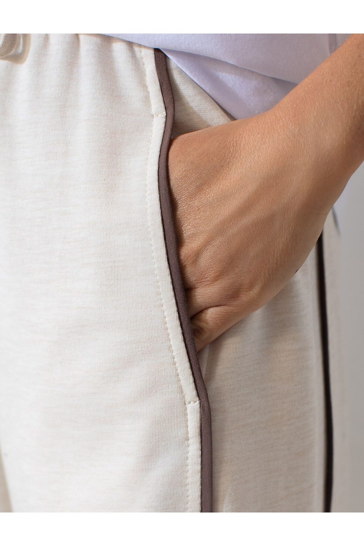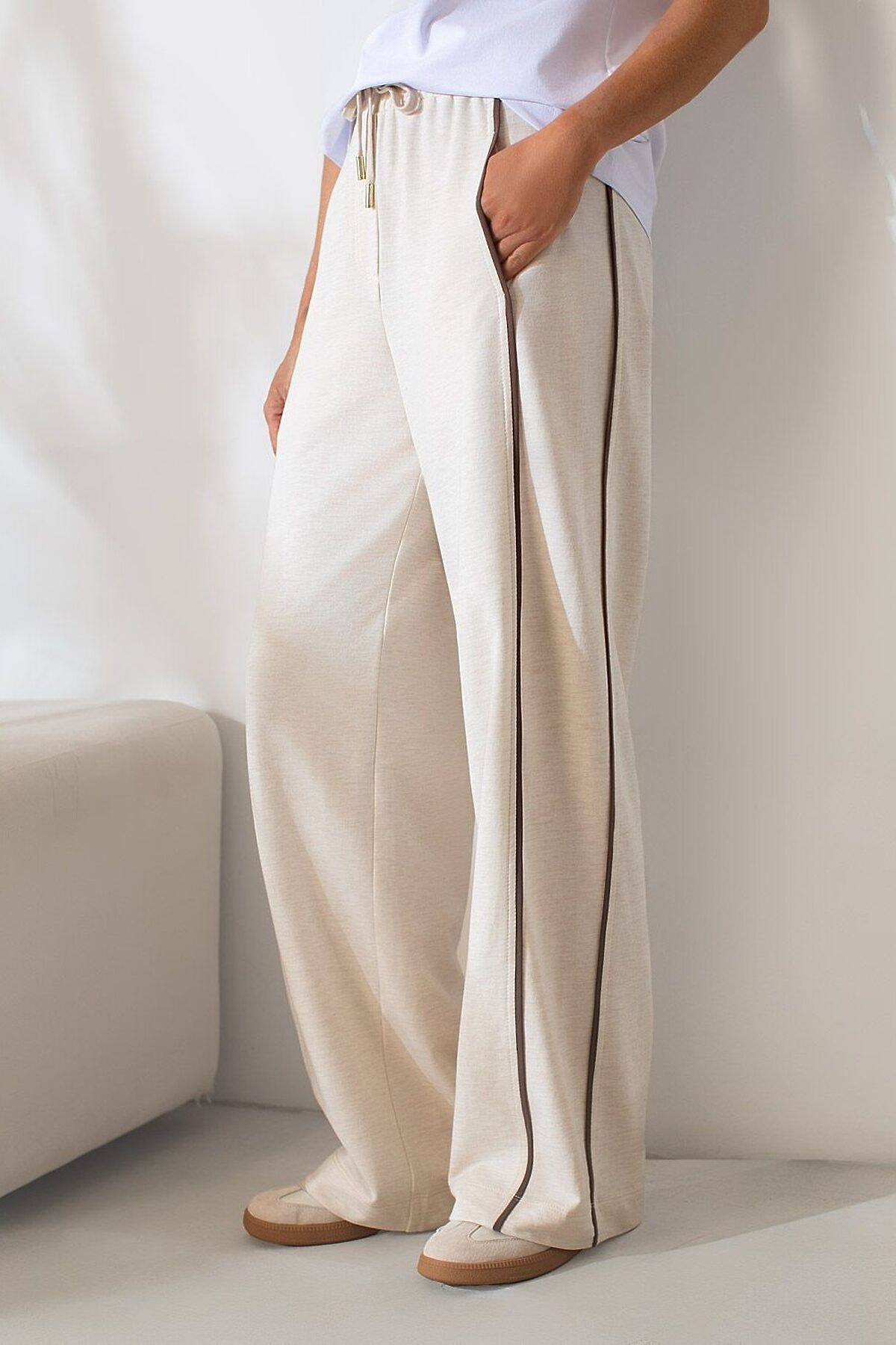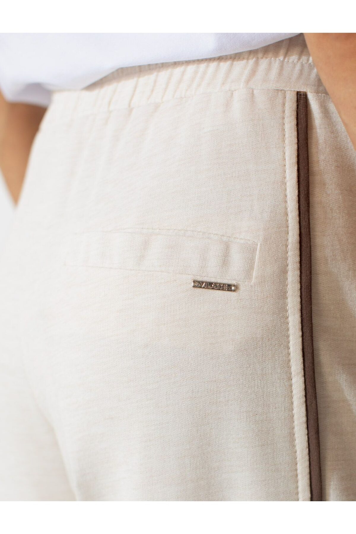 Прямые брюки с лампасами из эластичного футера двухнитки без начеса VILATTE, овсяный меланж