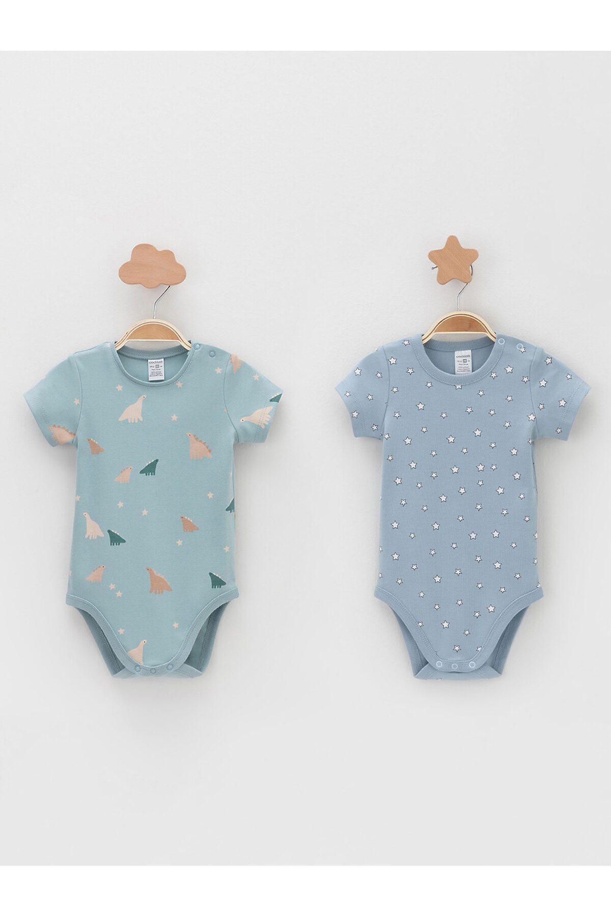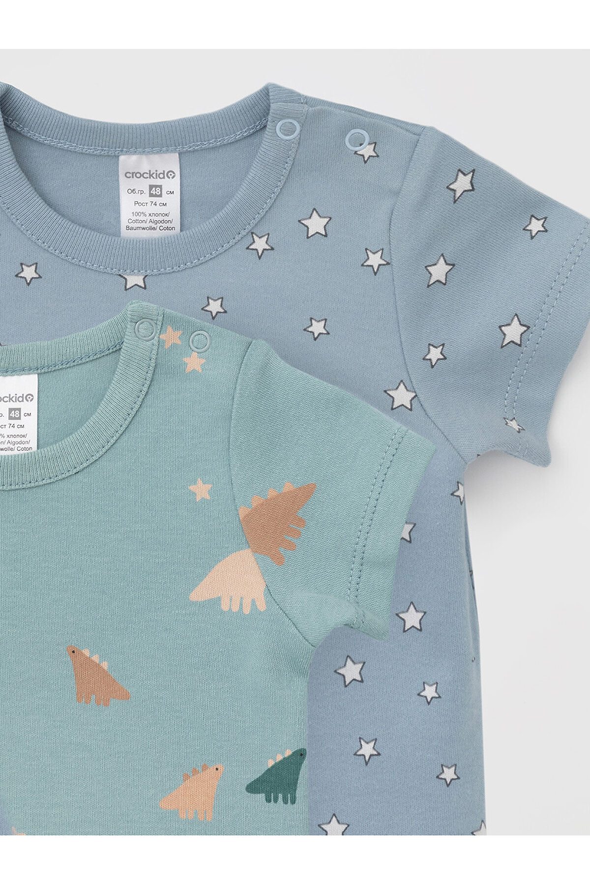 Боди для новорождённых из мягкого эластичного трикотажа, произведённого из натурального хлопка. В упаковке 2 штуки. Застёгиваются на кнопки на плече и по низу изделий. Оригинальная набивка выполнена из стойких гипоаллергенных текстильных красителей. Все трикотажные полотна производятся в соответствии с нормами швейцарского сертификата ЭкоТекс.