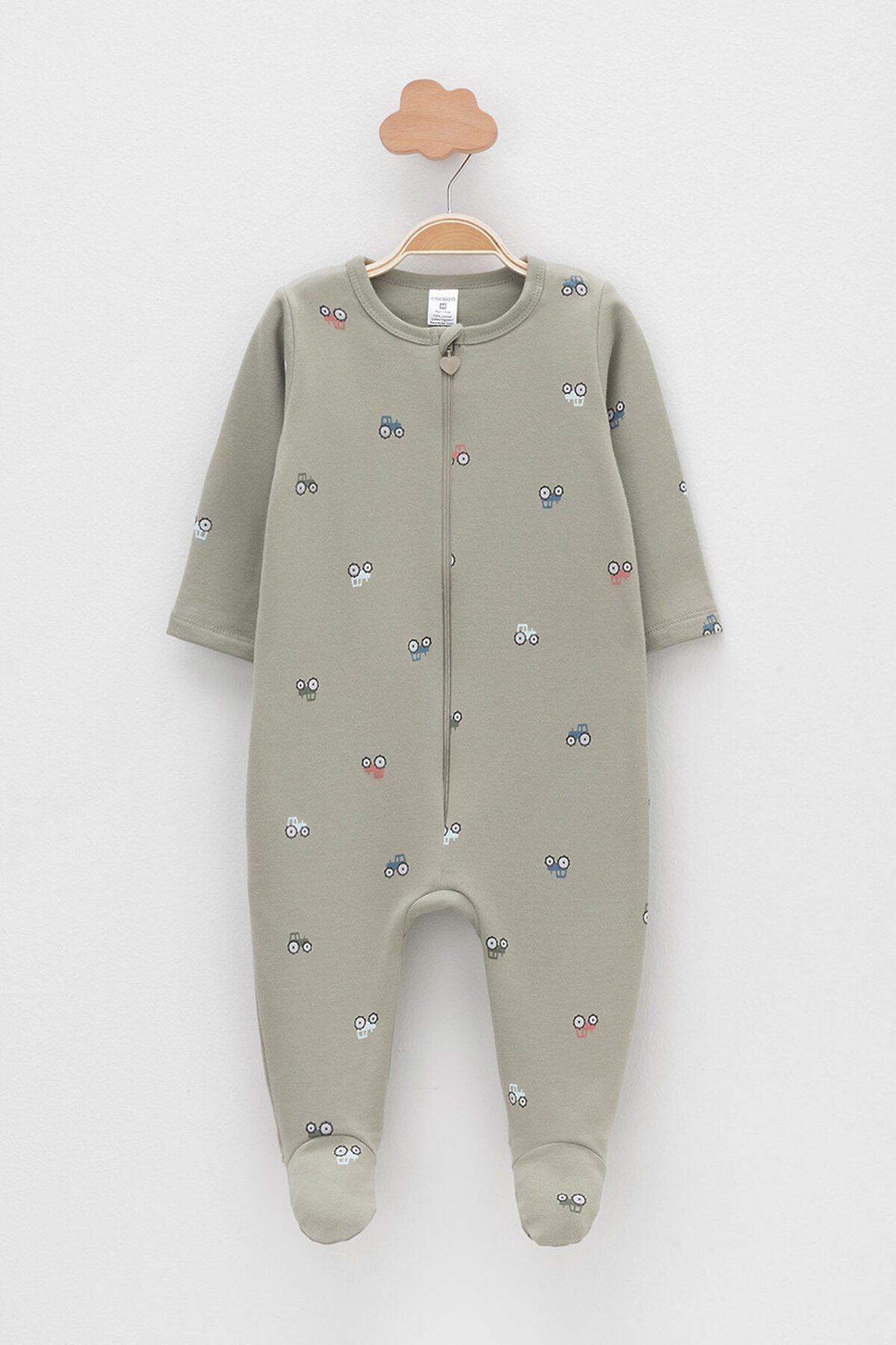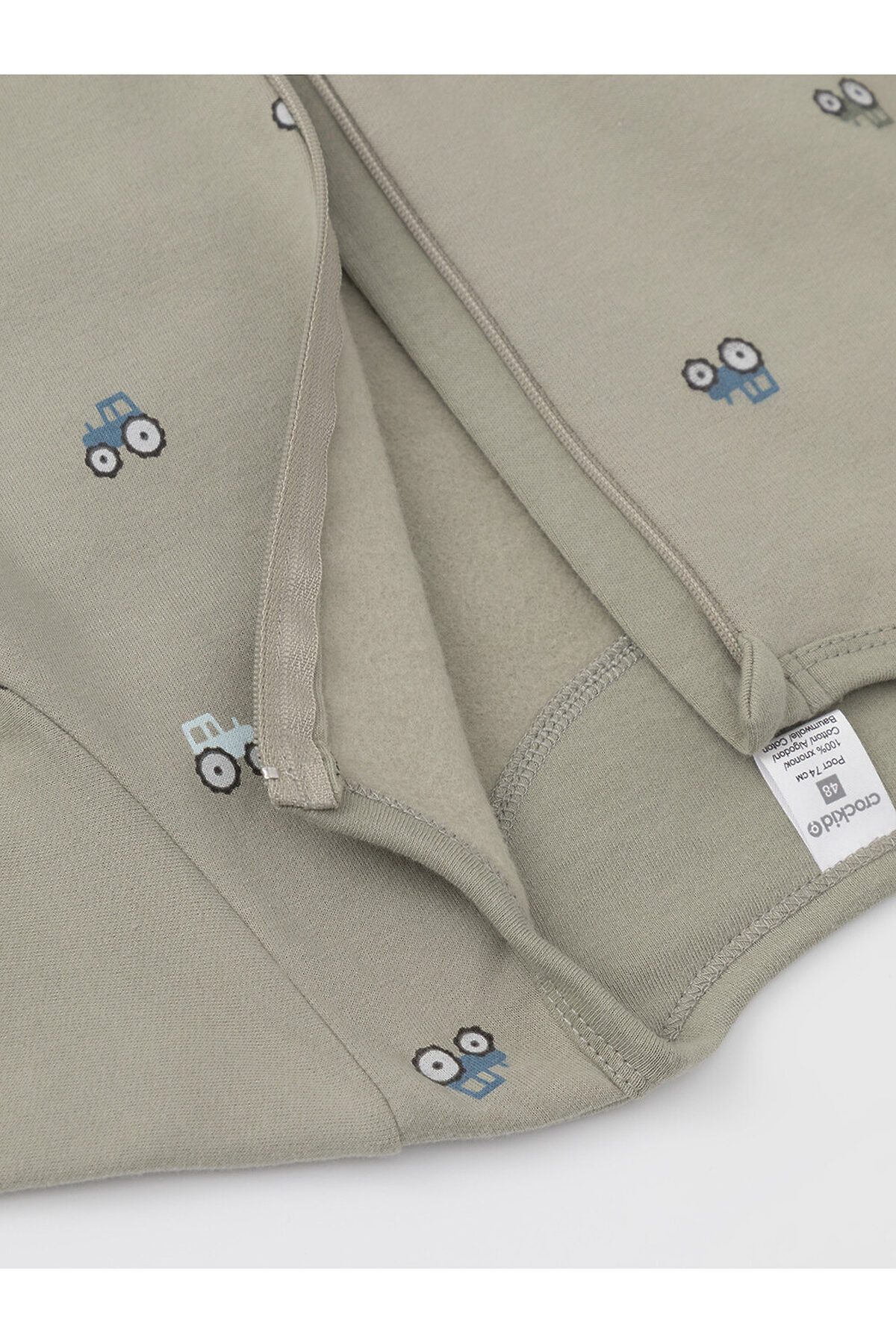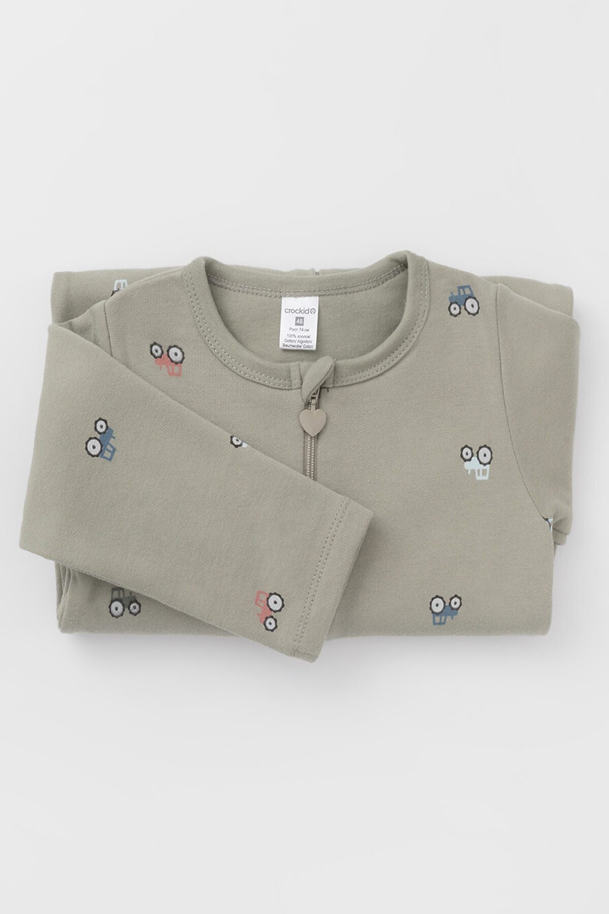 Комбинезон для новорождённых из тонкого футера с начёсом, произведённого из натурального хлопка. Застёгиваются спереди на молнию с мягкой защитой шеи и подбородка. Оригинальная набивка выполнена из стойких гипоаллергенных текстильных красителей. Все трикотажные полотна производятся в соответствии с нормами швейцарского сертификата ЭкоТекс.