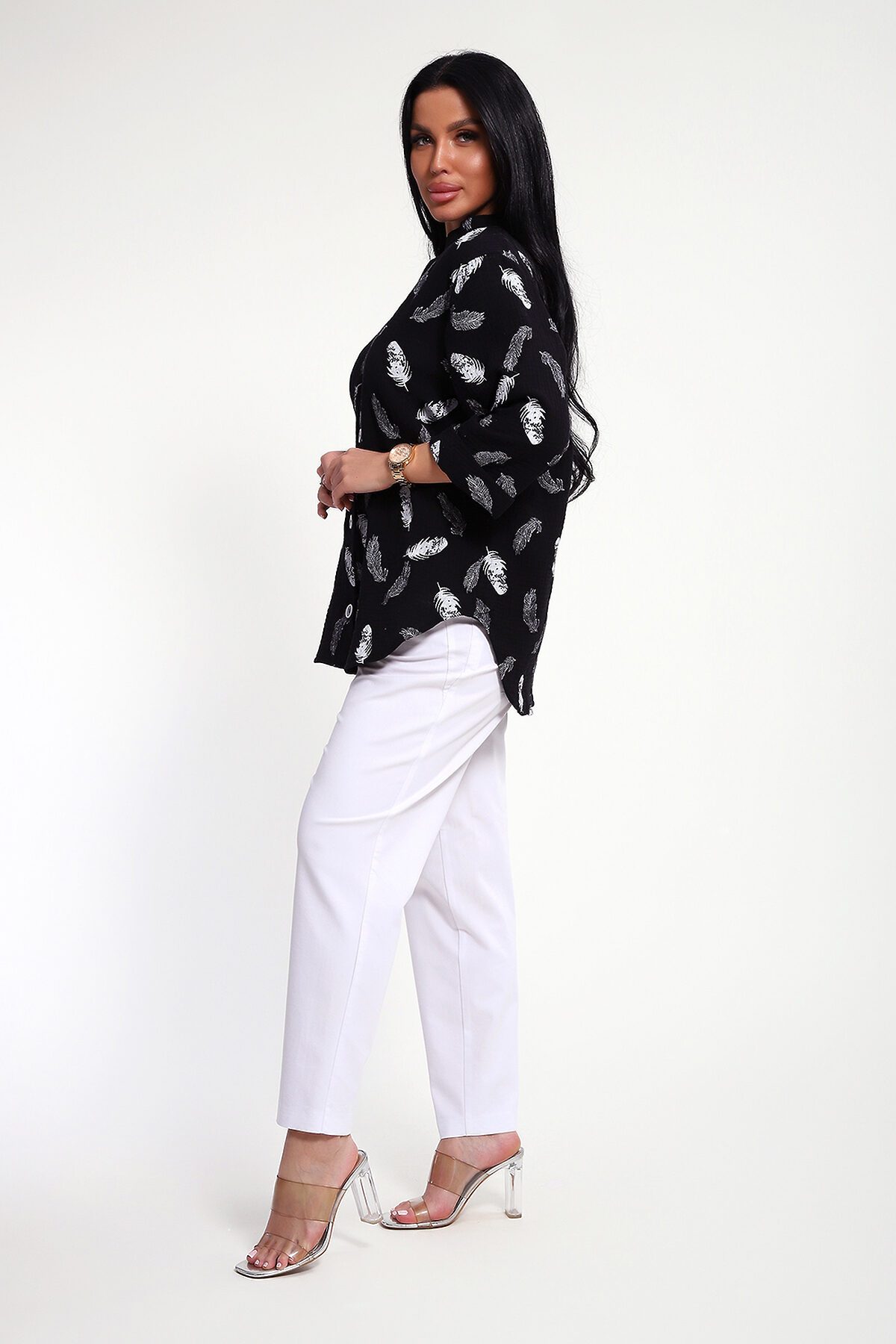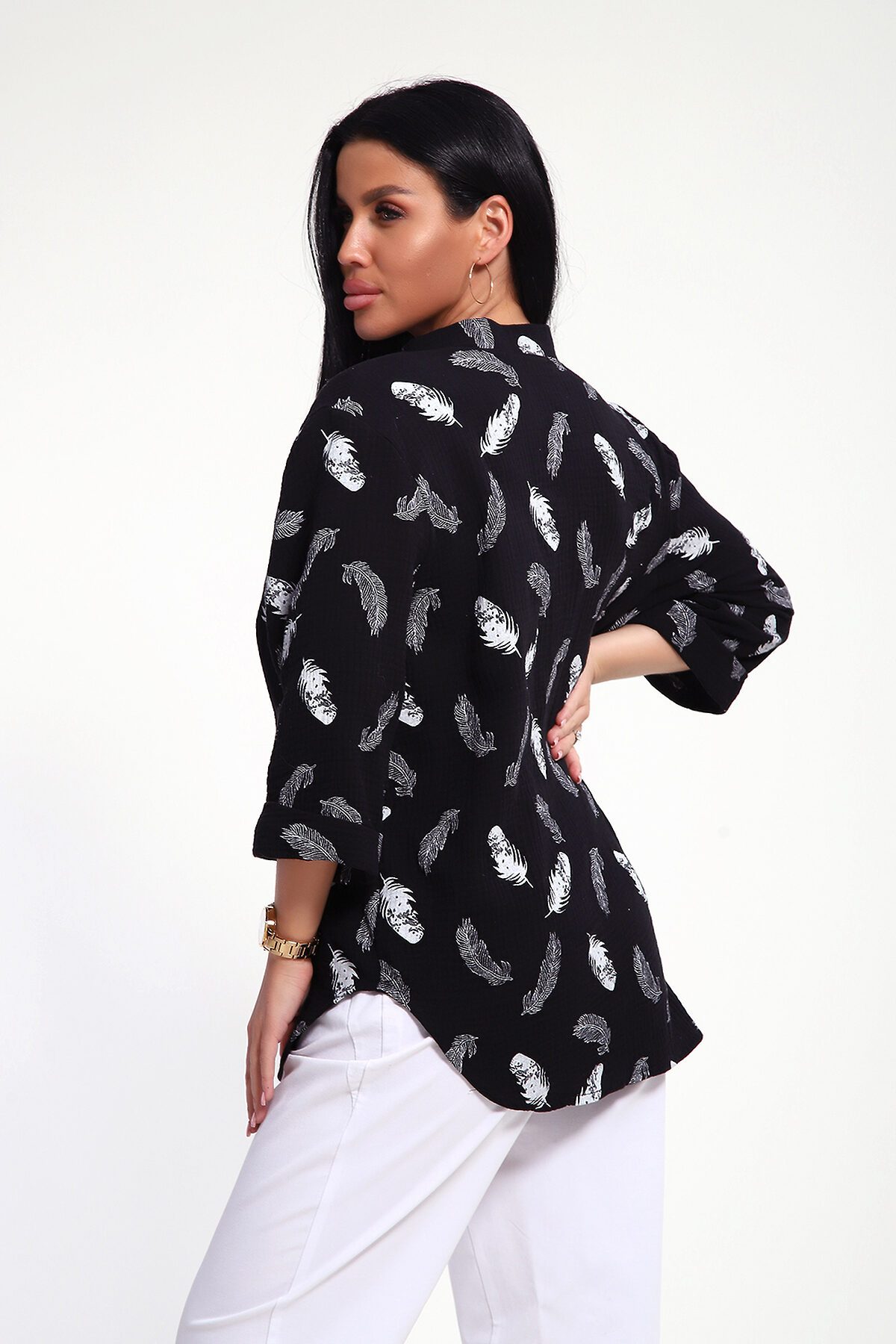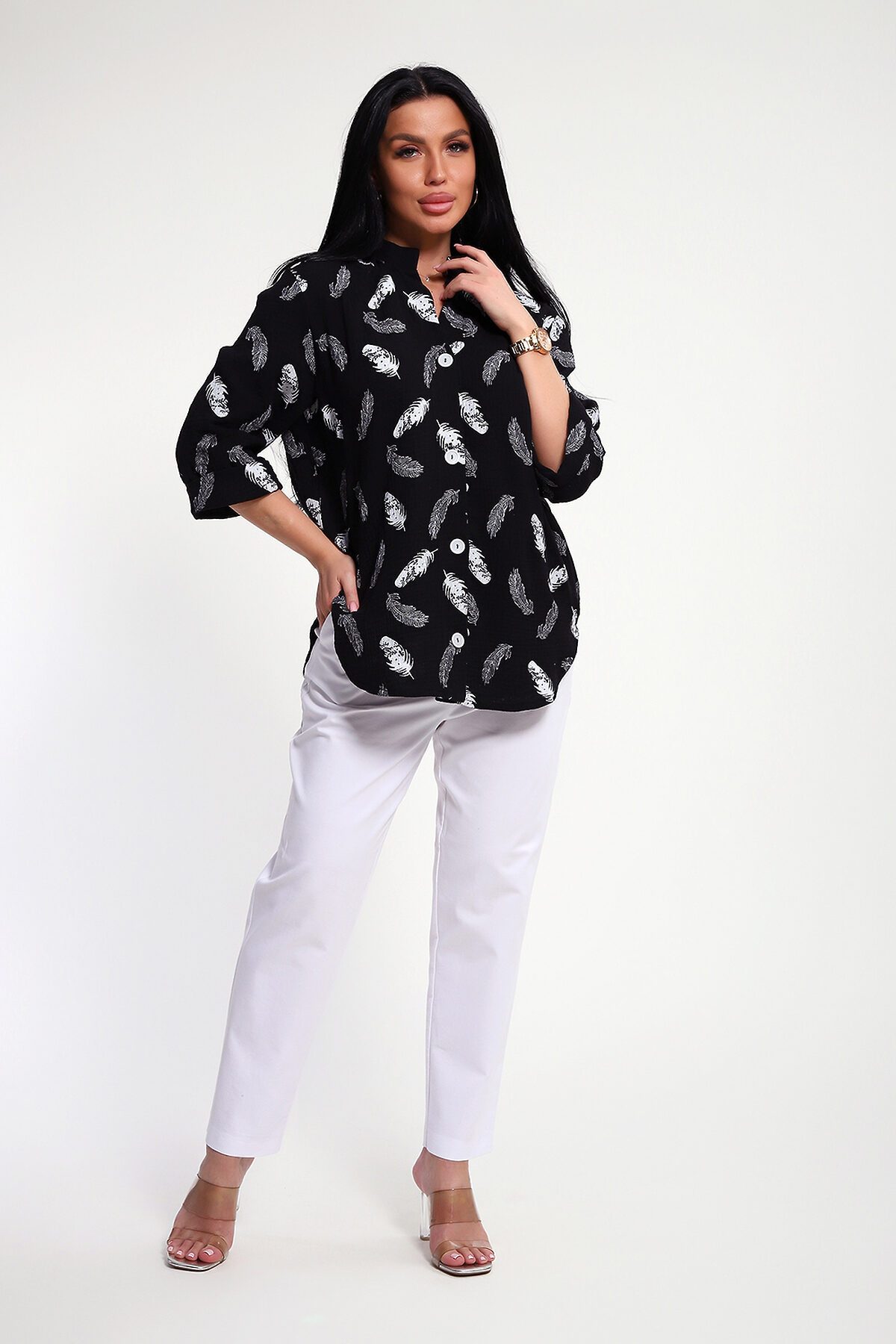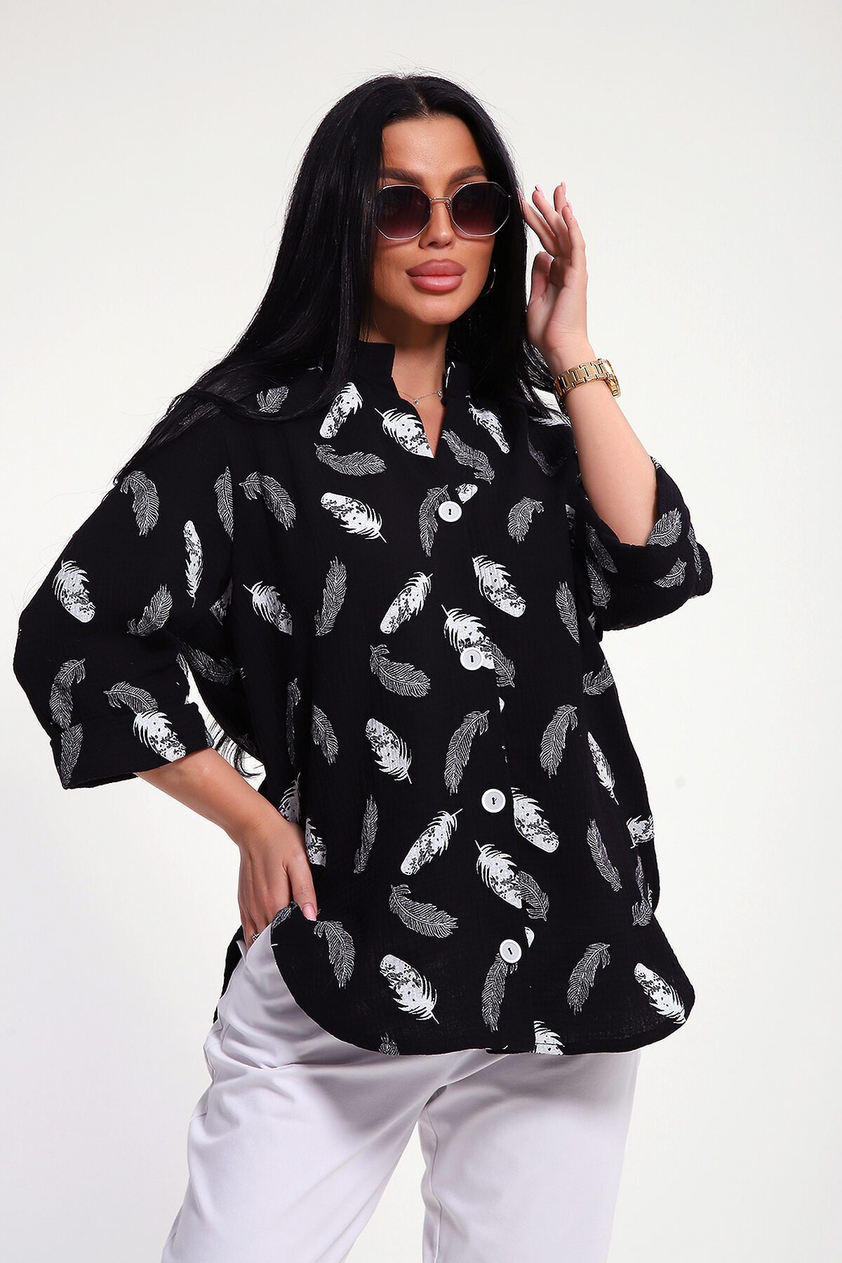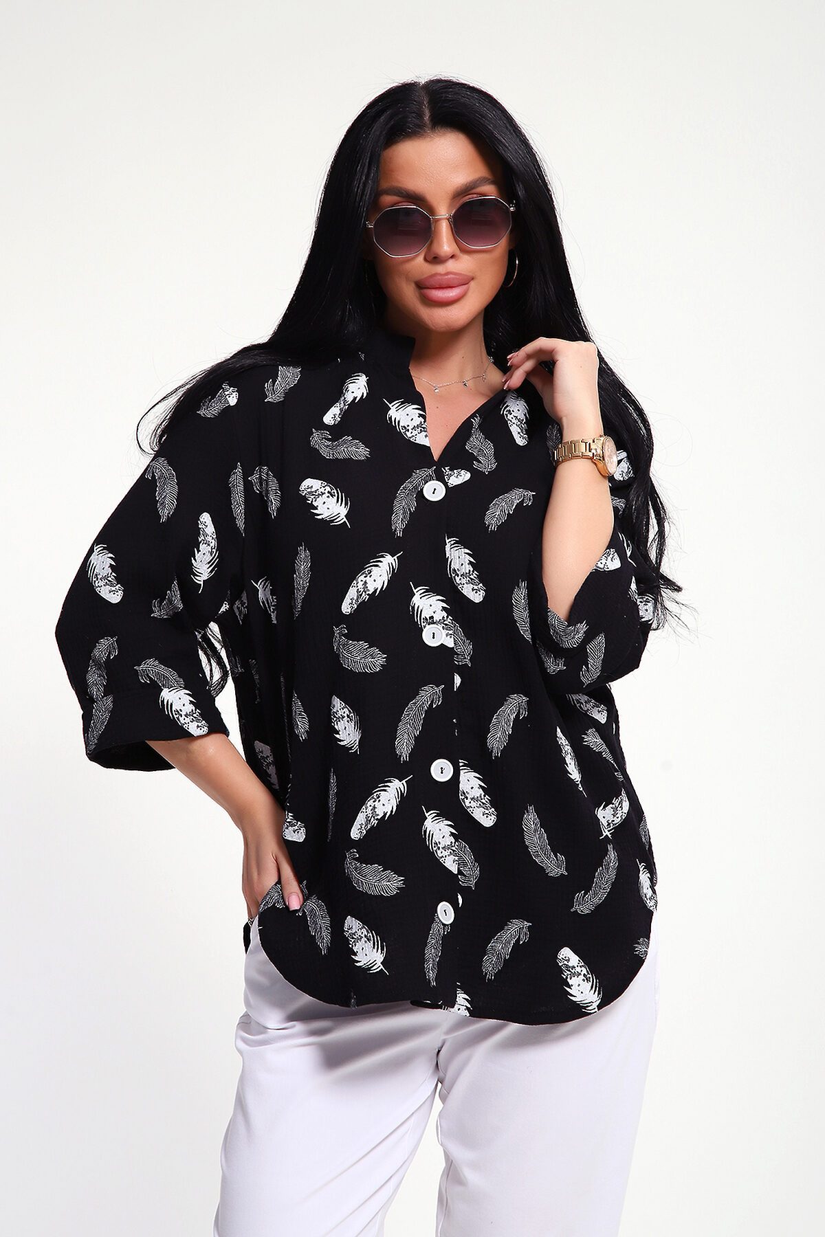 Женская муслиновая рубашка- это не просто предмет гардероба, это воплощение женственности, сочетающей в себе удобство, комфорт и безупречный вкус. Она станет вашим верным спутником при создании неповторимых образов, даря ощущение уверенности и свободы в любой ситуации. Муслин, известный своей невесомостью и воздушной структурой, позволяет коже дышать даже в самые жаркие дни. Свободный крой, удлиненный силует, фигурный низ рубашки, рукава 3/4 с манжетом, аккуратная стойка по горловине - эта модель воплощает в себе утонченную непринужденность и безупречный вкус. Застежка на петли и пуговицы образуют V-образный вырез по горловине, что удлиняет шею и подчеркивает женственность образа. Рекомендуется ручная стирка или бережная машинная стирка при 30 гр. Отжим при малых оборотах. Изделие практически не требует глажки, можно просто немного обработать паром.