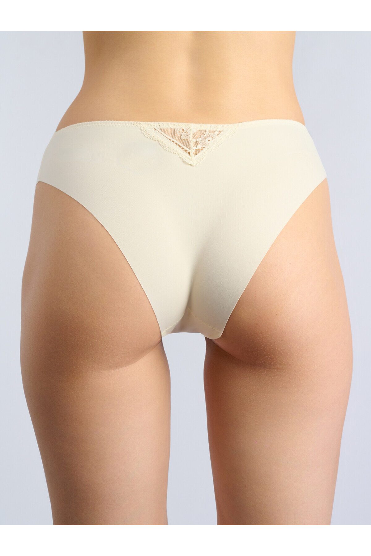 Трусы слипы женские 1251LUS бренда Indefini изготовлены из полиамида с добавлением эластана. Выполнены в бежевом цвете. Трусы средней посадки держатся на талии мягкой и плотной резинкой. На внутренней стороне трусов имеется хлопковая ластовица. В передней части трусов расположена изящная кружевная вставка.
