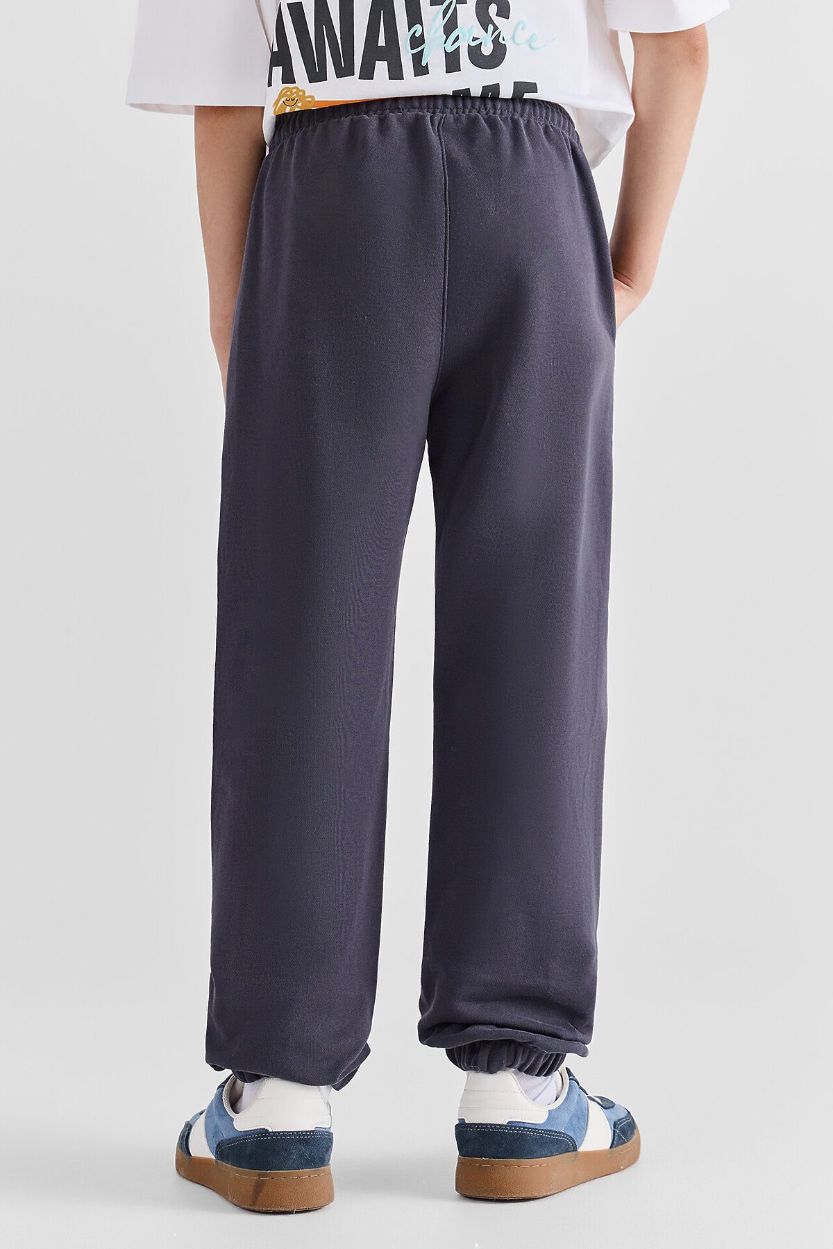 Брюки-джоггеры для мальчиков. Пояс отрезной с втачной эластичной тесьмой, внутри шнур. Пояс прострочен двумя отделочными строчками. По переду обработаны карманы с отрезным бочком. Низ брюк застрочен с эластичной тесьмой на двухигольной плоскошовной машине.